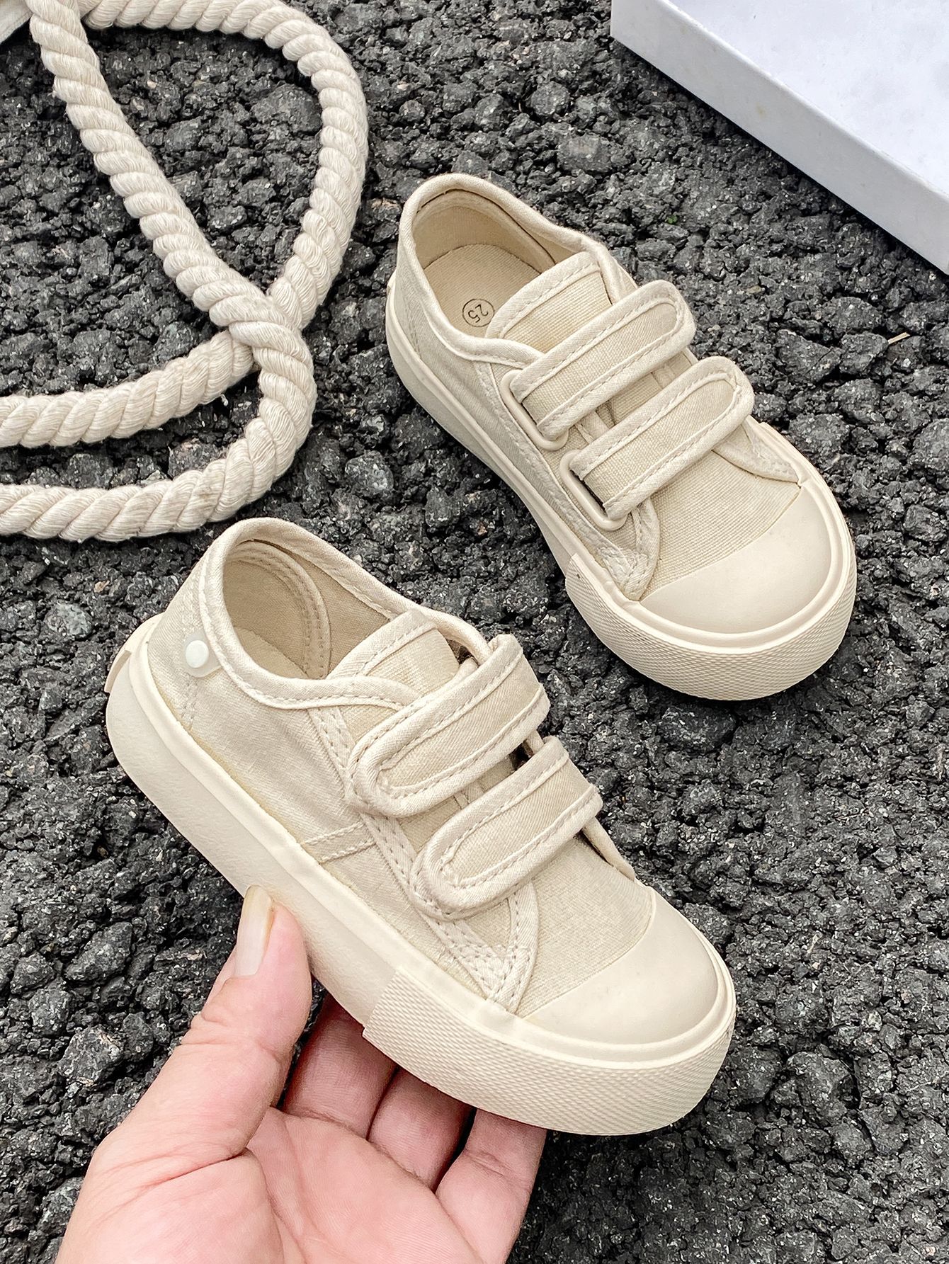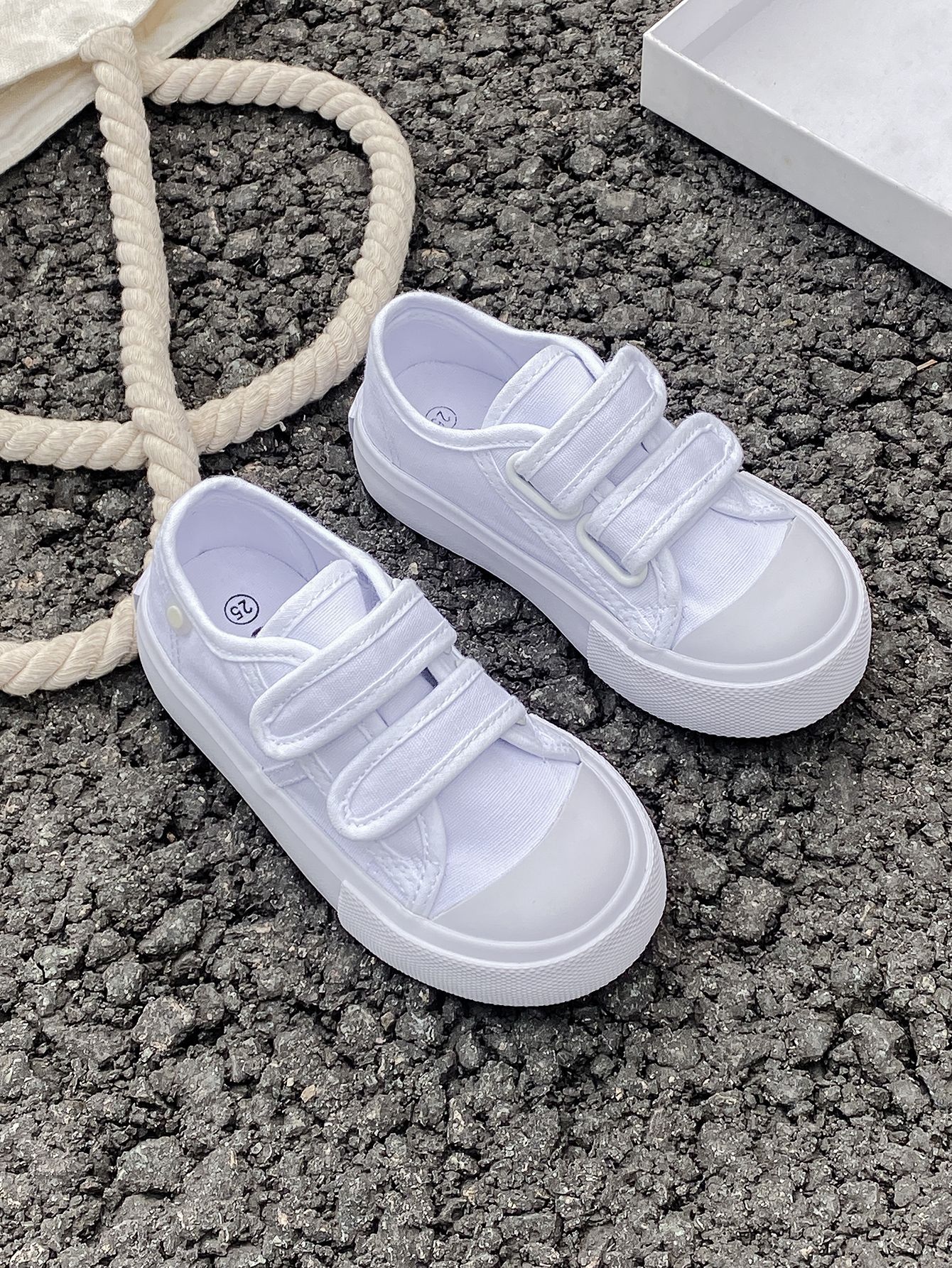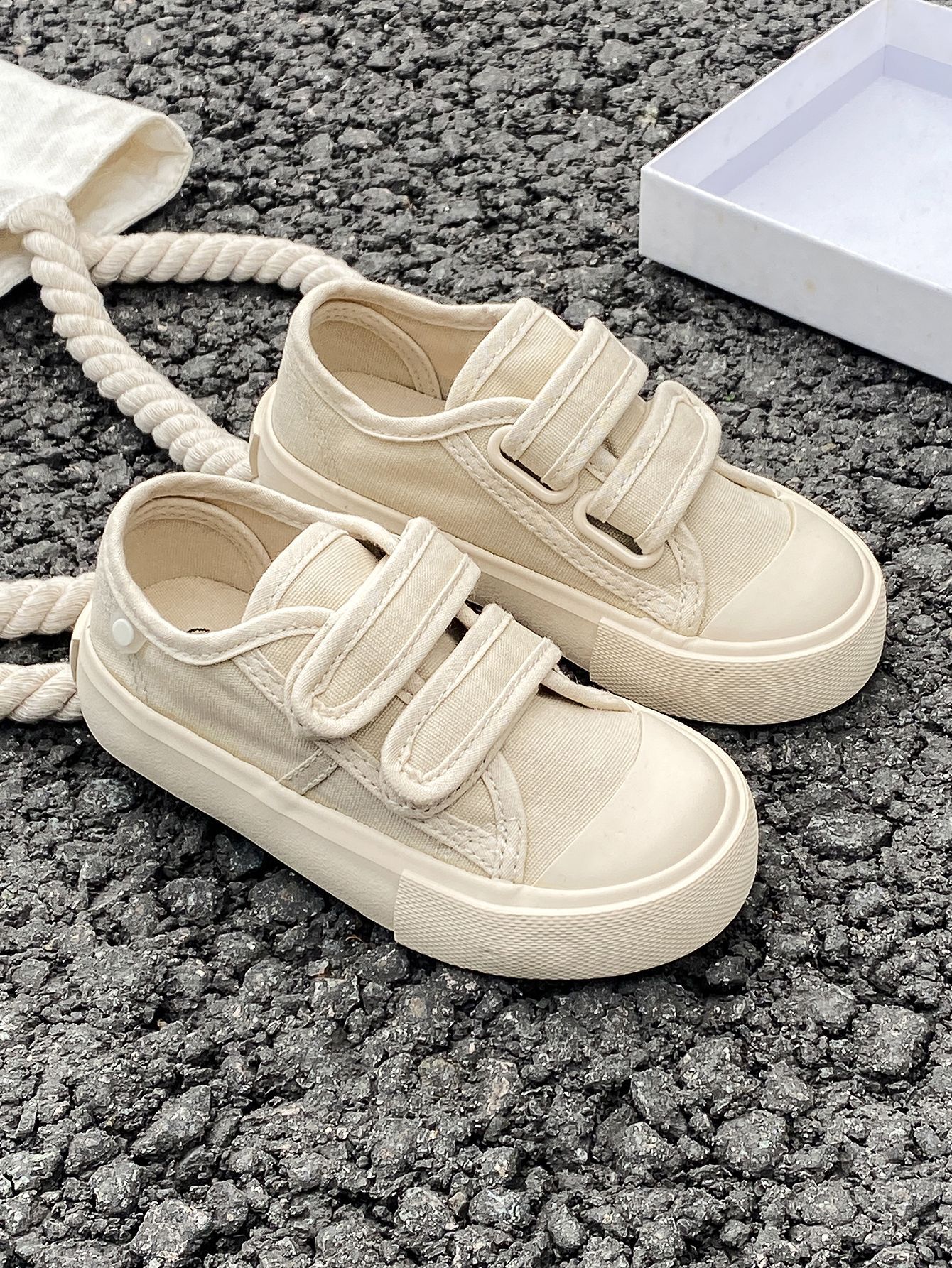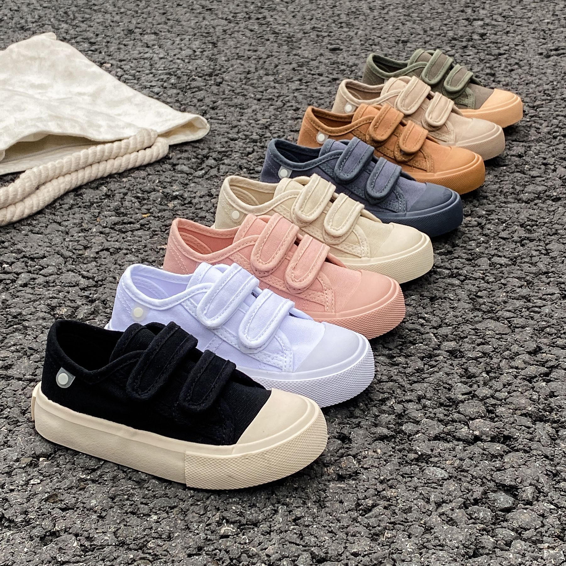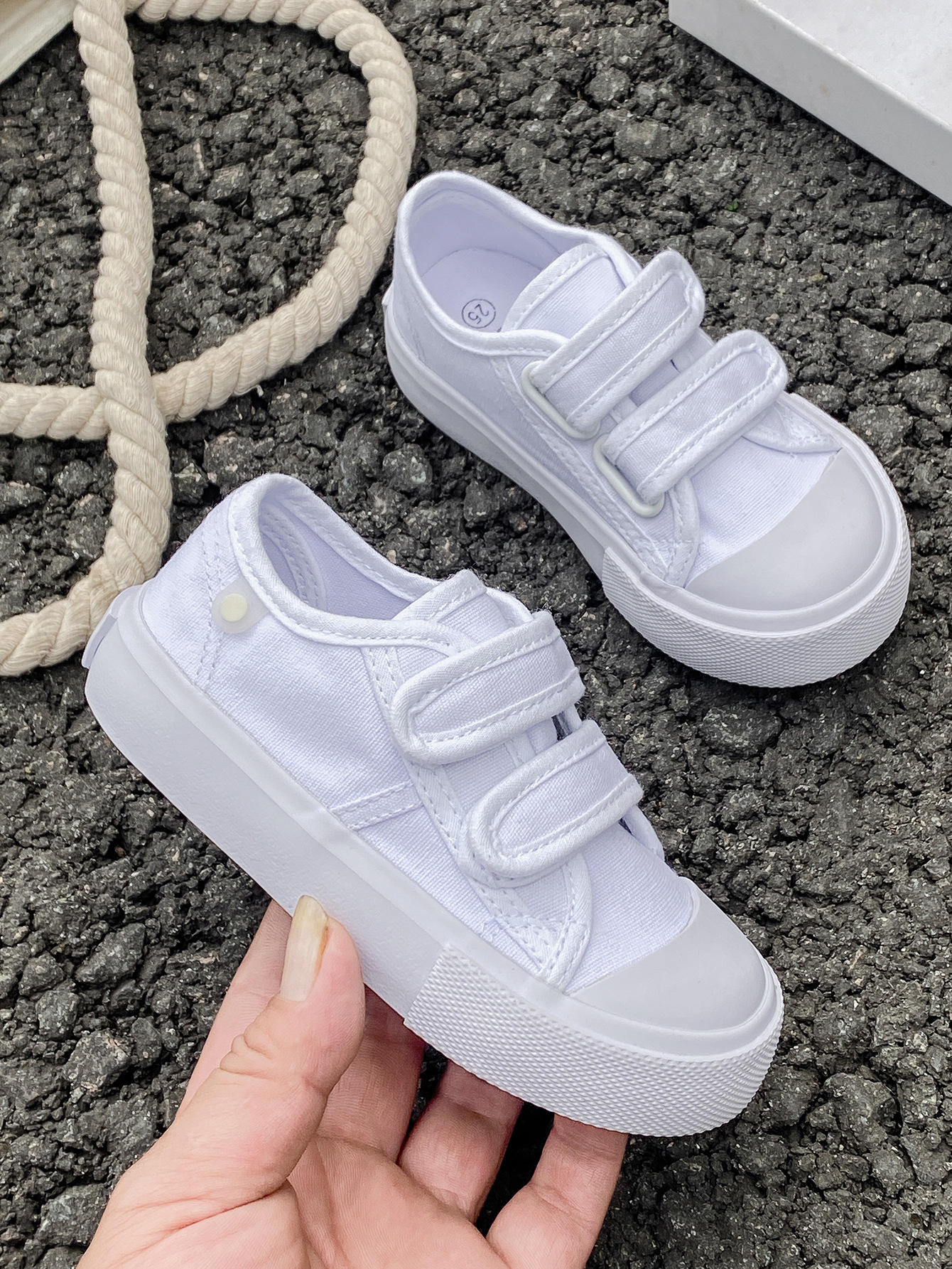 한국식 어린이 캔버스 신발 봄과 가을 소년과 소녀 로우 탑 보드 신발 캠퍼스 화이트 신발 벨크로 아기 실내 신발스토어 가기