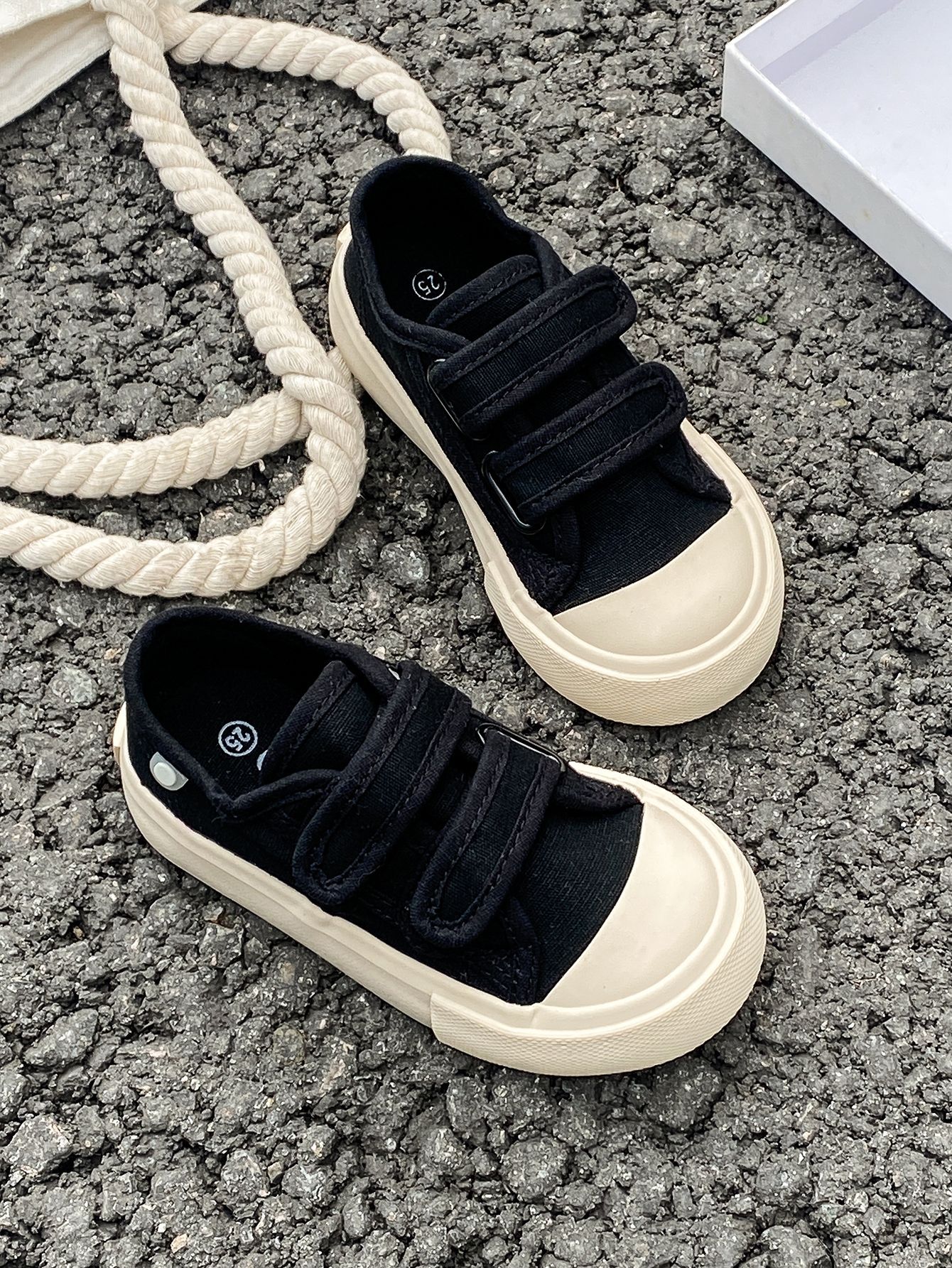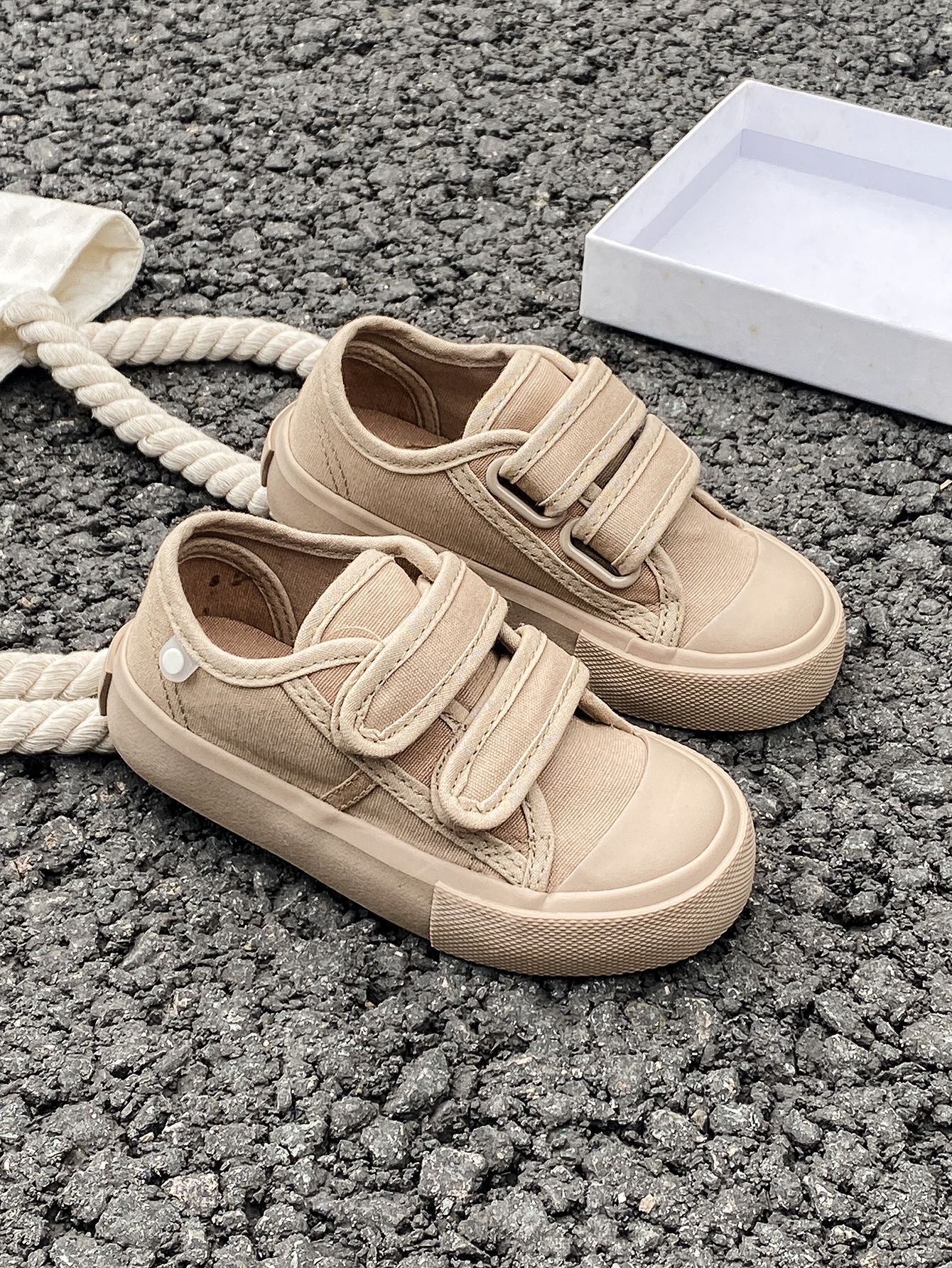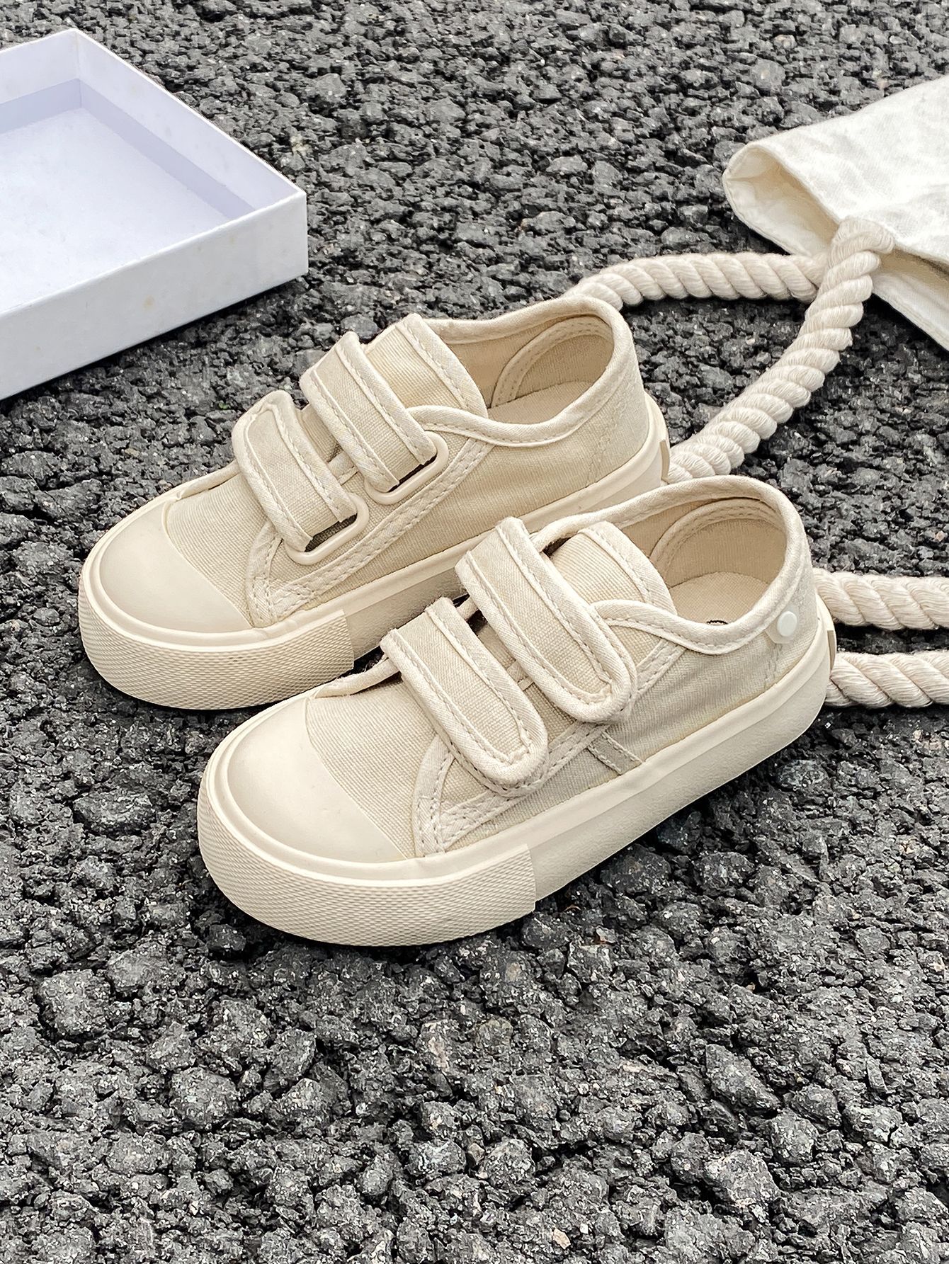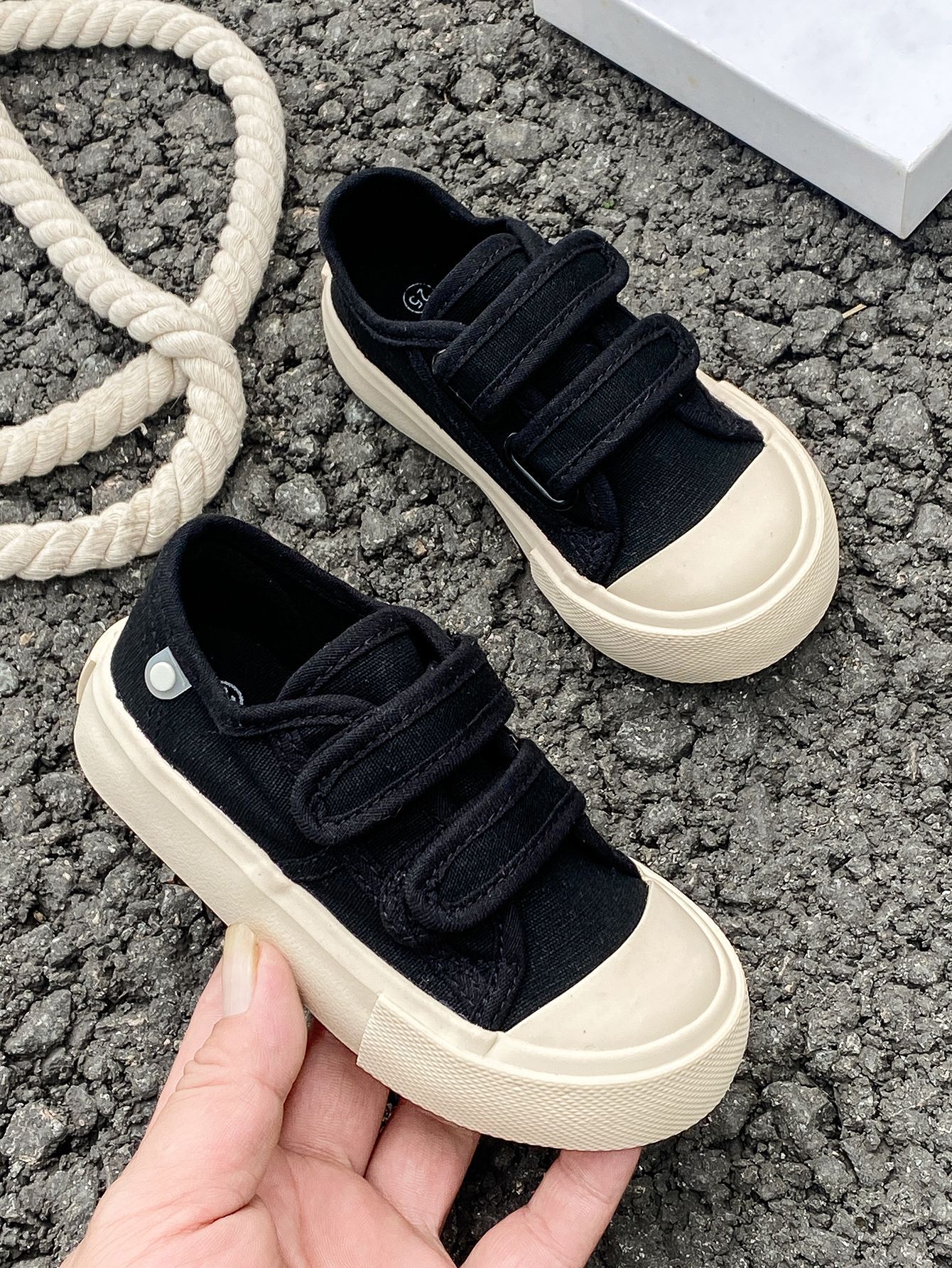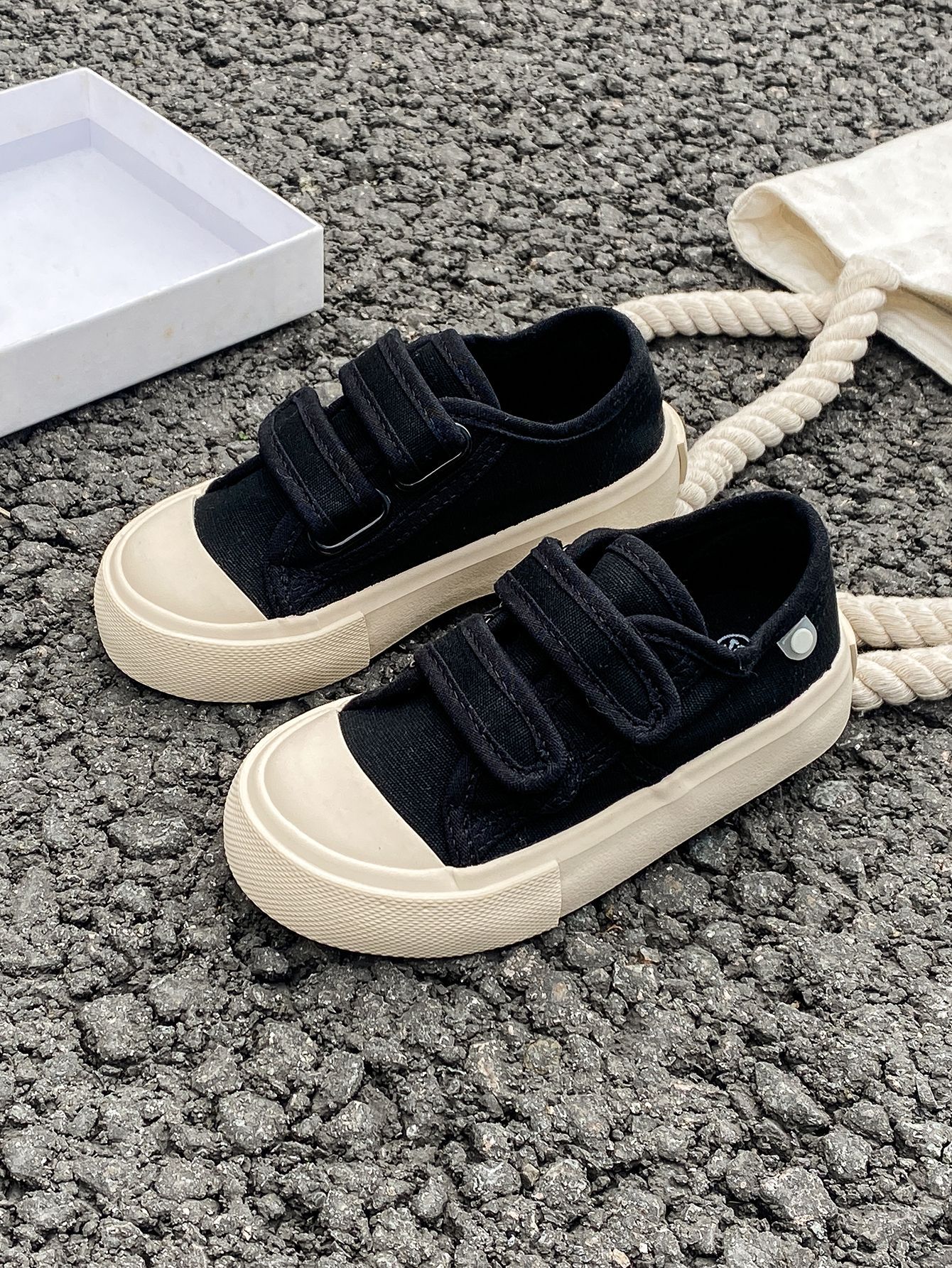 한국식 어린이 캔버스 신발 봄과 가을 소년과 소녀 로우 탑 보드 신발 캠퍼스 화이트 신발 벨크로 아기 실내 신발스토어 가기