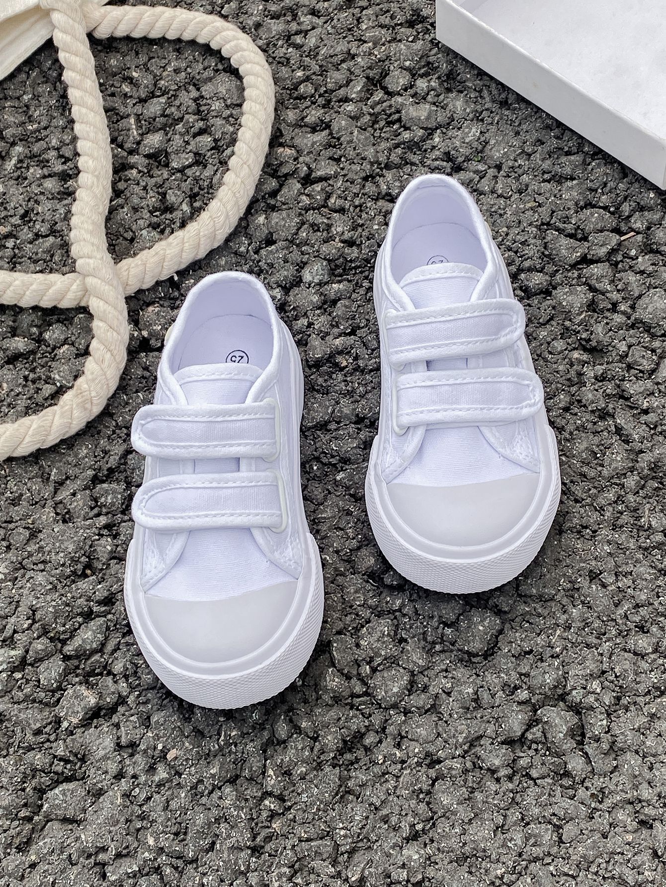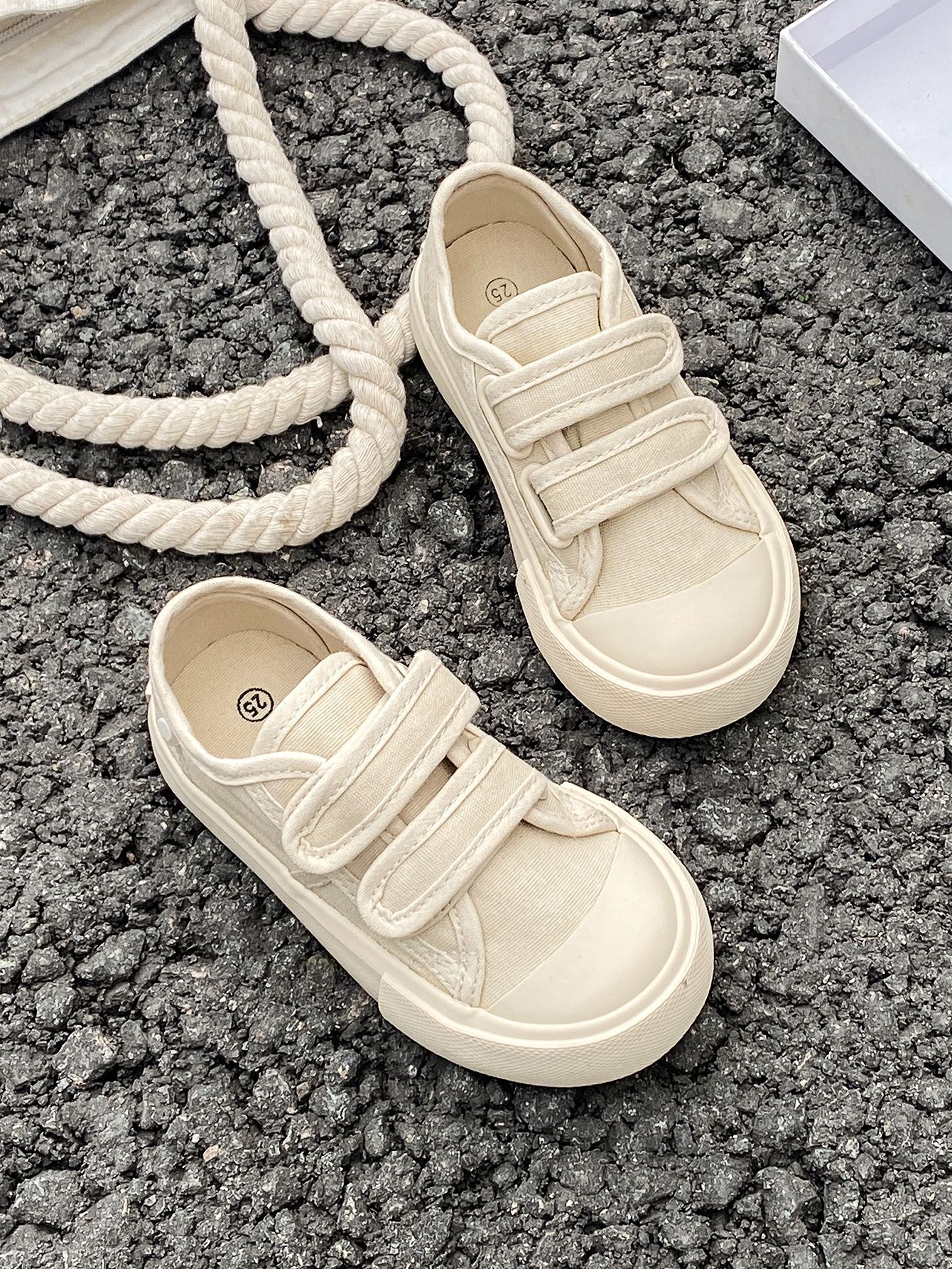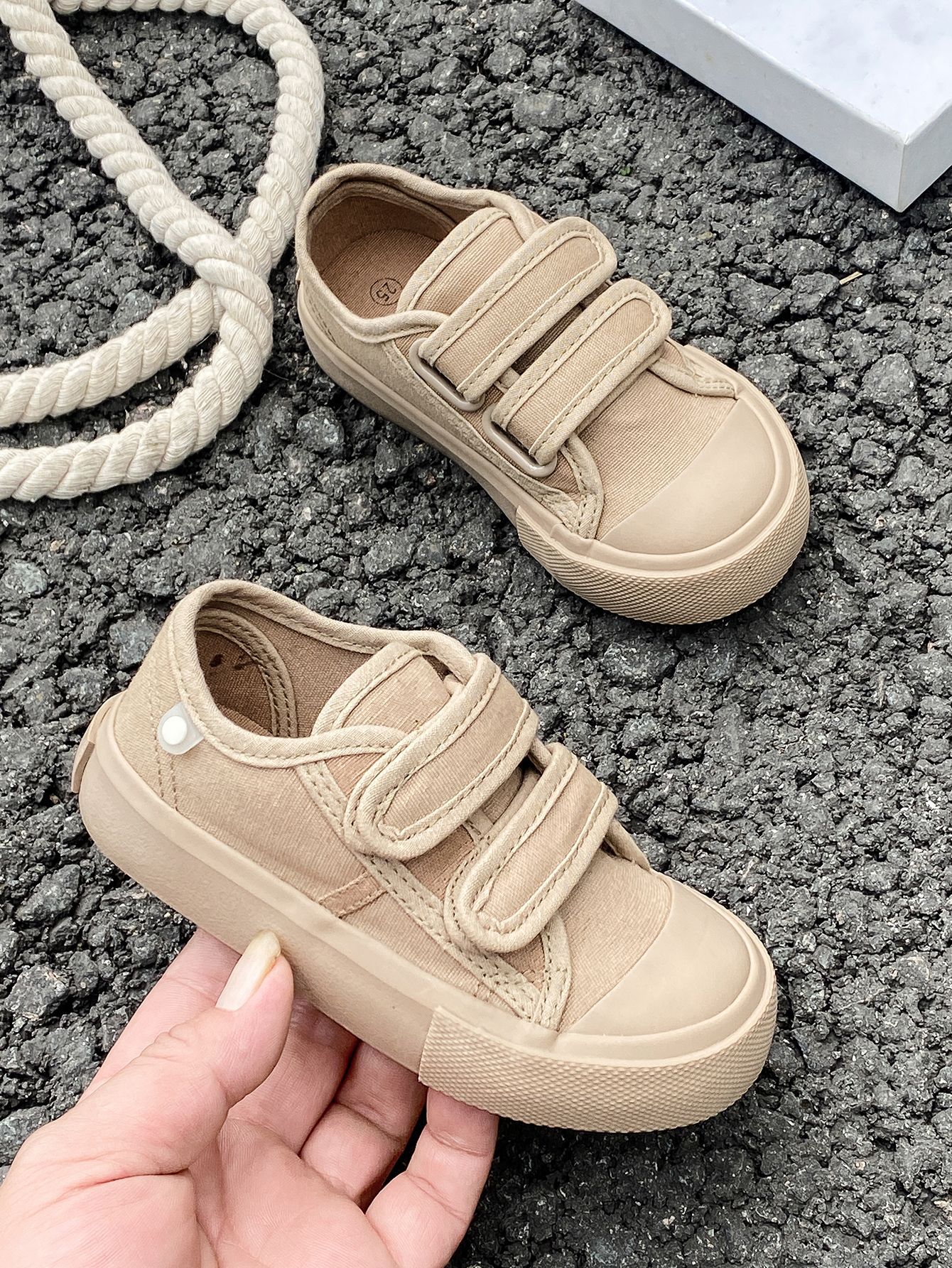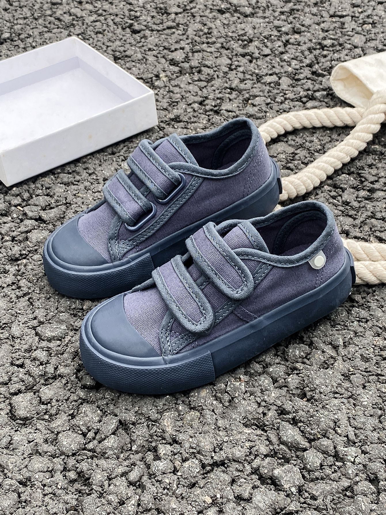 한국식 어린이 캔버스 신발 봄과 가을 소년과 소녀 로우 탑 보드 신발 캠퍼스 화이트 신발 벨크로 아기 실내 신발스토어 가기