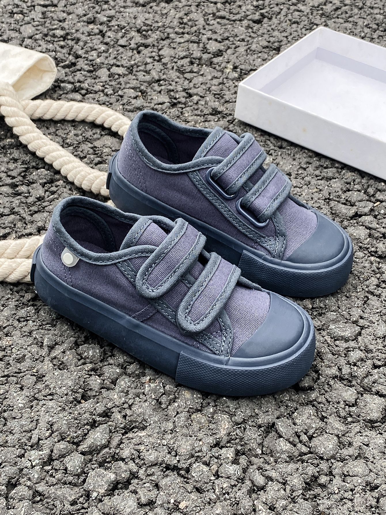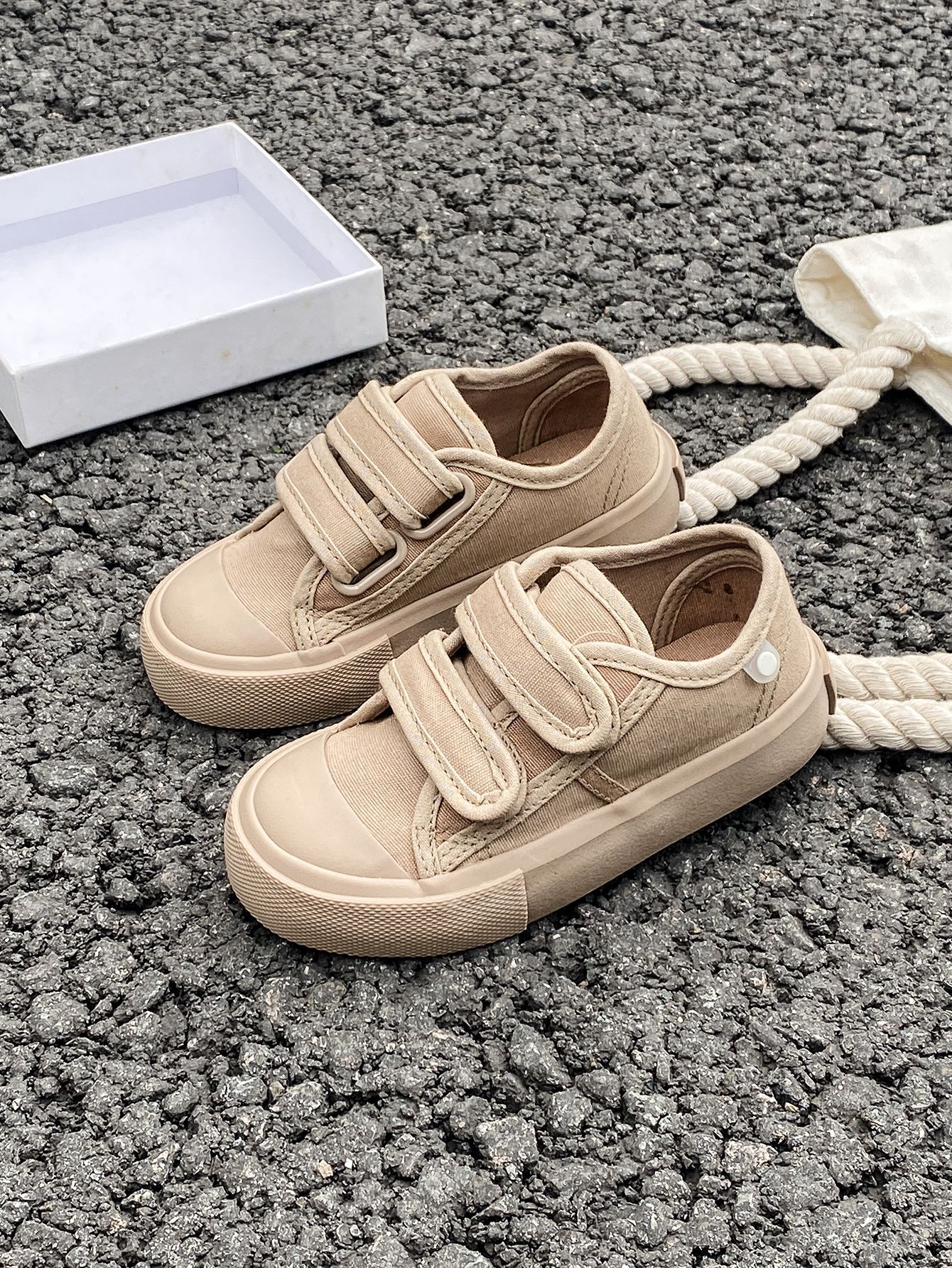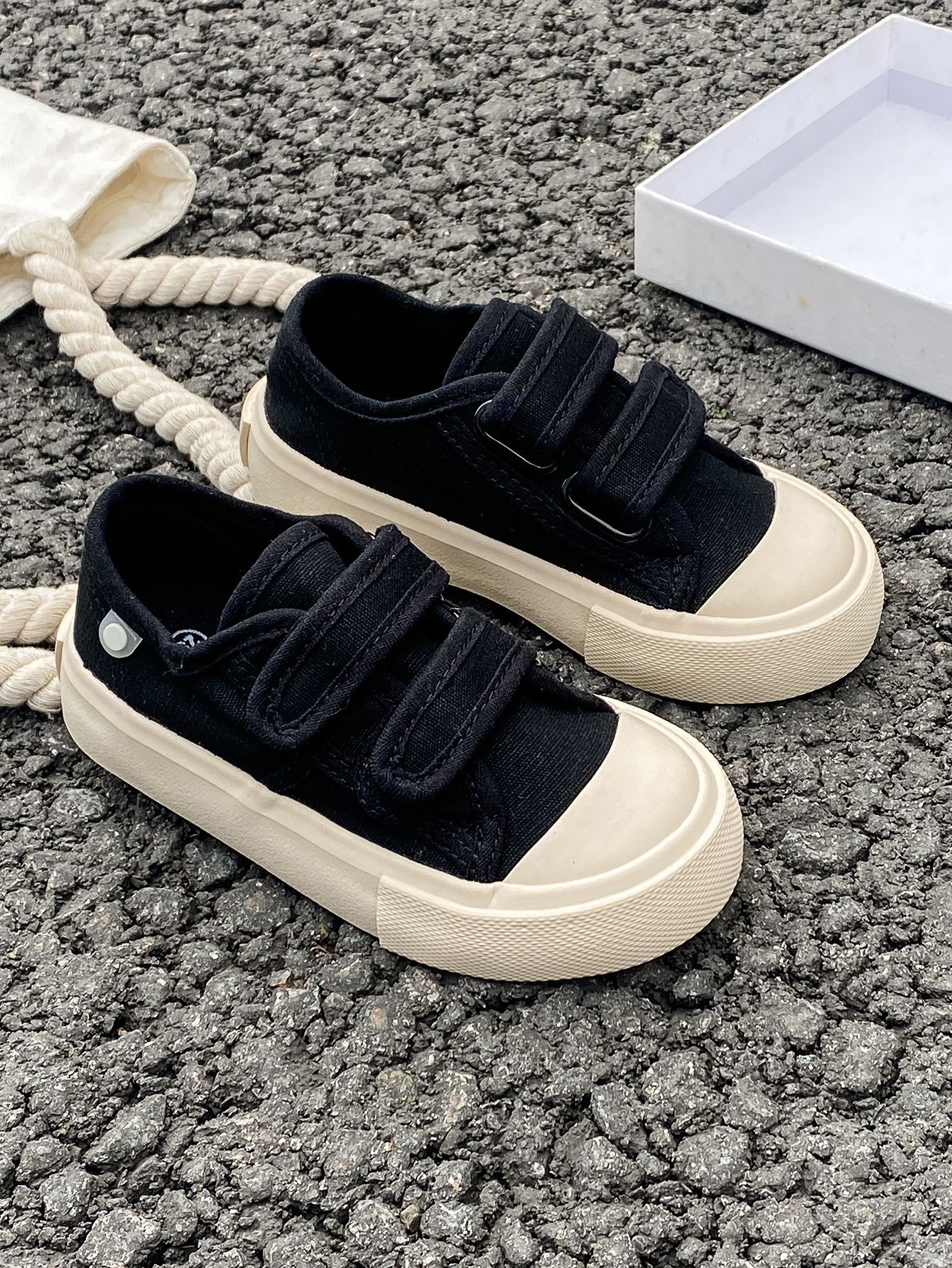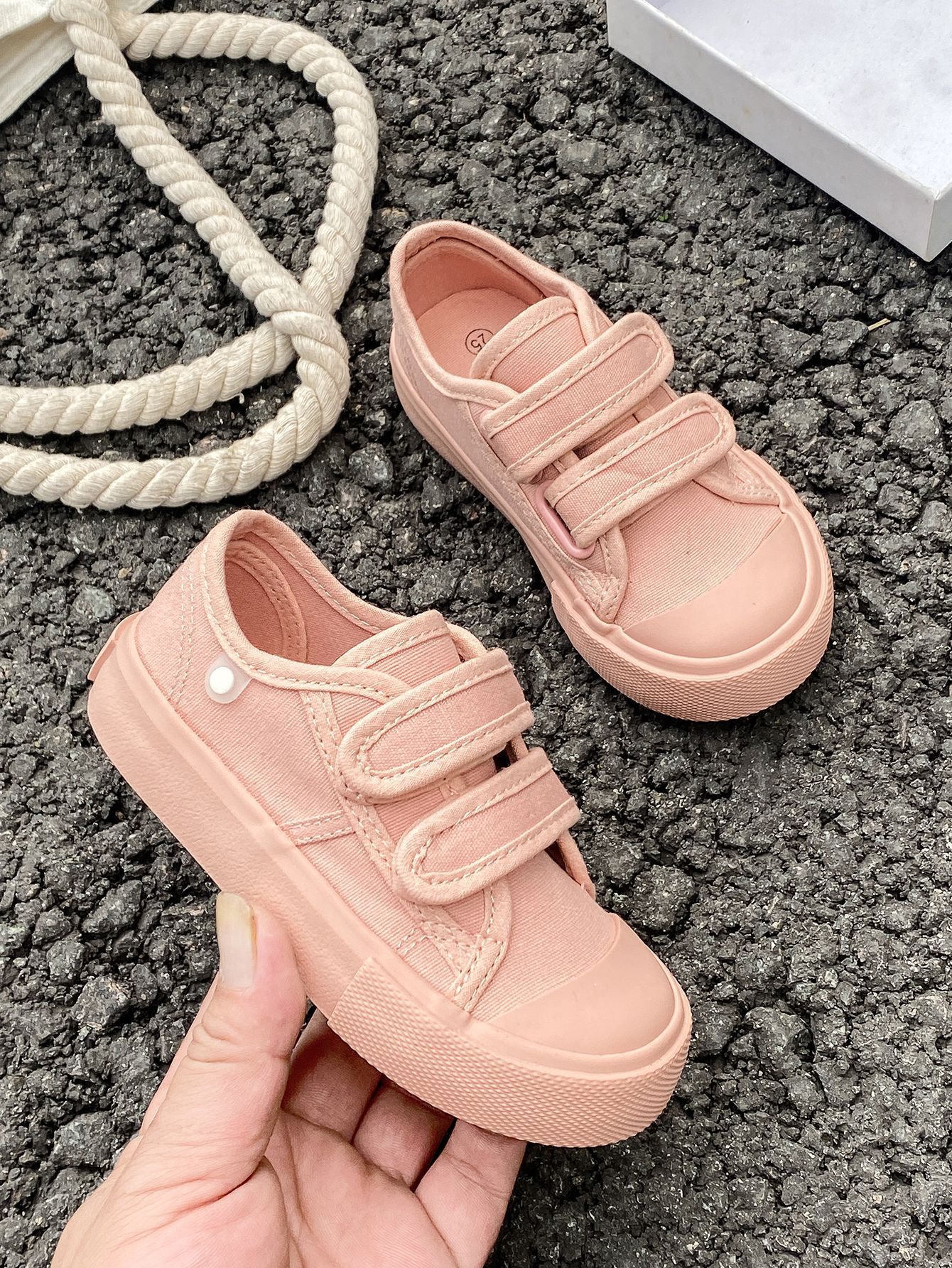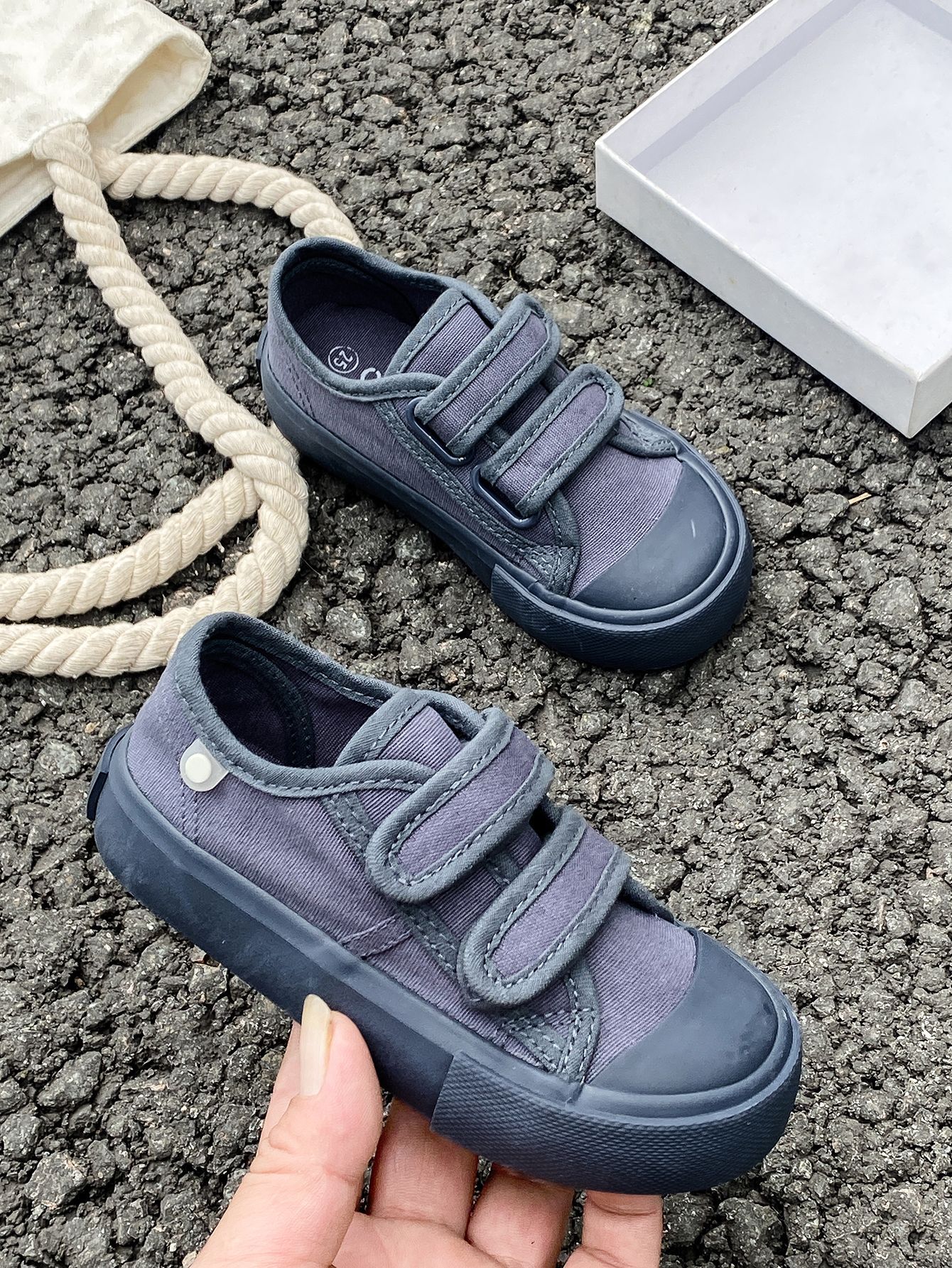한국식 어린이 캔버스 신발 봄과 가을 소년과 소녀 로우 탑 보드 신발 캠퍼스 화이트 신발 벨크로 아기 실내 신발스토어 가기