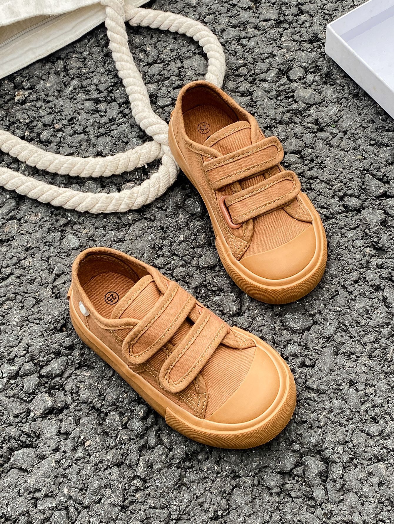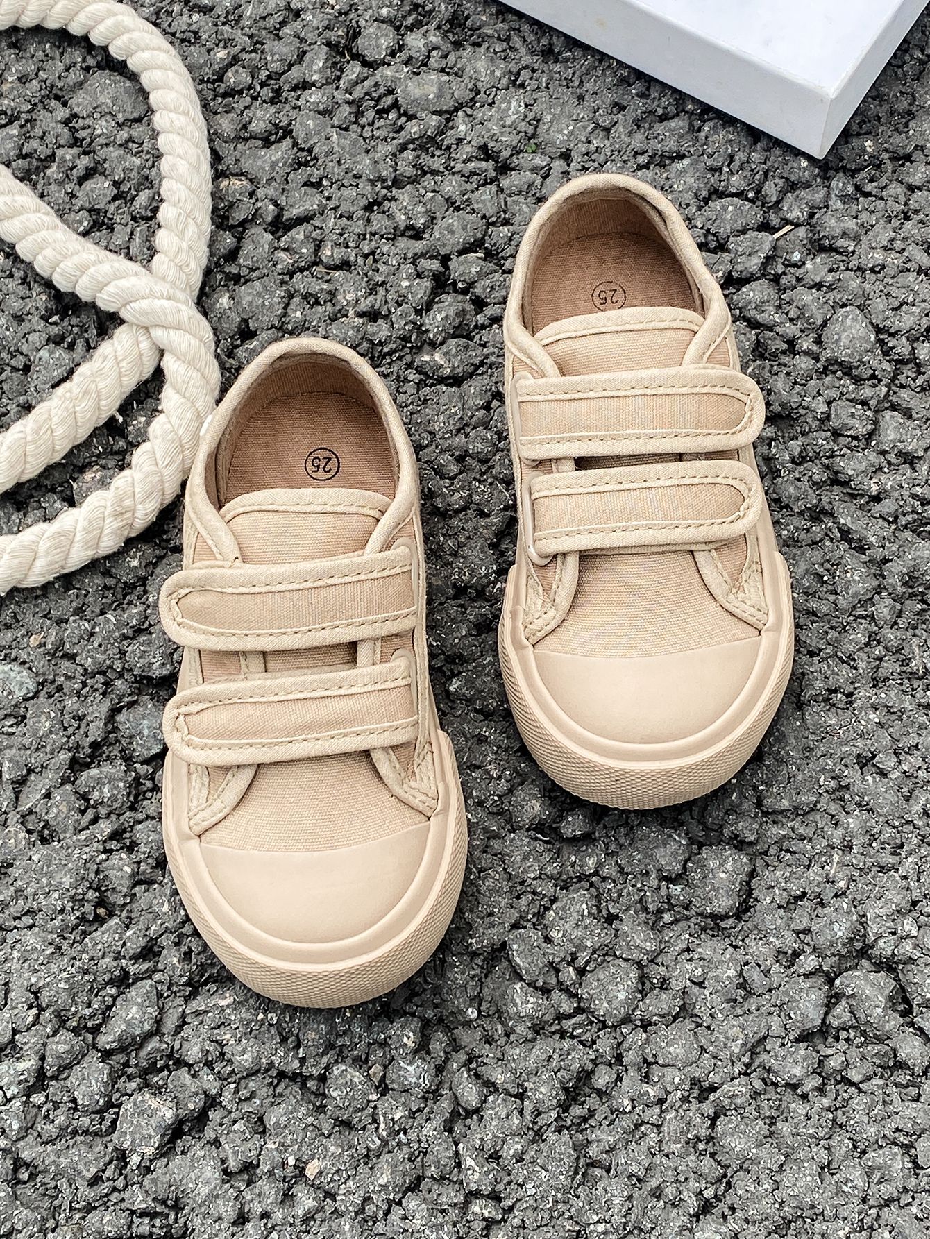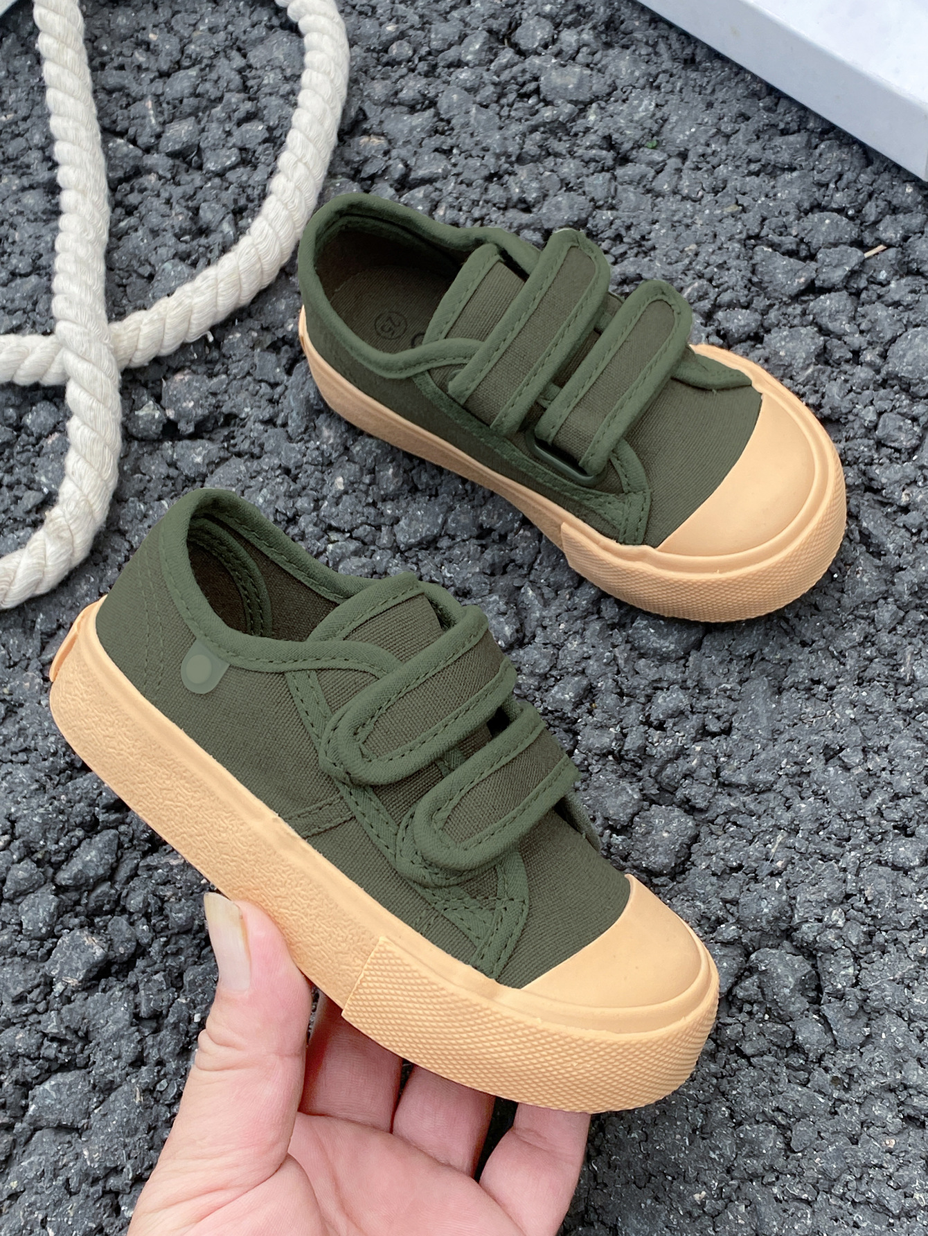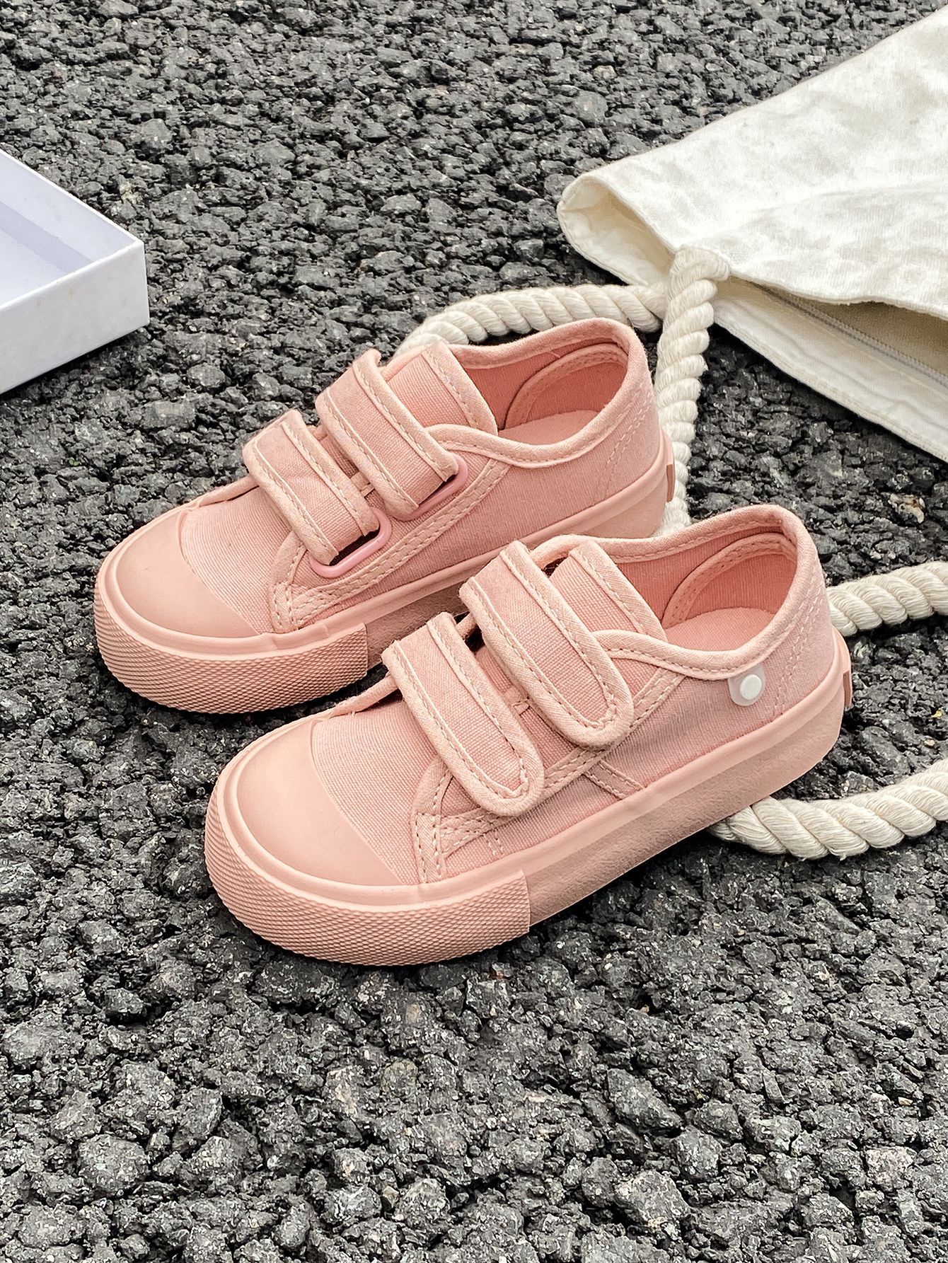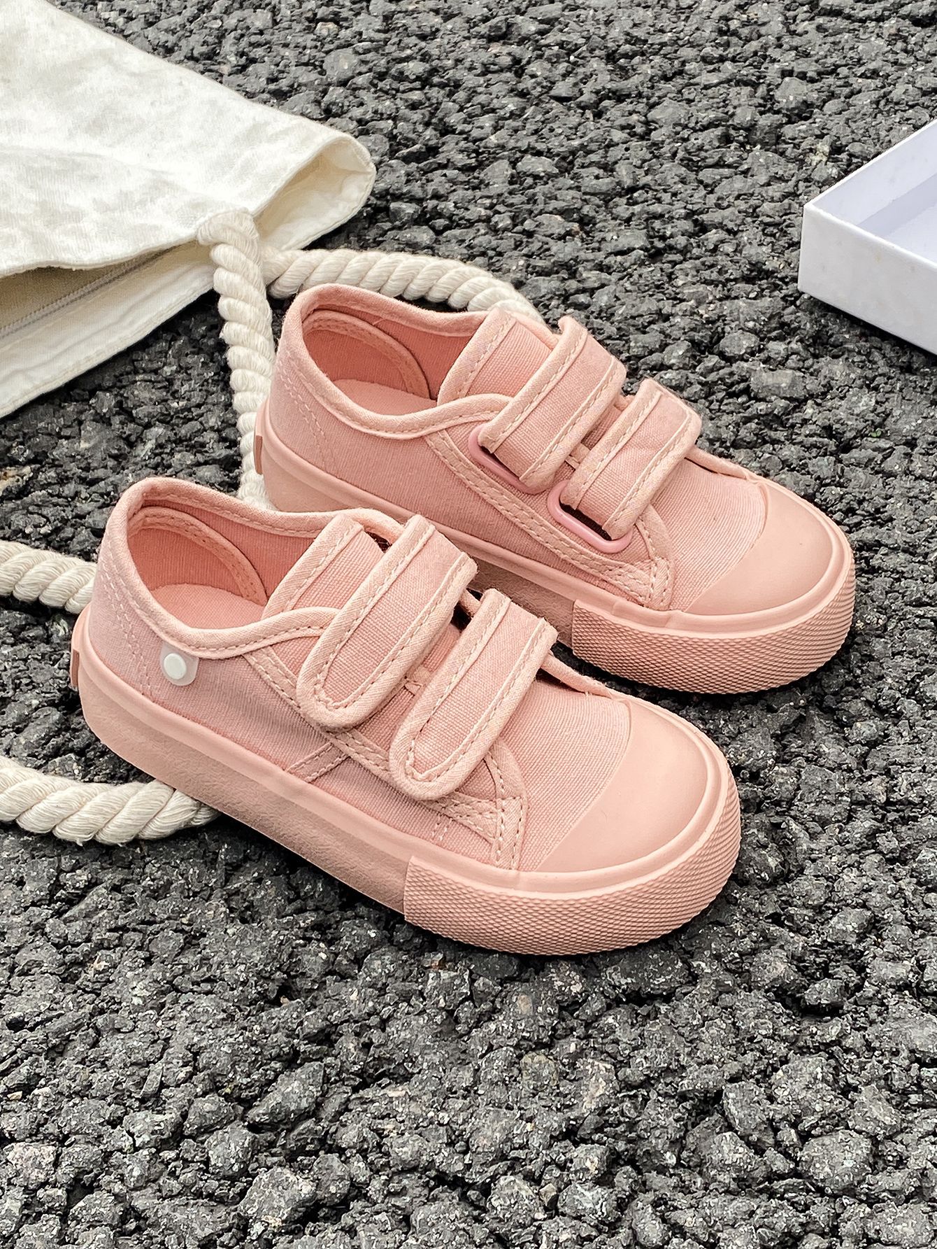 한국식 어린이 캔버스 신발 봄과 가을 소년과 소녀 로우 탑 보드 신발 캠퍼스 화이트 신발 벨크로 아기 실내 신발스토어 가기