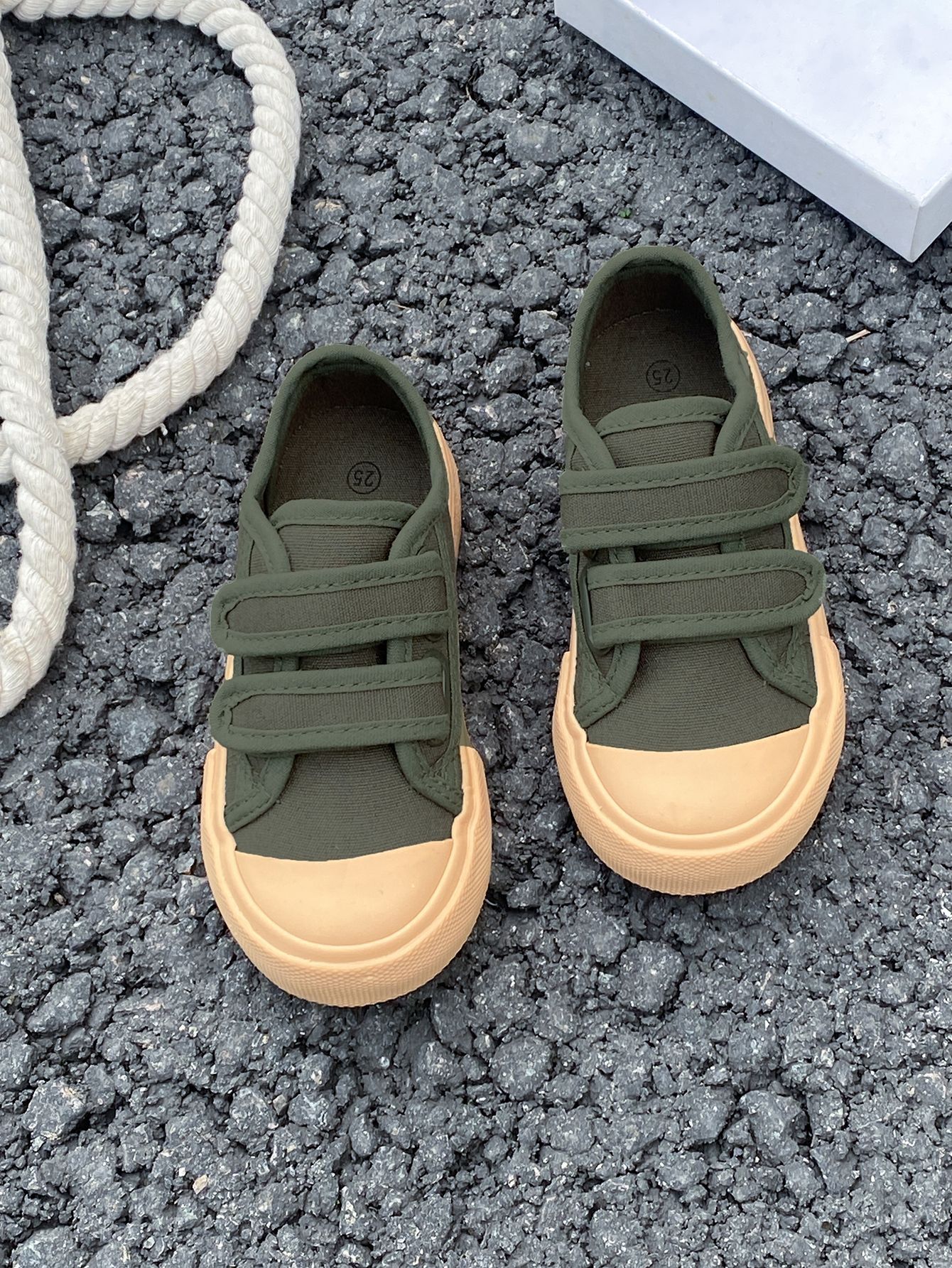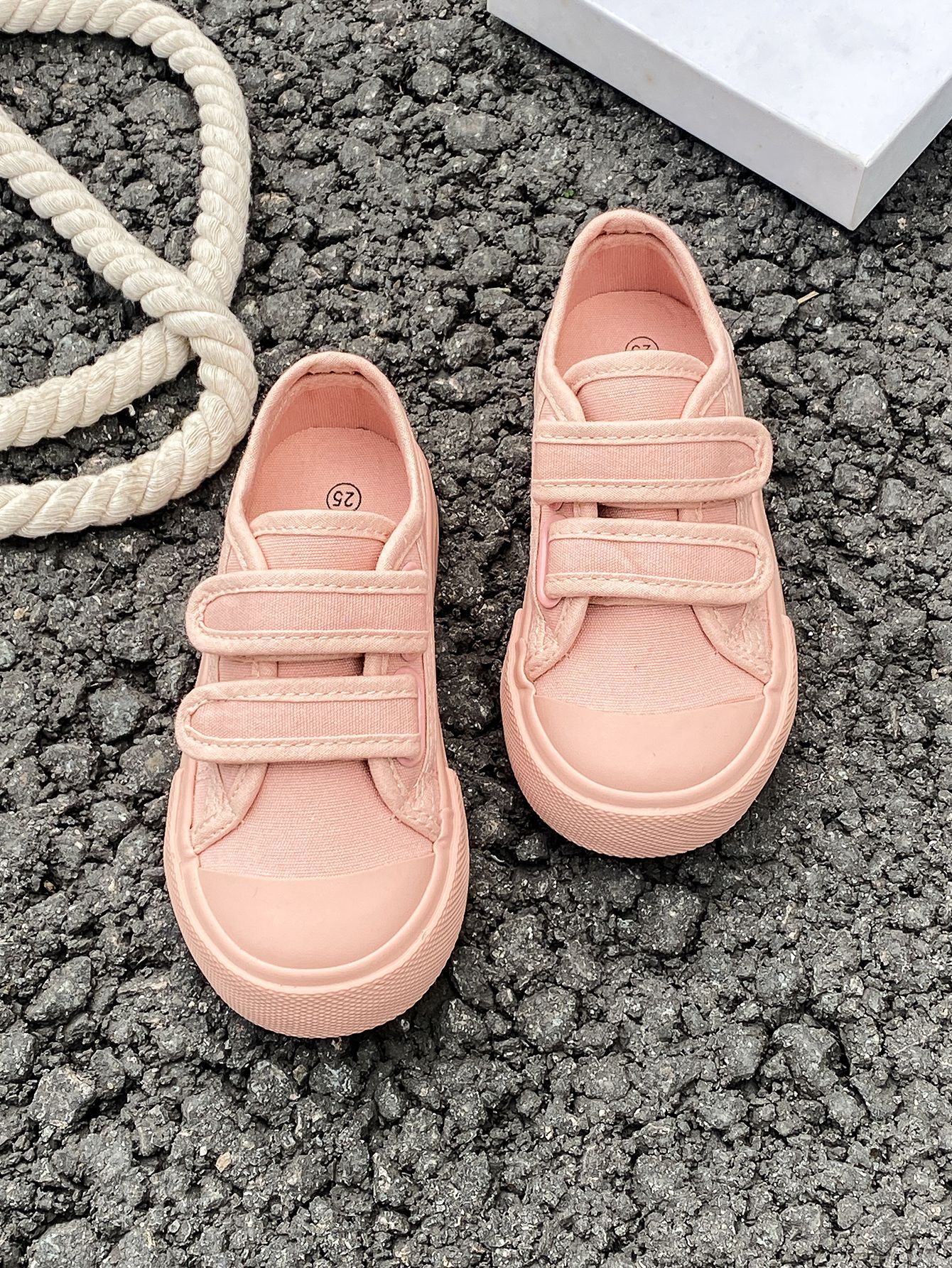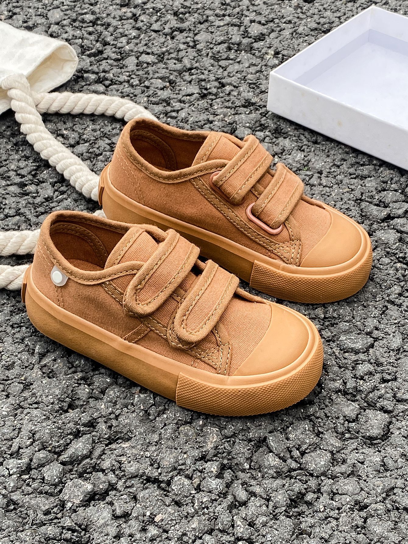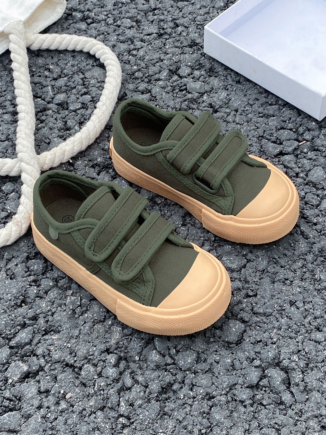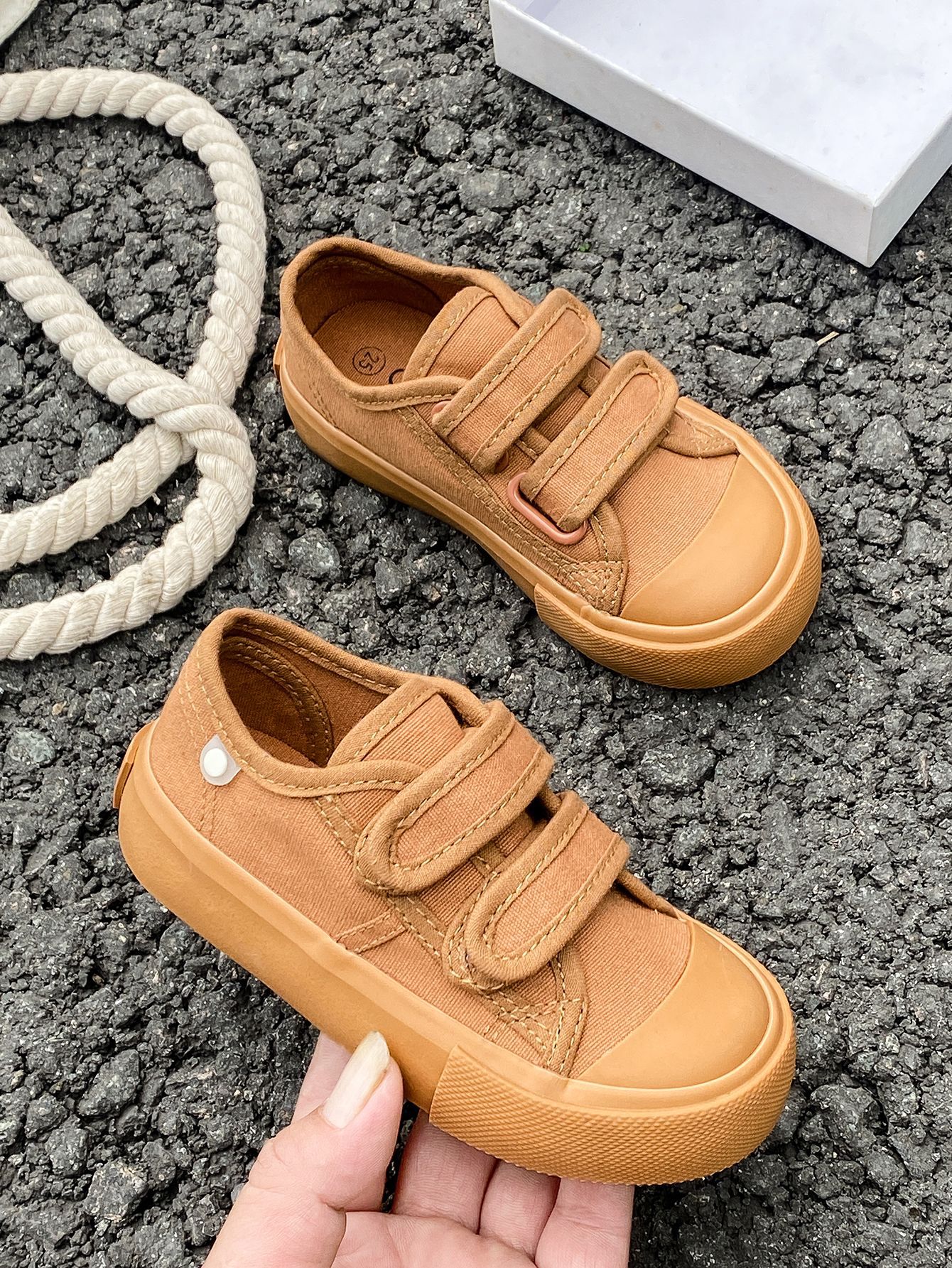 한국식 어린이 캔버스 신발 봄과 가을 소년과 소녀 로우 탑 보드 신발 캠퍼스 화이트 신발 벨크로 아기 실내 신발스토어 가기