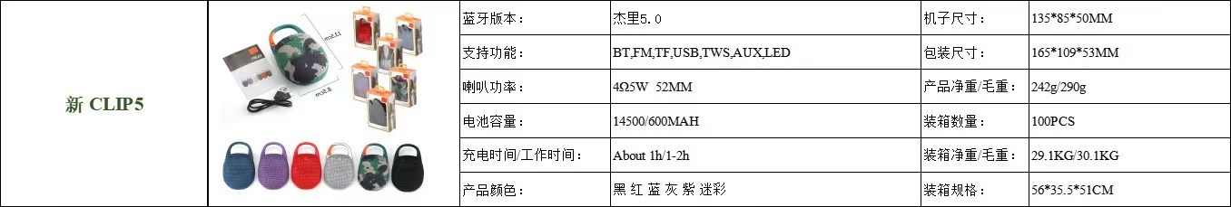 대외 무역 뜨거운 판매 CLIP5 블루투스 스피커 야외 휴대용 소형 스피커 패브릭 미니 방수 오디오 서브 우퍼스토어 가기