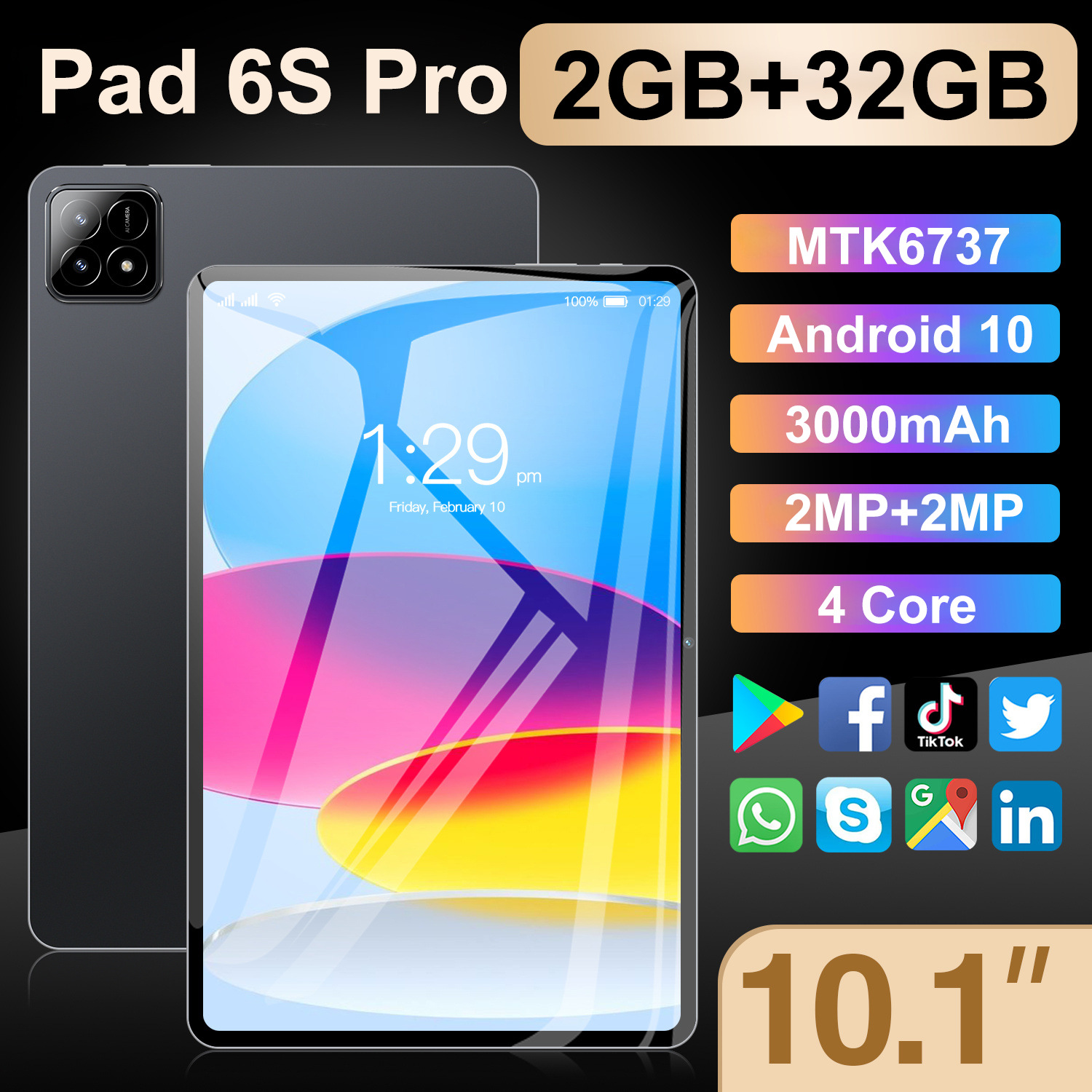 국경 간 태블릿 Pad6S Pro 10.1 인치 화면 2 32GB 안드로이드 시스템 10 AliExpress 핫 세일