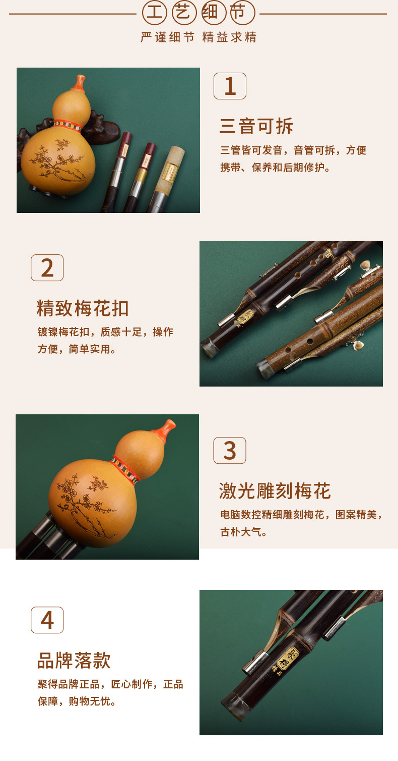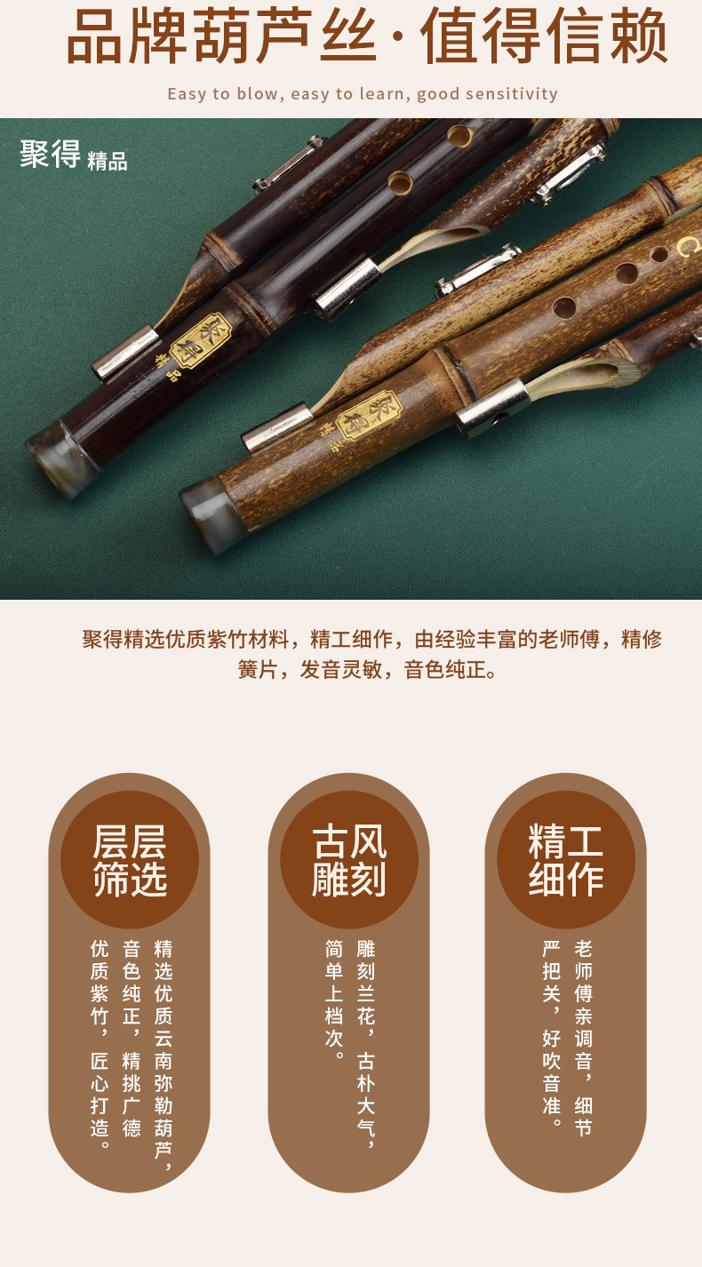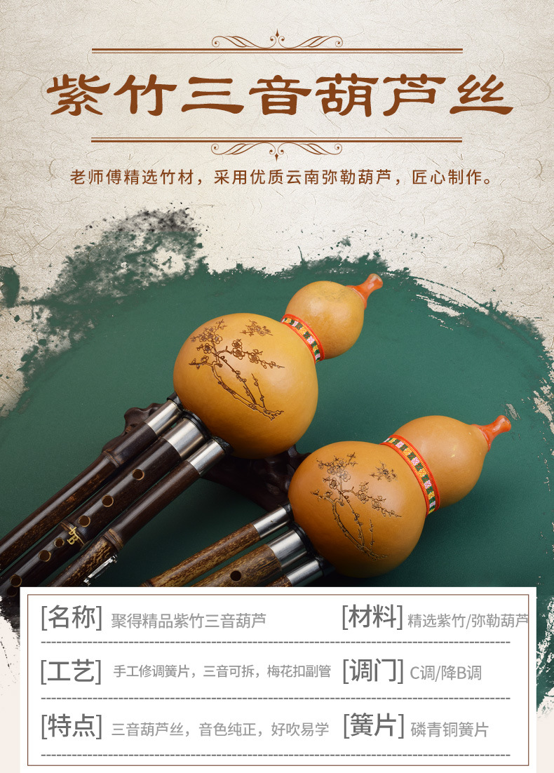 Hulusi 천연 보라색 대나무 3 톤 이동식 B 톤 C 톤 악기 성인 전문 공연 초보자 학생스토어 가기