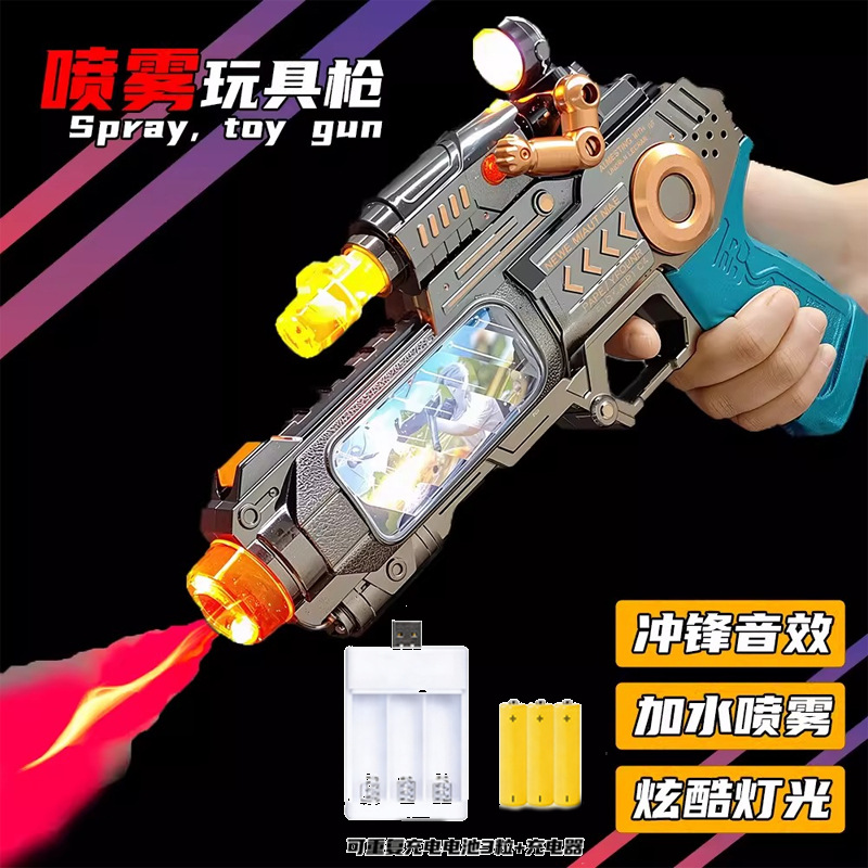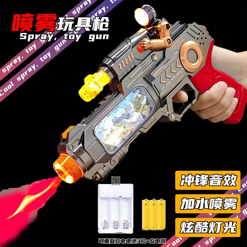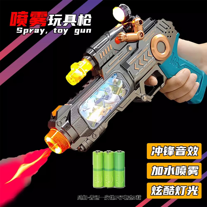 어린이 전기 스프레이 진동 장난감 총 키즈 소년 아기 빛나는 음악 쿨 장난감 권총 3-6 세