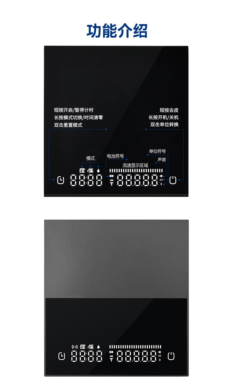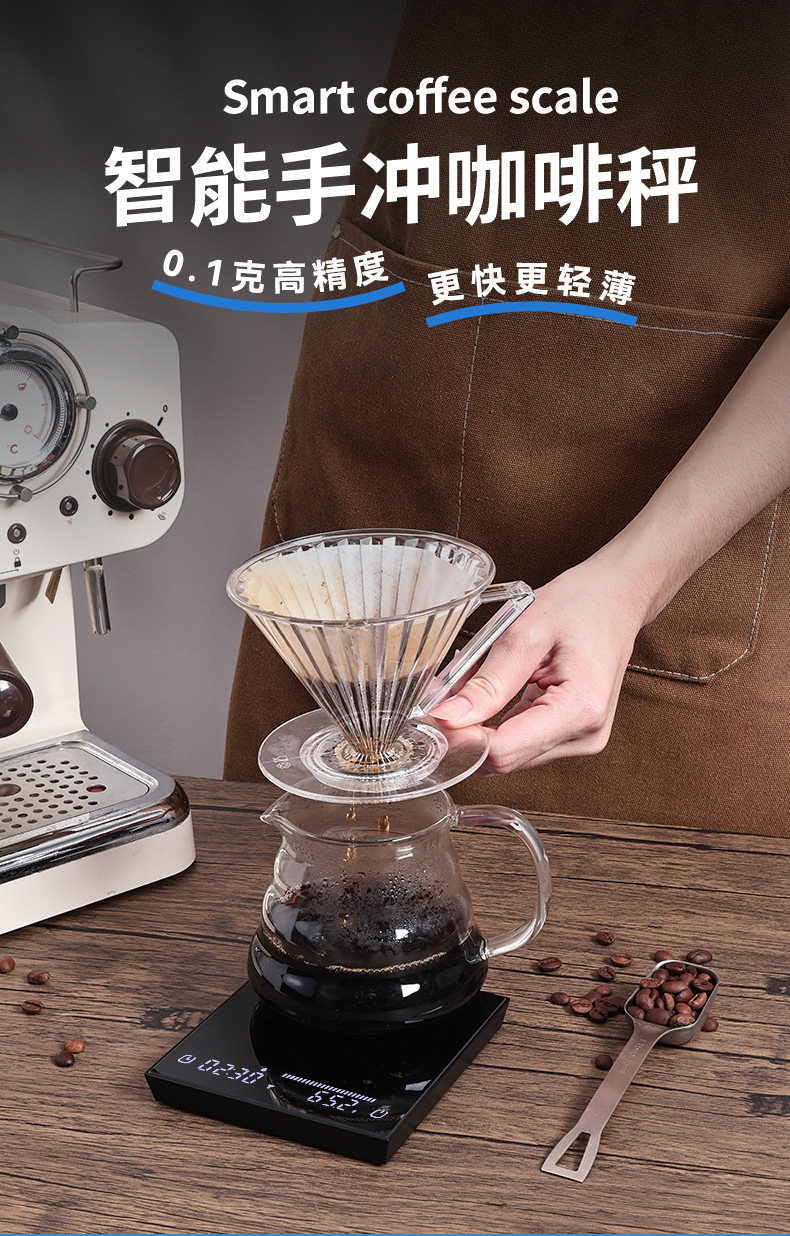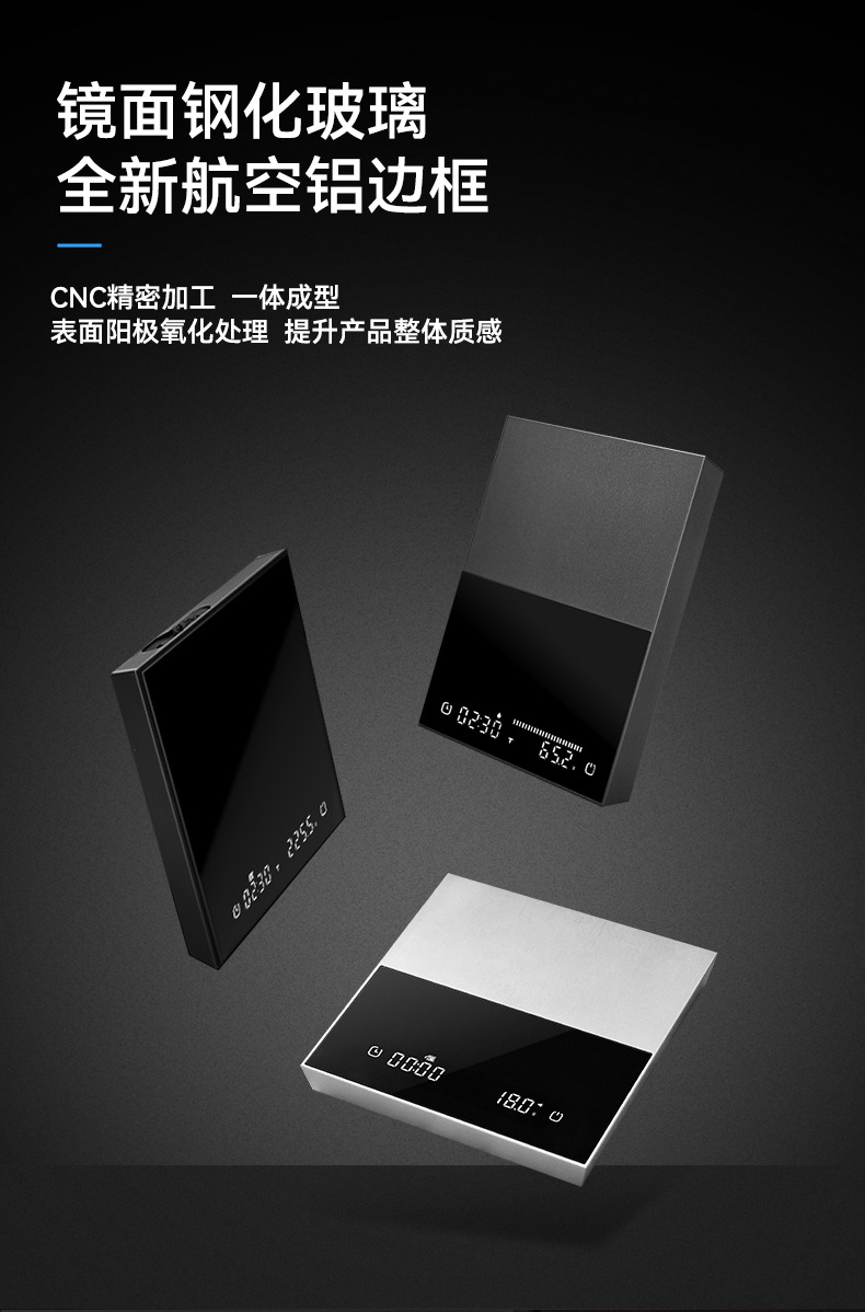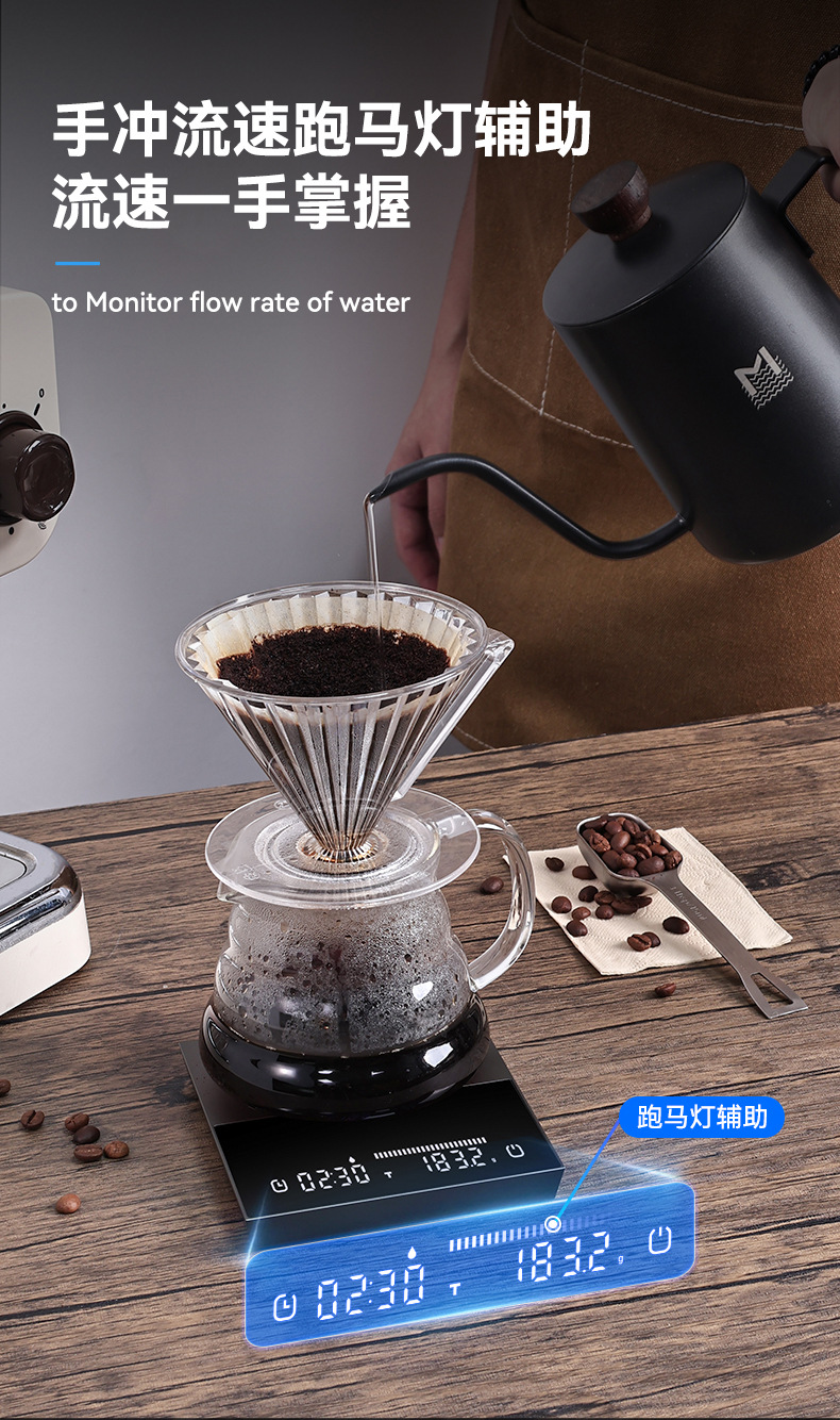 알루미늄 합금 핸드드립 커피 스케일, 분말과 물의 비율, 유량, 유리, 이탈리아식 커피, 전자저울, 그램 저울, 무게 측정, 타이머, 해외배송
