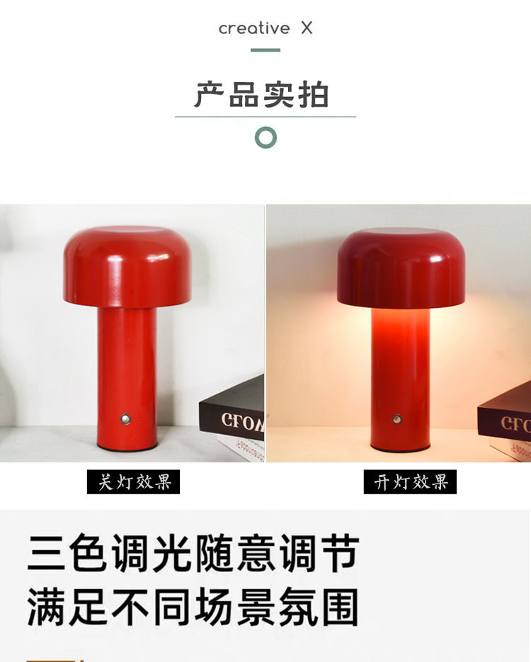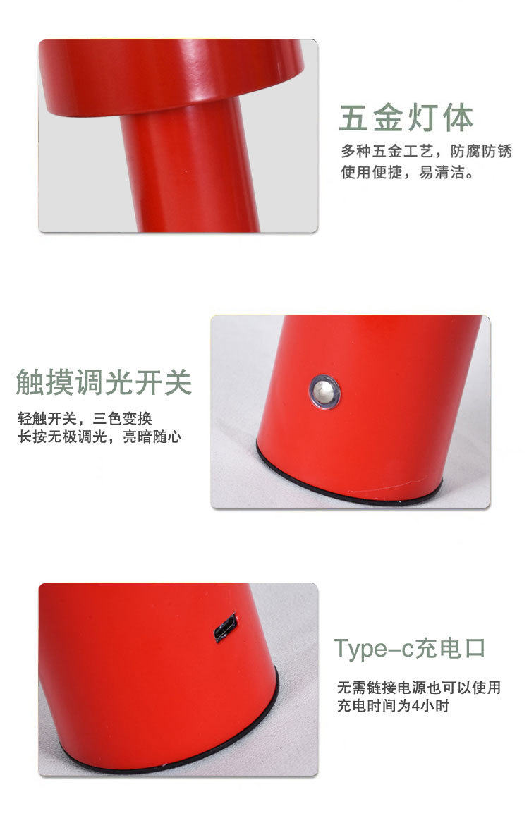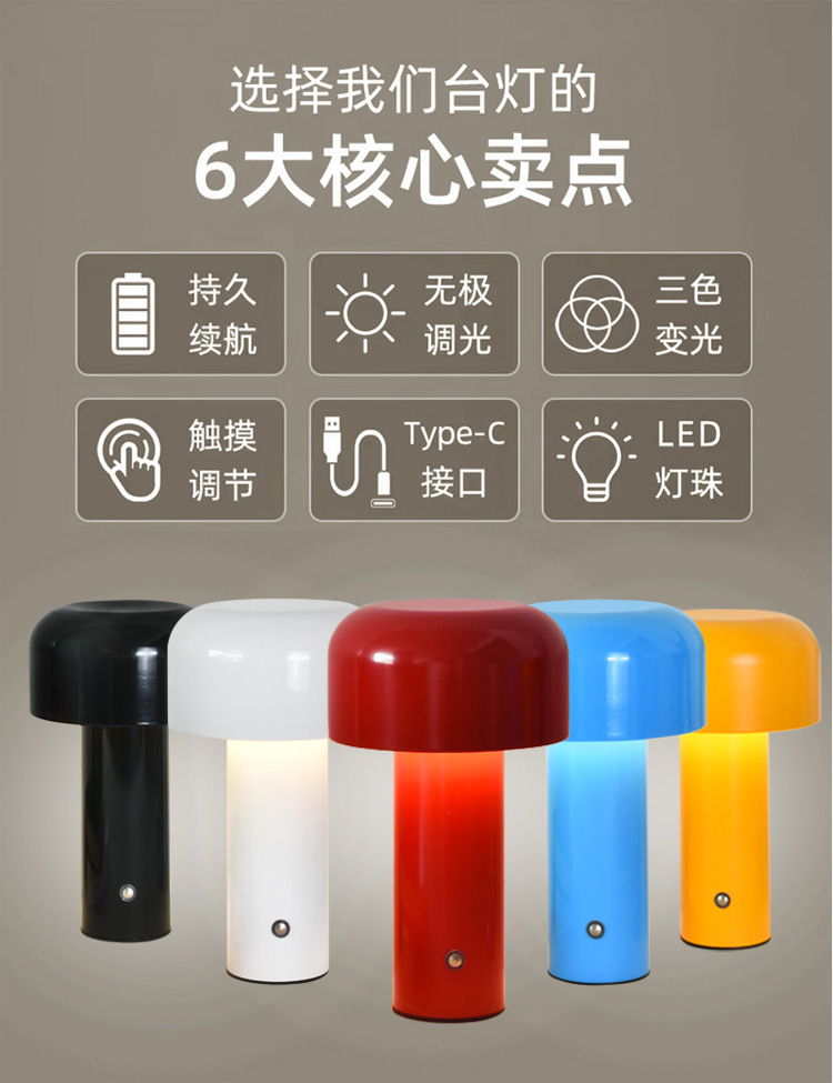 창조적 인 버섯 USB 충전식 터치 장식 테이블 램프 바 명확한 바 카페 장식 테이블 램프 금속 야간 조명