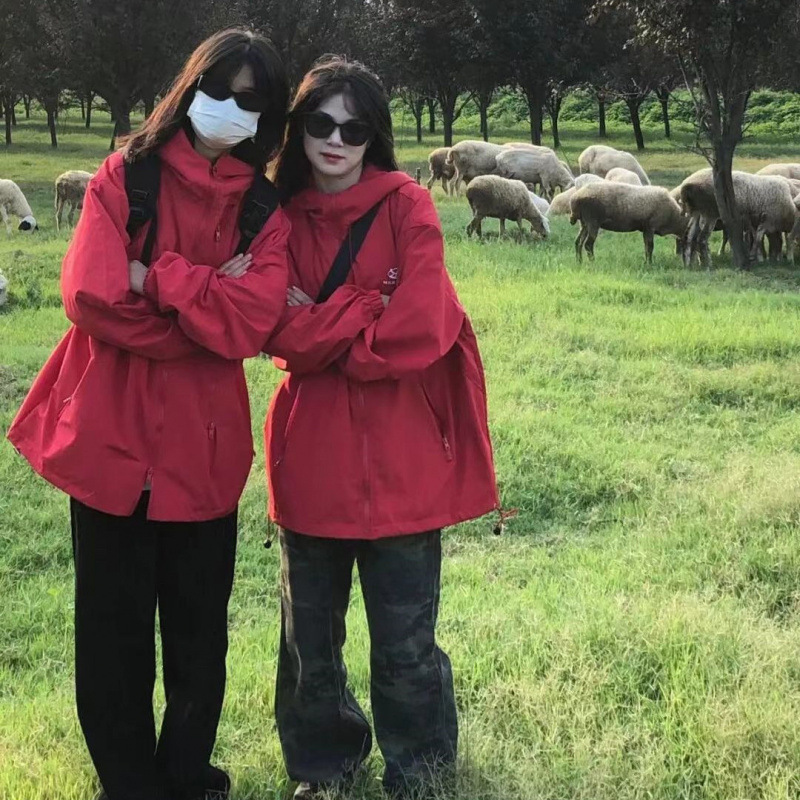 미국 스타일의 복고풍 충전 옷 여성의 봄과 가을 2024 새로운 레드 한국 스타일 느슨한 후드 긴 소매 재킷스토어 가기