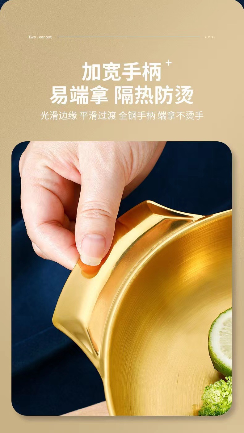 한국식 스테인레스 스틸 건조 냄비 황금 바이노럴 파스타 플레이트 창조적 인 구운 쌀 플레이트 깊은 디스크 평평한 바닥 판라면 작은 냄비스토어 가기