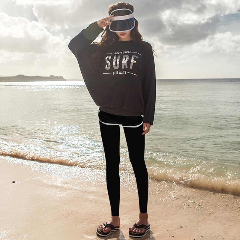공장 도매 수영복 여성 다이빙 세트 풀오버 박쥐 최고 스포츠 조끼 포켓 복서 검은 바지