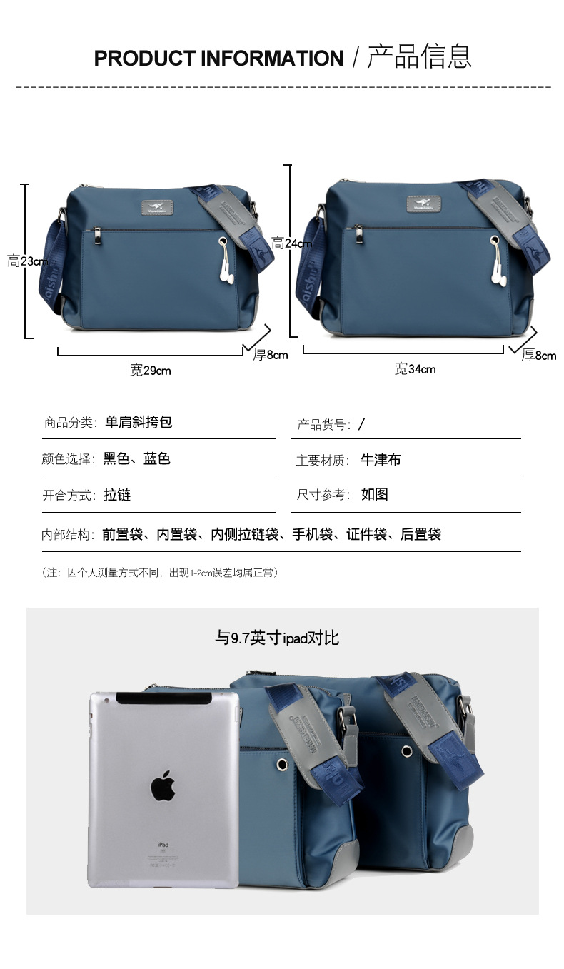 새로운 방수 옥스포드 천 어깨 캐주얼 크로스 바디 백 패션 남성 캔버스 크로스 백 남성용 트렌디 한 작은 배낭 가방스토어 가기