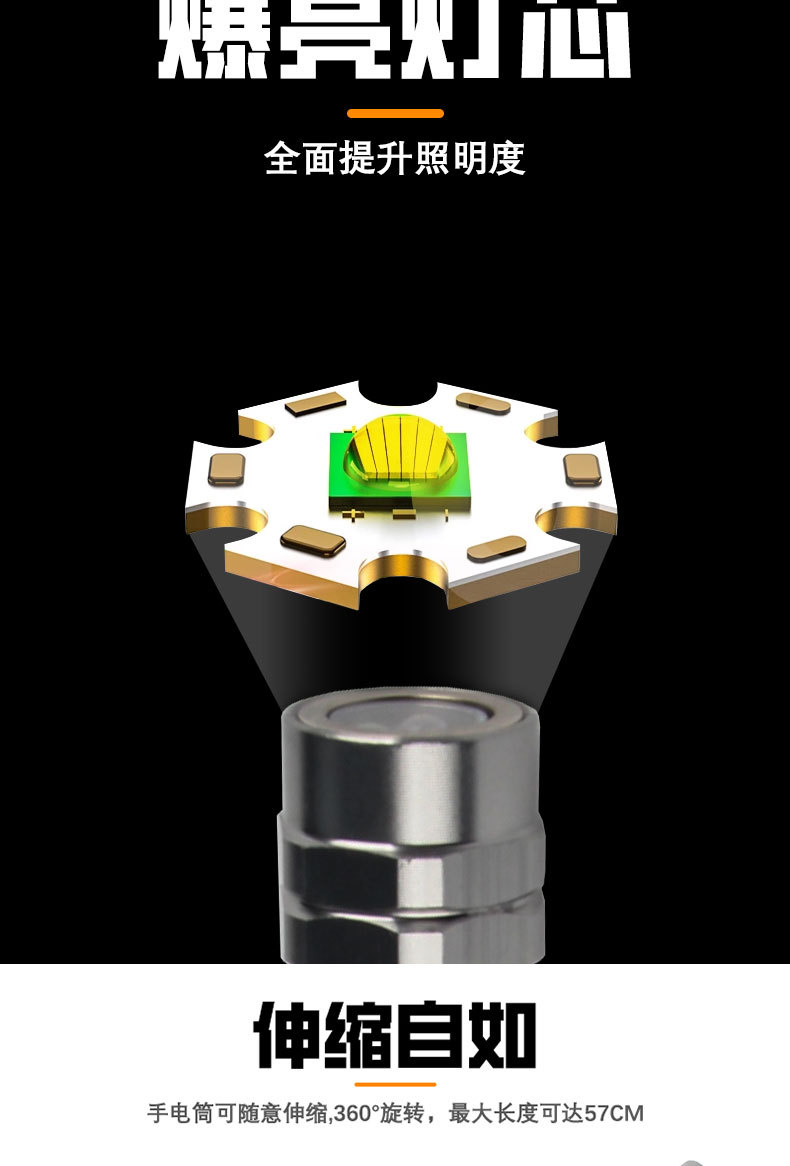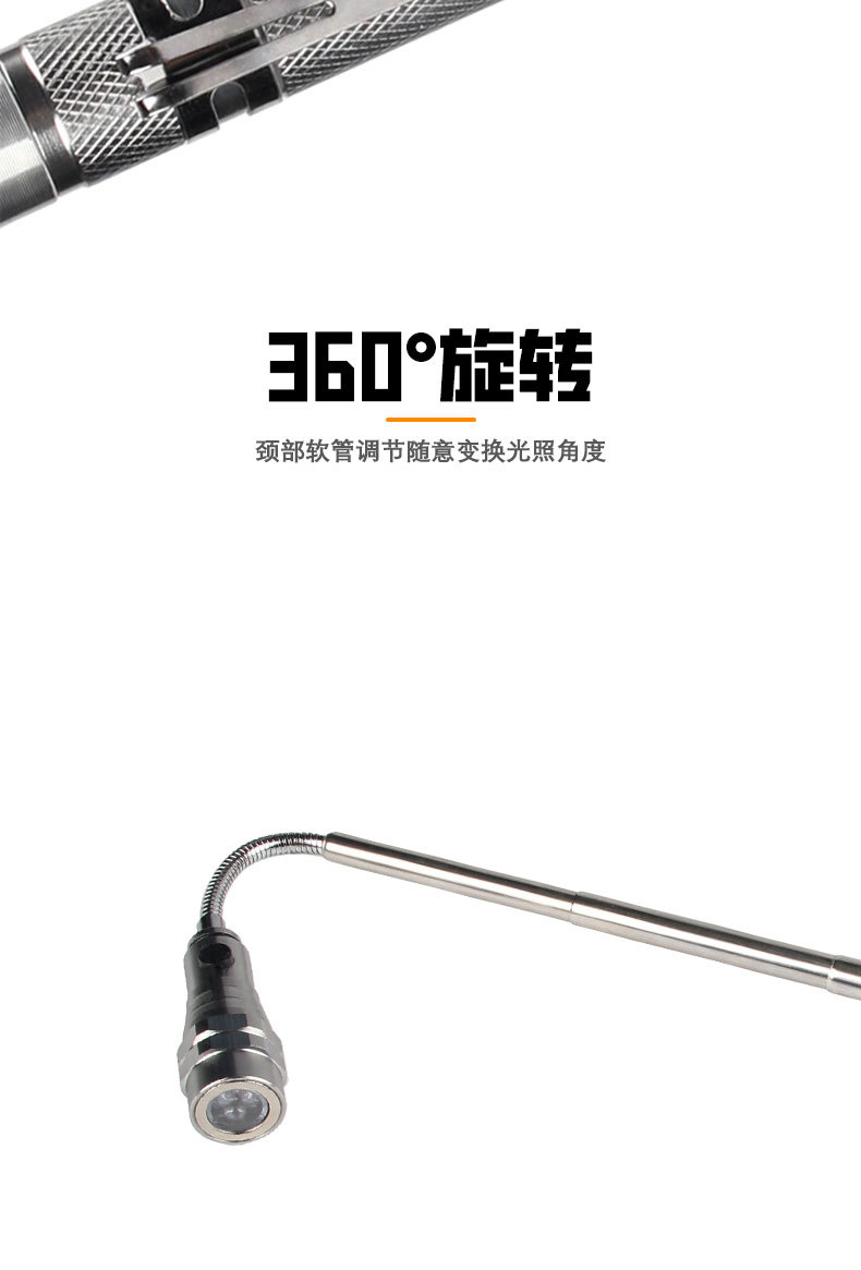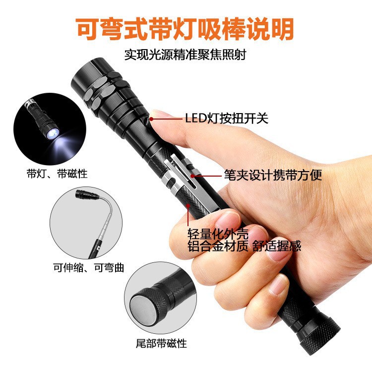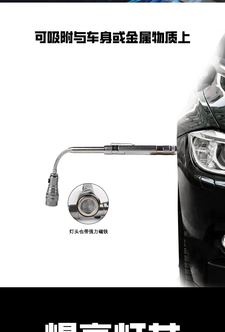 3 램프 픽업 강한 자기 철 흡수 인장 강관 금속 호스 임의의 벤딩 LED 다기능 작업 손전등