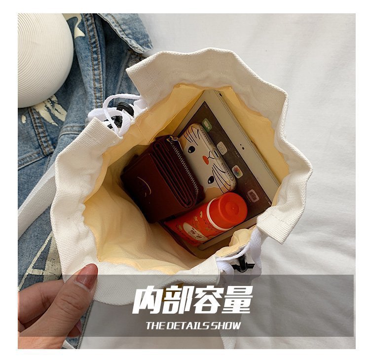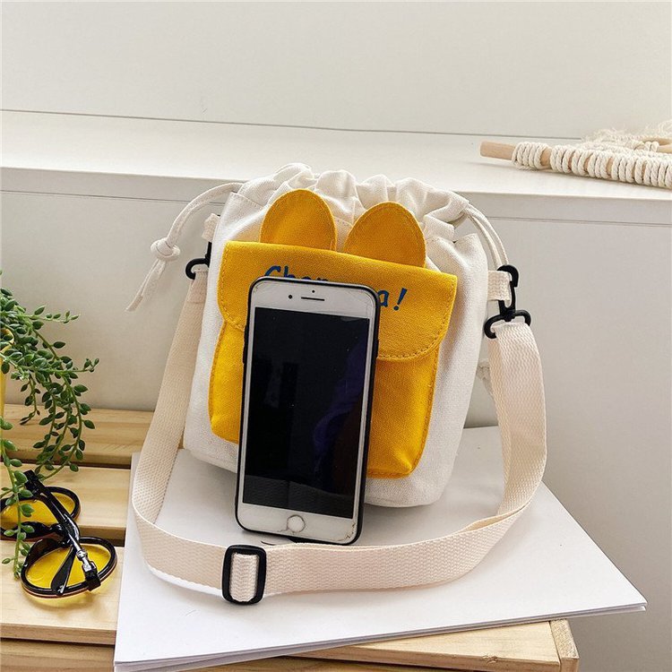 귀여운 캔버스 작은 가방 새로운 단색 작은 귀 크로스 바디 가방 여성의 Instagram 스타일 휴대 전화 가방 대용량 크로스 바디 백스토어 가기