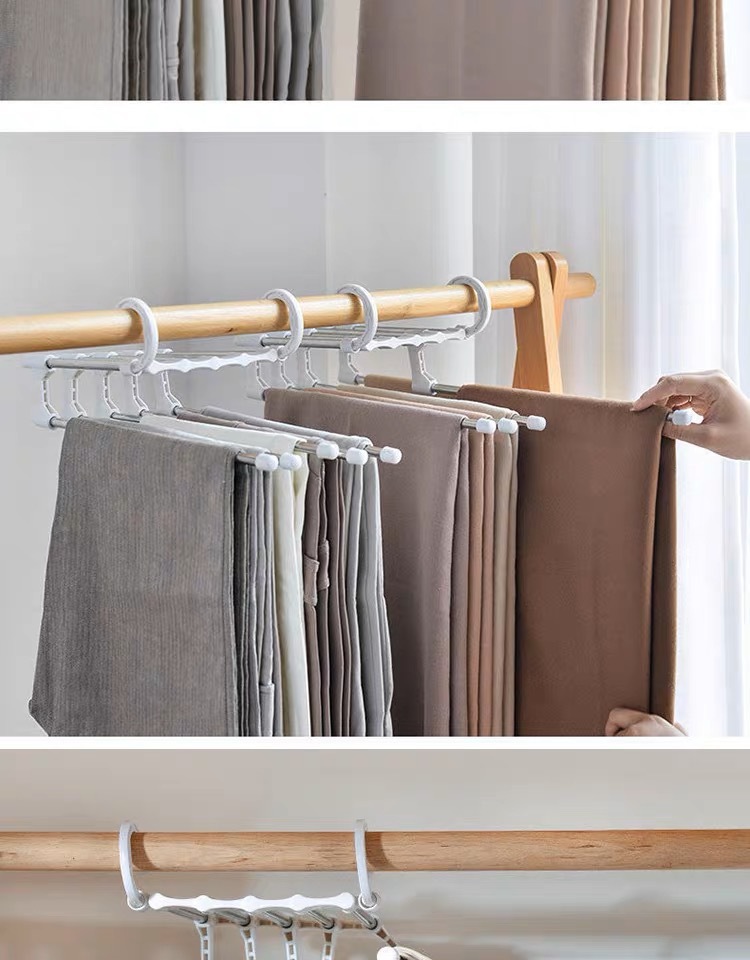 뜨거운 판매 가정용 기숙사 옷장 원활한 저장 걸이 스테인레스 스틸 다층 접이식 다기능 망원경 매직 바지 랙