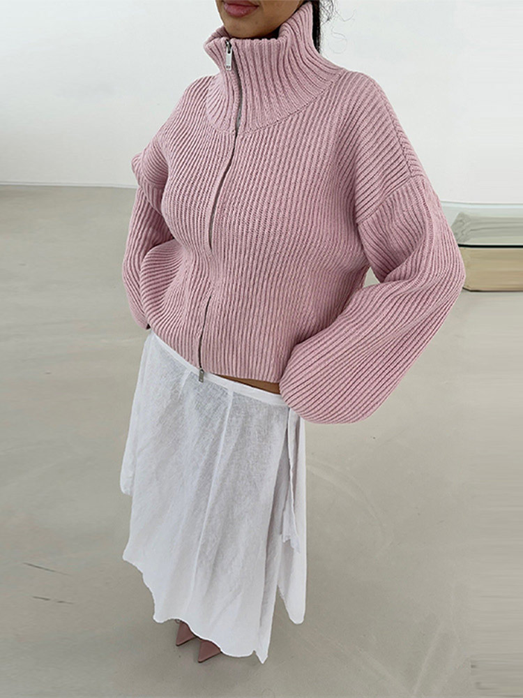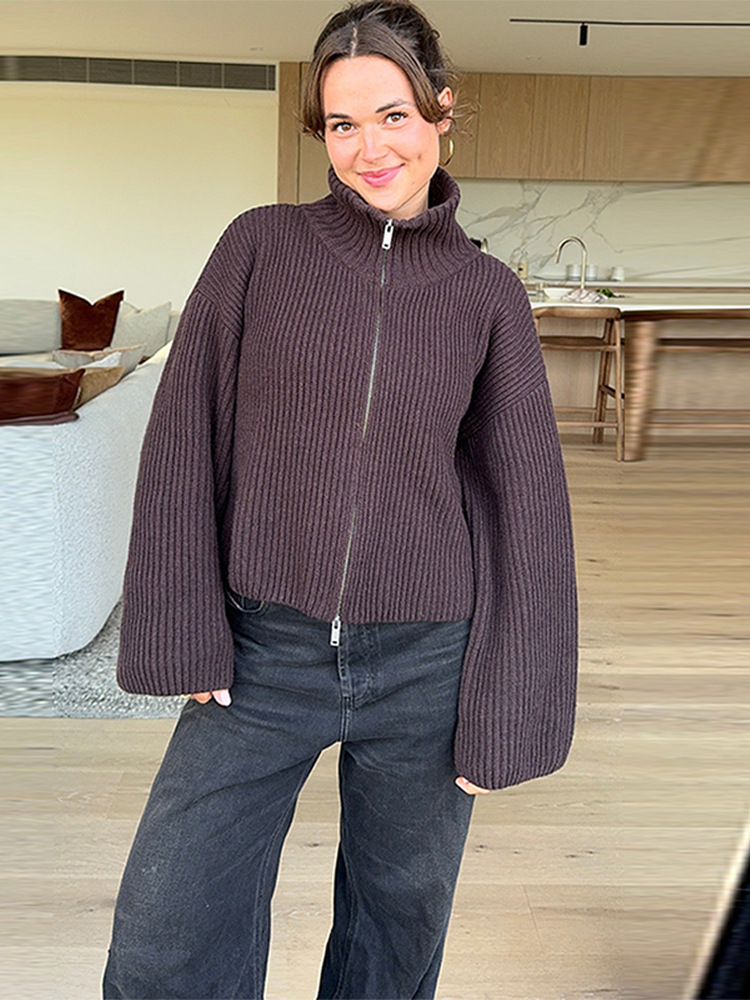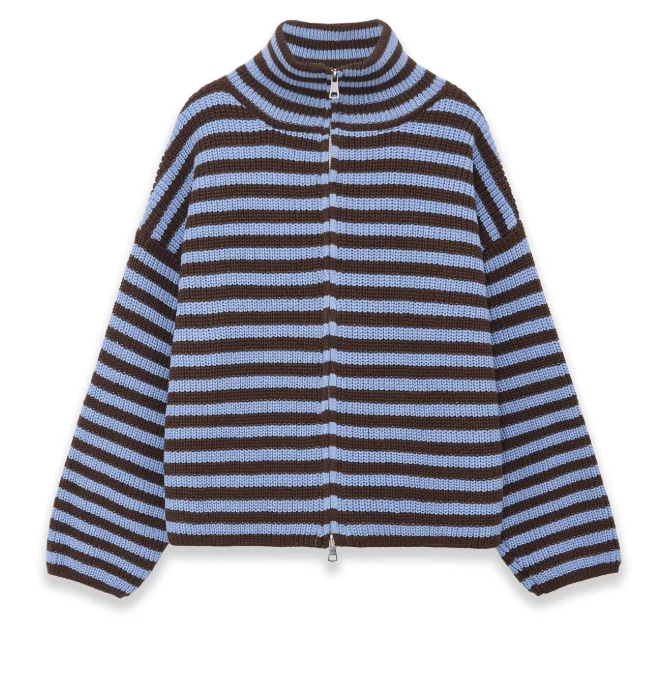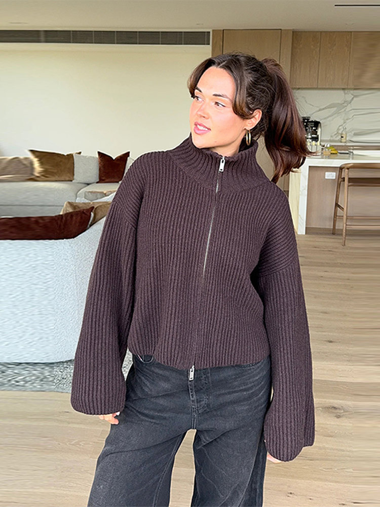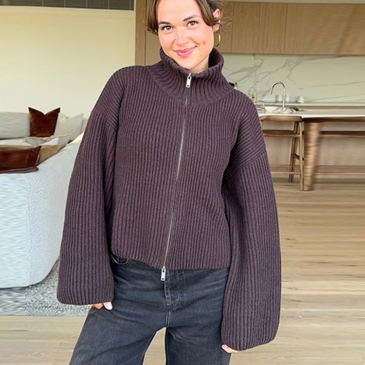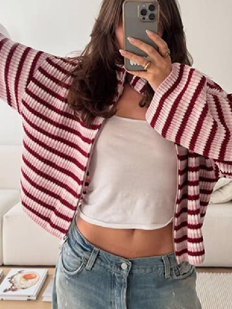 2026년 크로스보더 알리익스프레스 인기상품 초봄 신상품 레이지 스타일 다용도 스탠드 칼라 스트라이프 지퍼 스웨터 니트 가디건 여성용스토어 가기