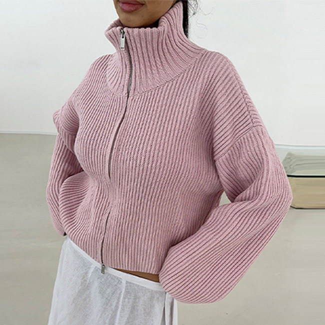 2026년 크로스보더 알리익스프레스 인기상품 초봄 신상품 레이지 스타일 다용도 스탠드 칼라 스트라이프 지퍼 스웨터 니트 가디건 여성용