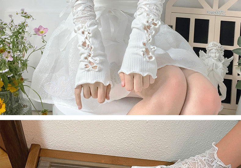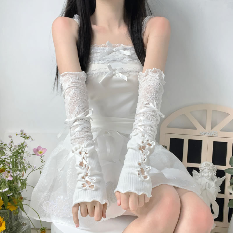 할로윈 액세서리 장갑 로리타 레이스 긴 손 소매 여성의 하위 문화 반 팜 발레 스타일 스트랩 슬리브 Y2K스토어 가기