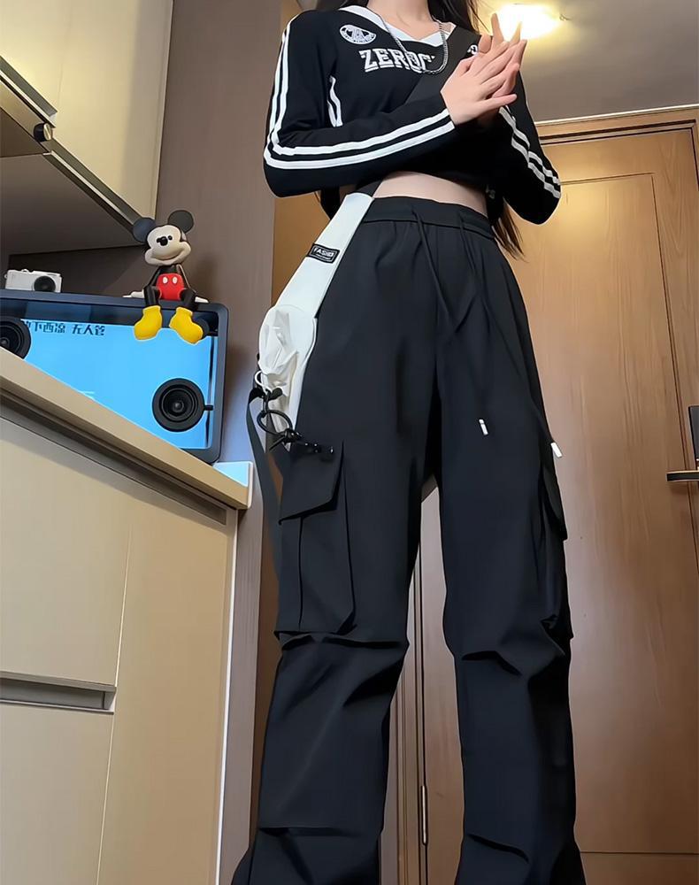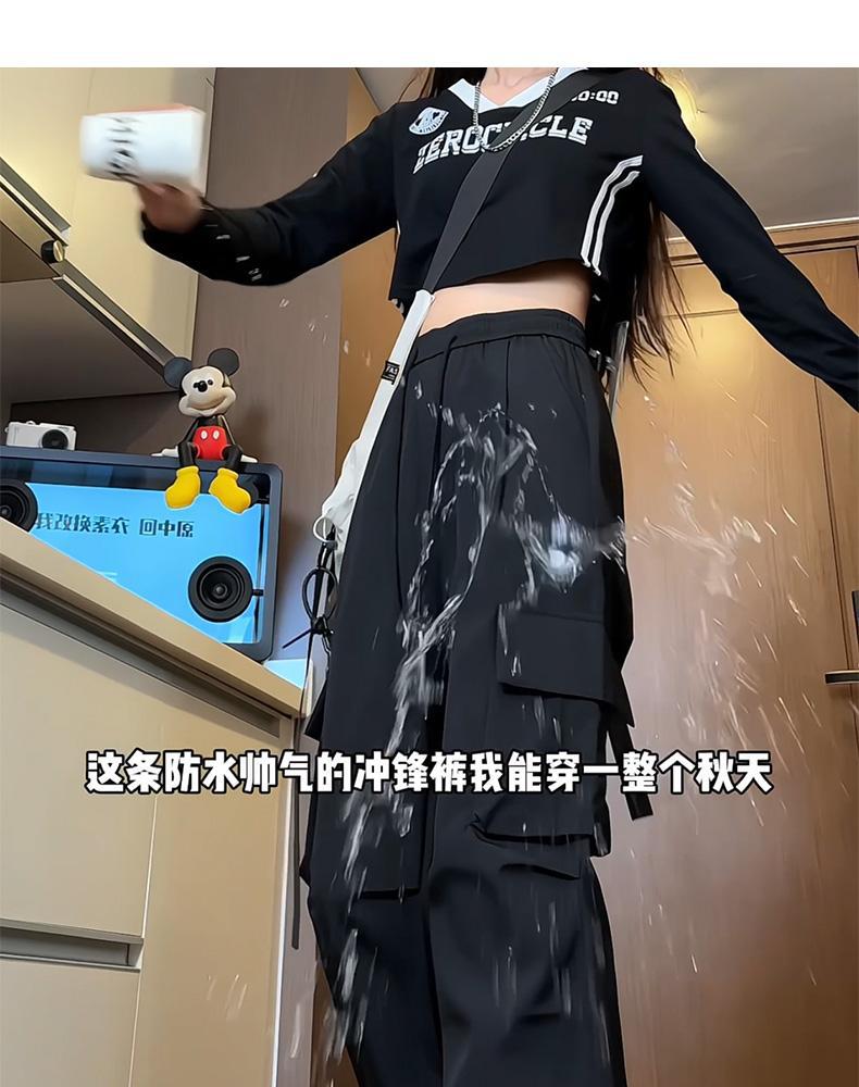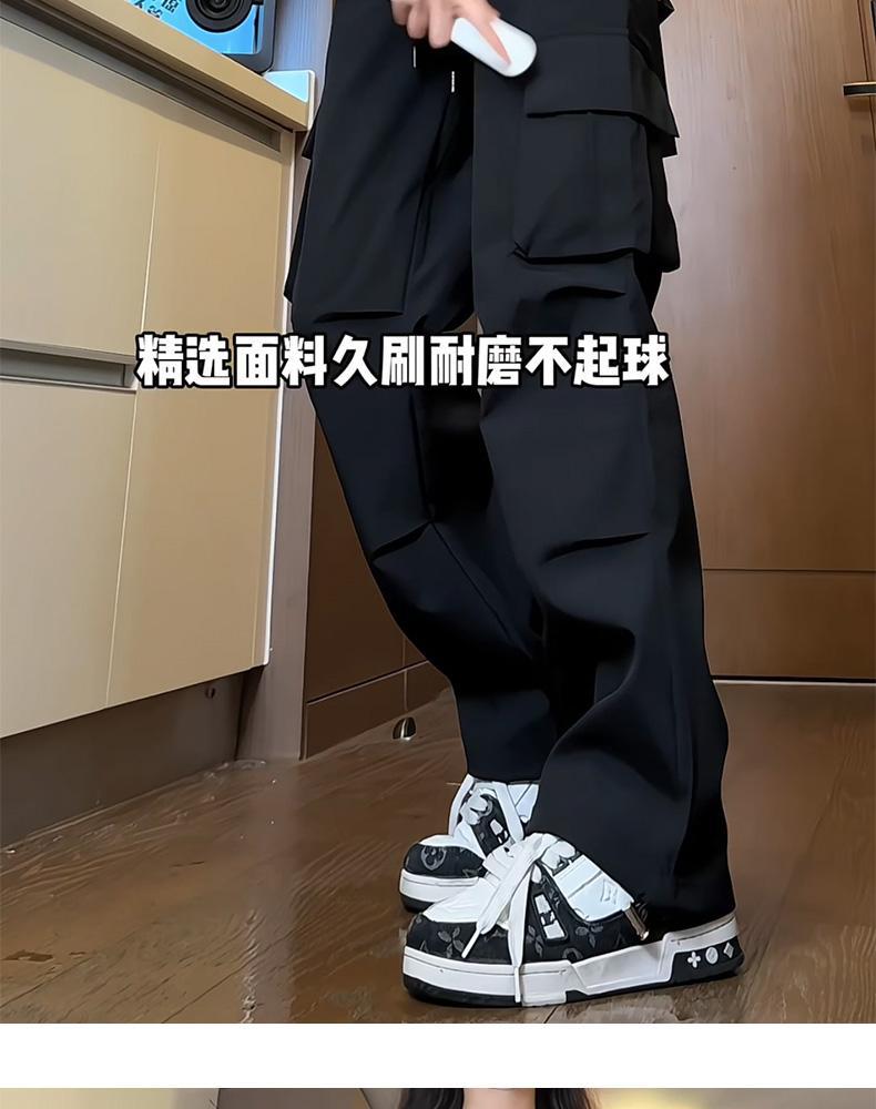 작업복 남성 가을과 겨울 느슨한 미국 스타일 기능성 방풍 방수 충전 바지 멀티 포켓 스트레이트 캐주얼 바지