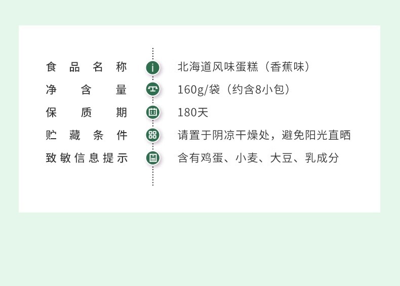 좋은 제품 가게 홋카이도 맛 케이크 바나나 맛 160g 아침 식사 계란 롤 학생 기숙사 대체 케이크 간식스토어 가기