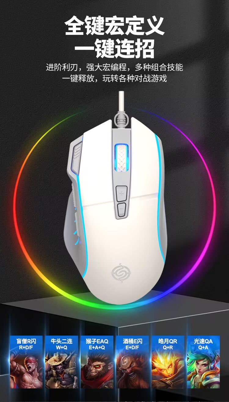 Viper Q6 유선 게임 마우스 데스크톱 컴퓨터 노트북 홈 오피스 조명 매크로 프로그래밍 LOL e 스포츠