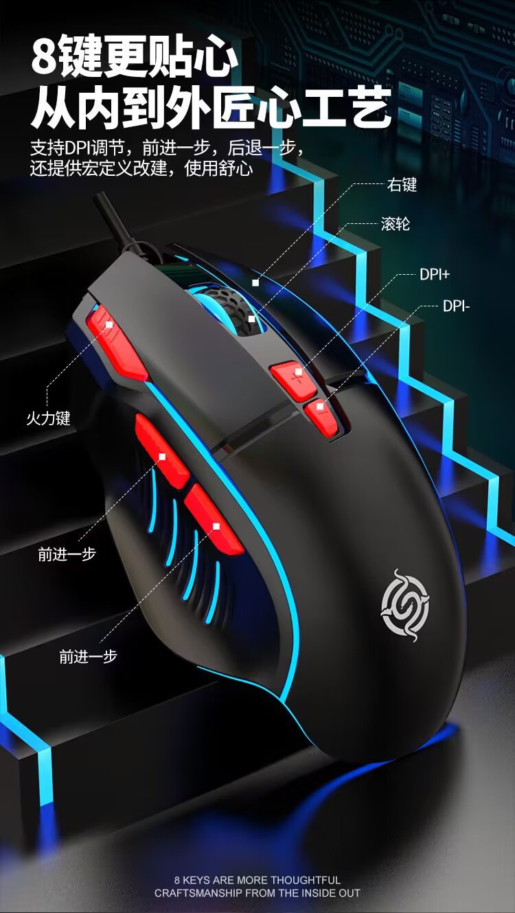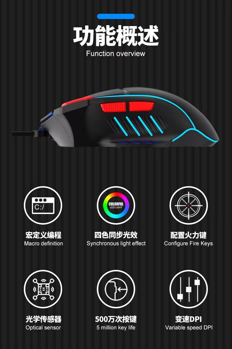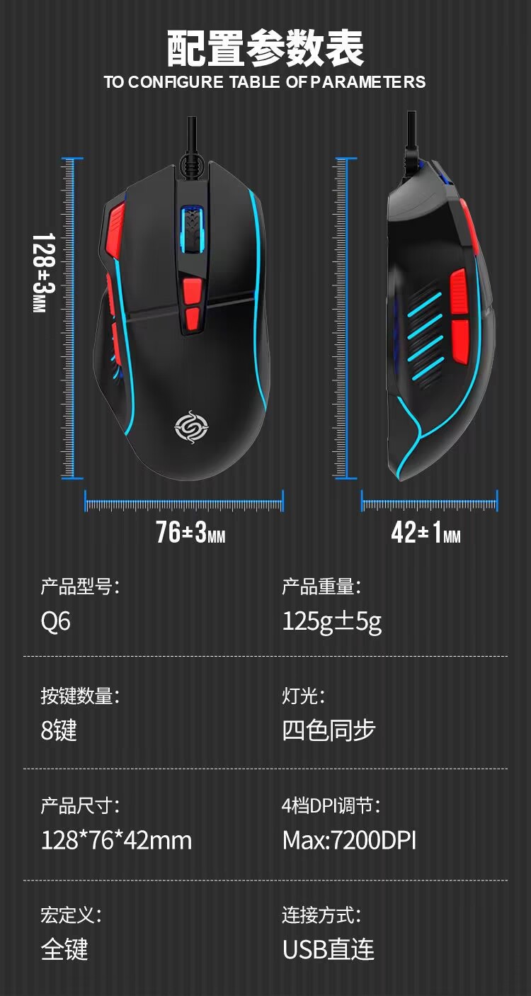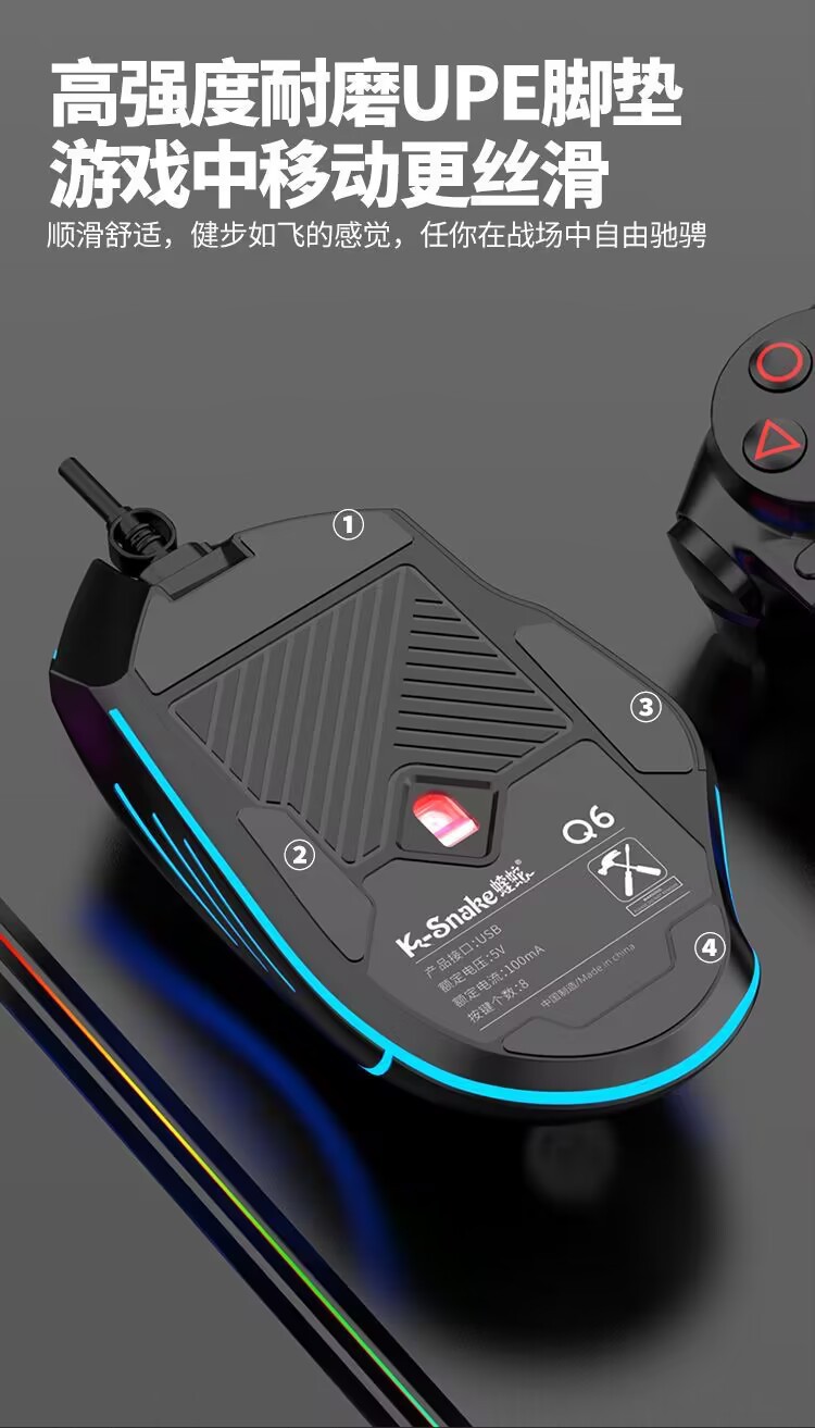 Viper Q6 유선 게임 마우스 데스크톱 컴퓨터 노트북 홈 오피스 조명 매크로 프로그래밍 LOL e 스포츠스토어 가기