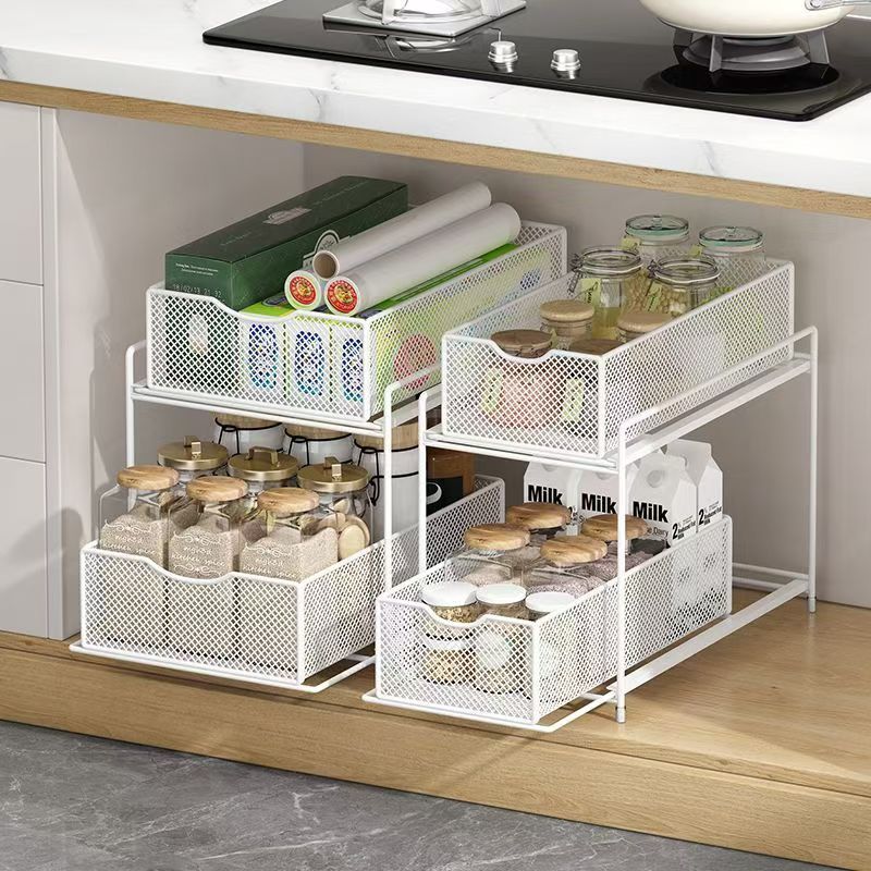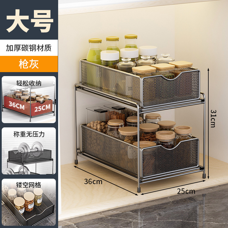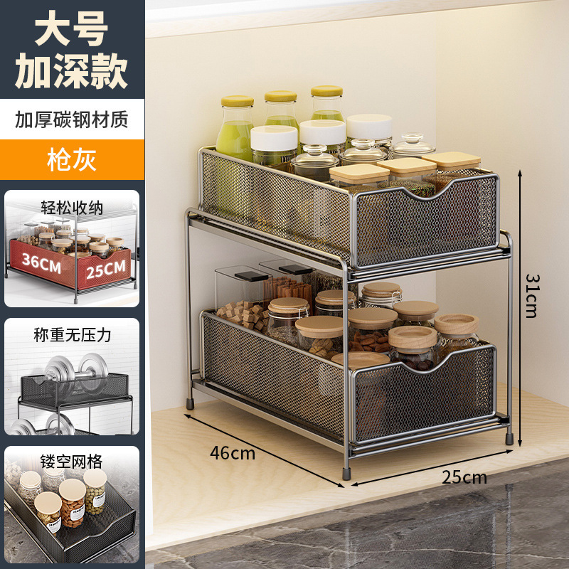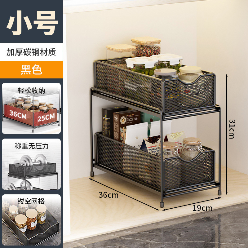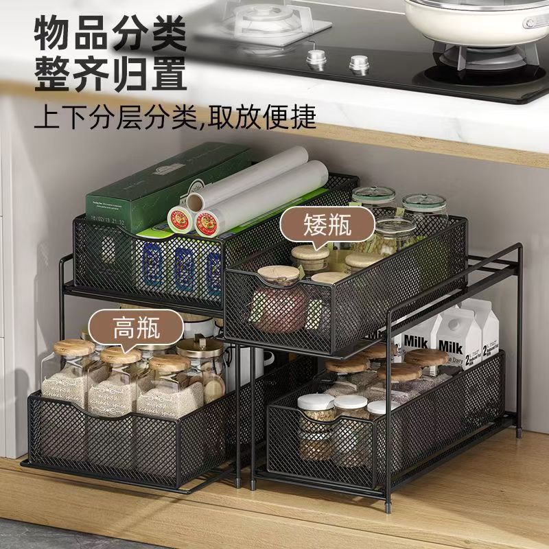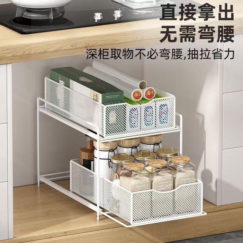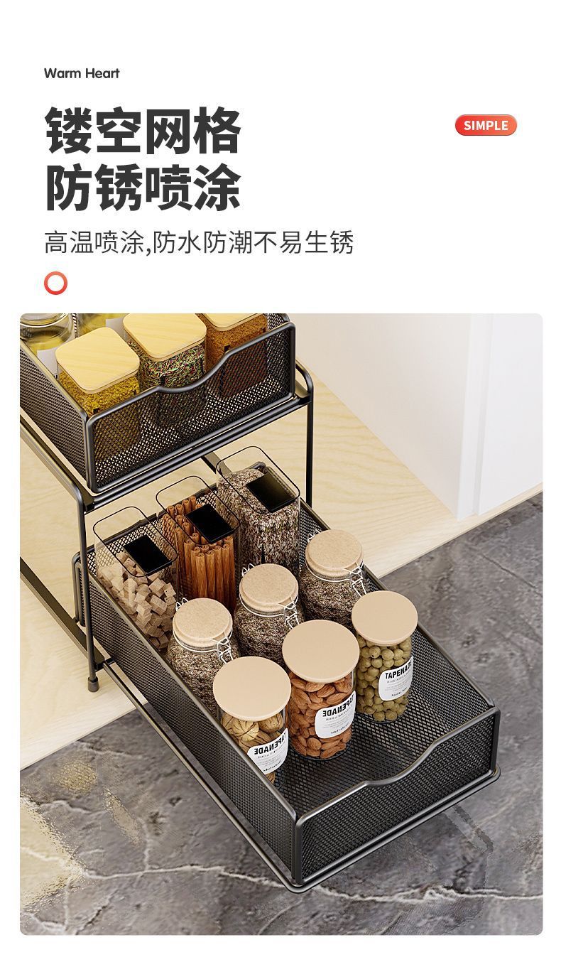 주방 보관 랙 캐비닛 푸시 풀 레이어드 로우 싱크 캐비닛 스토리지 랙 2 층 3 층 풀 바구니 양념 랙스토어 가기