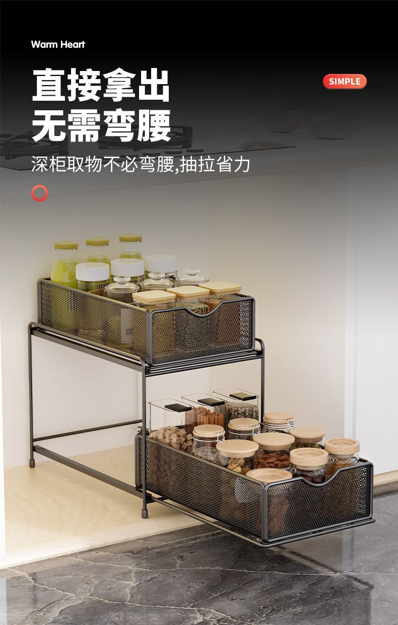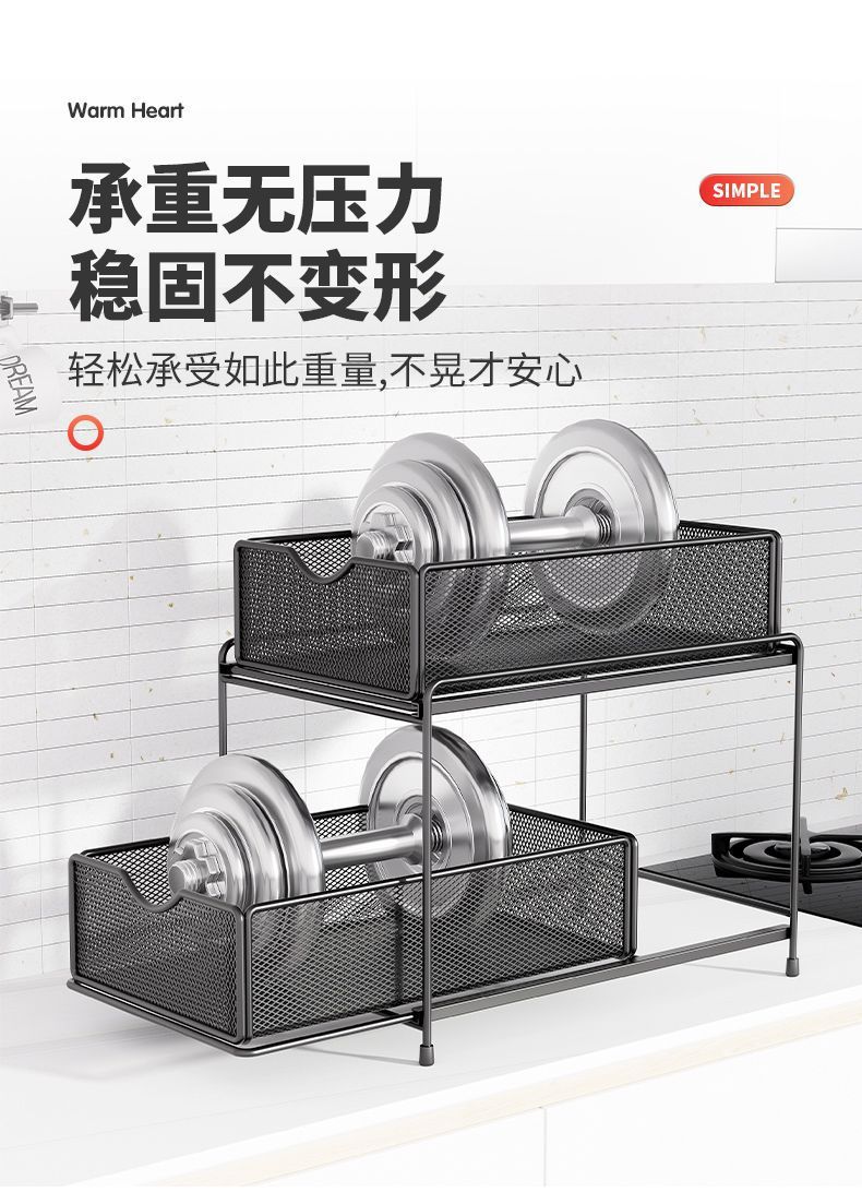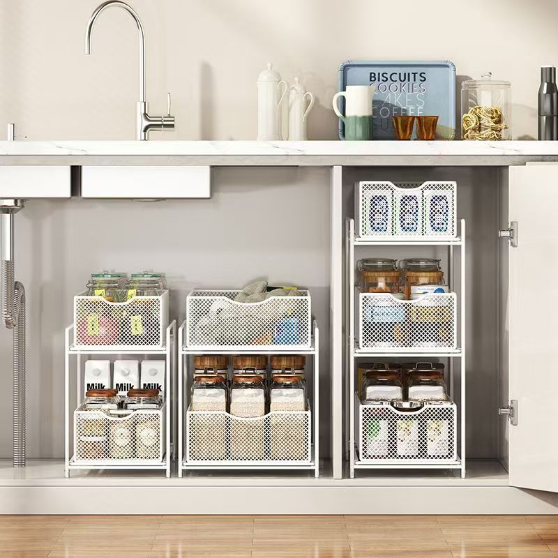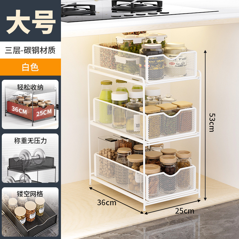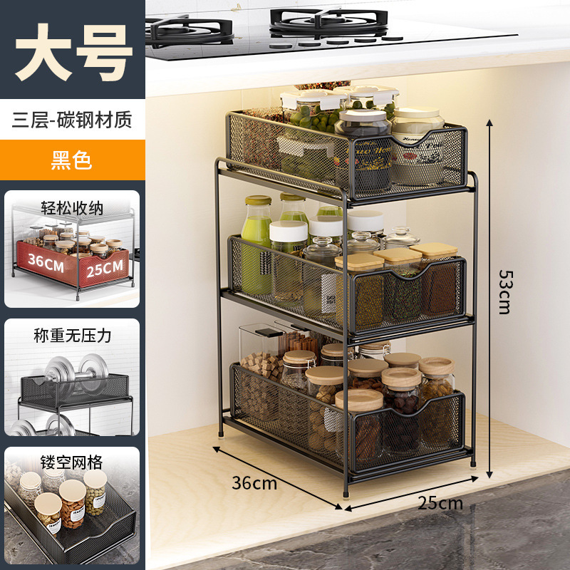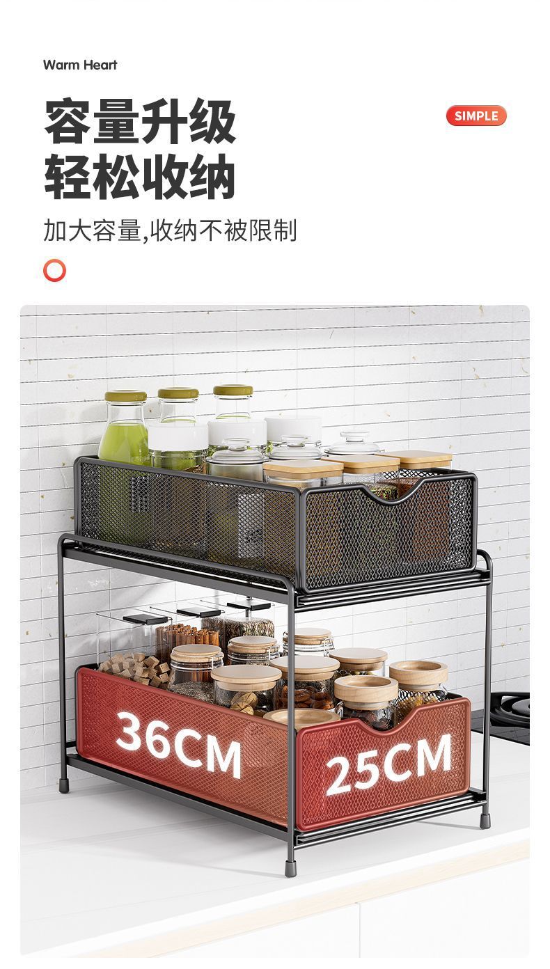 주방 보관 랙 캐비닛 푸시 풀 레이어드 로우 싱크 캐비닛 스토리지 랙 2 층 3 층 풀 바구니 양념 랙스토어 가기