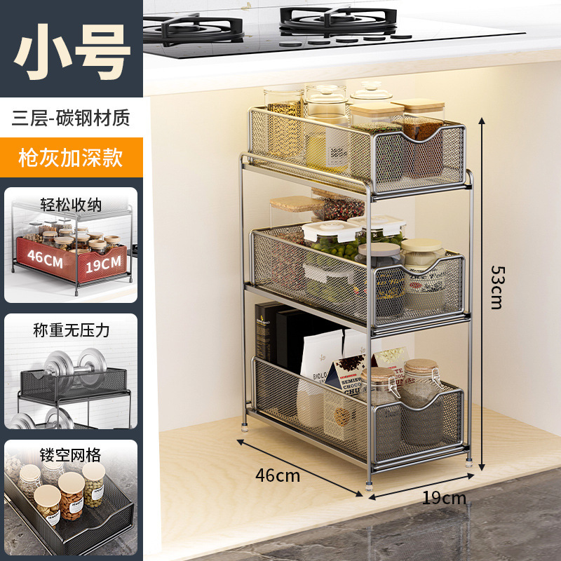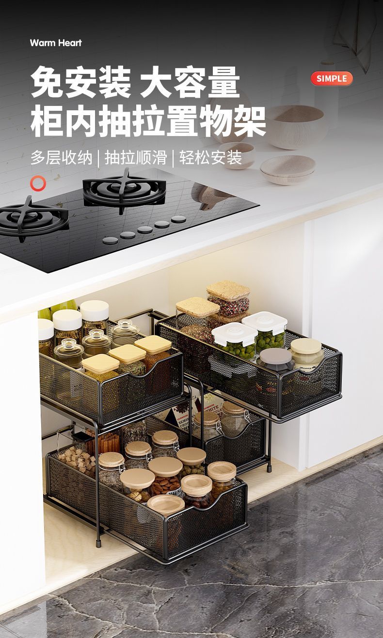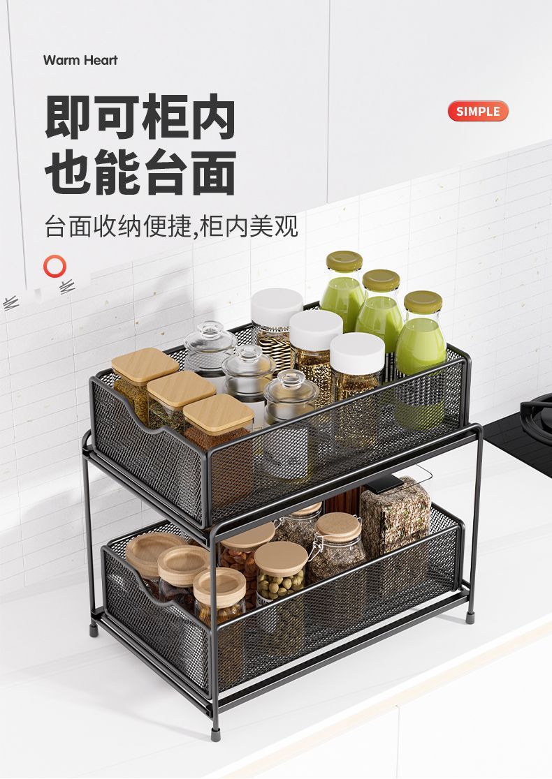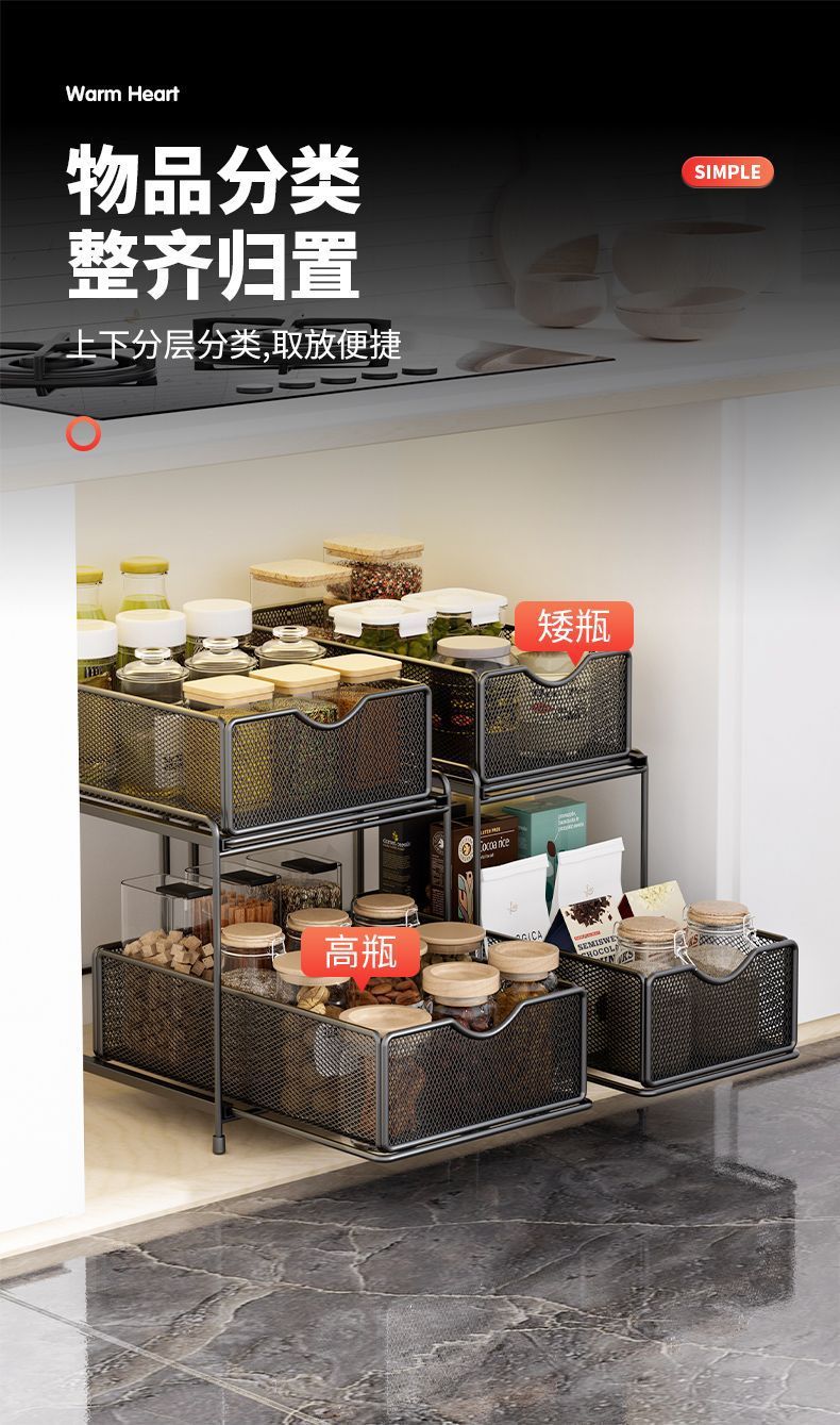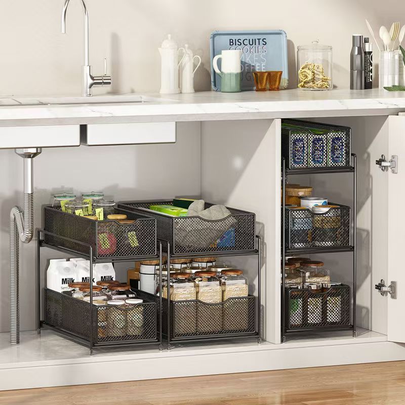 주방 보관 랙 캐비닛 푸시 풀 레이어드 로우 싱크 캐비닛 스토리지 랙 2 층 3 층 풀 바구니 양념 랙스토어 가기