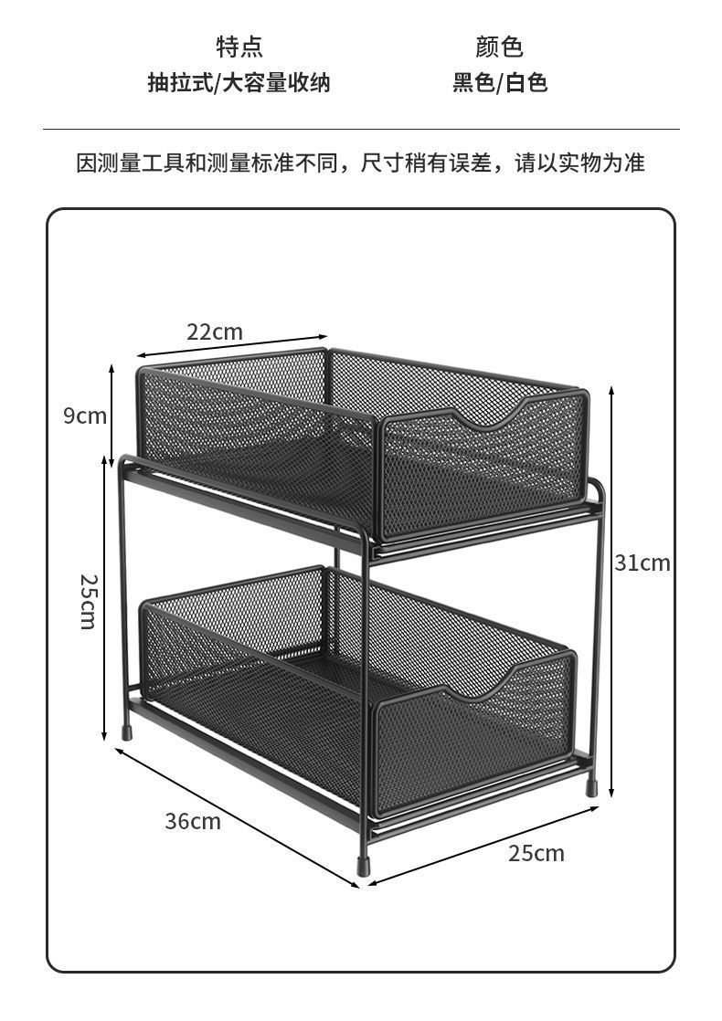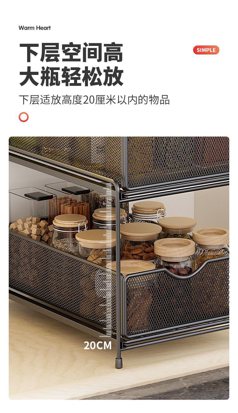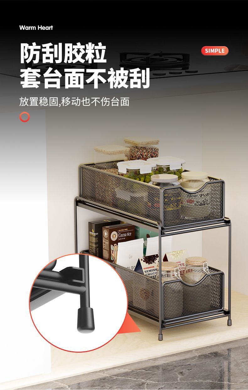 주방 보관 랙 캐비닛 푸시 풀 레이어드 로우 싱크 캐비닛 스토리지 랙 2 층 3 층 풀 바구니 양념 랙