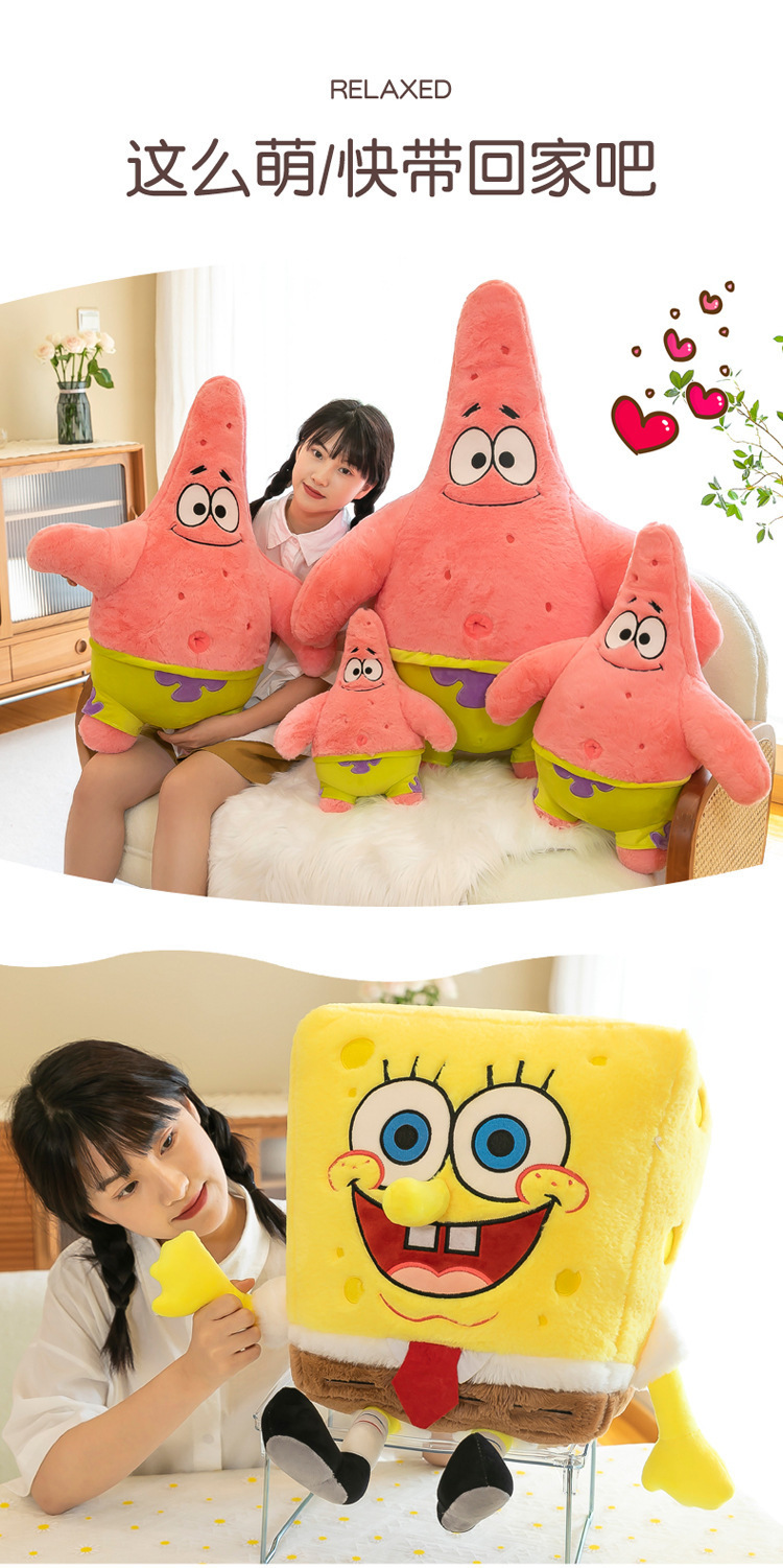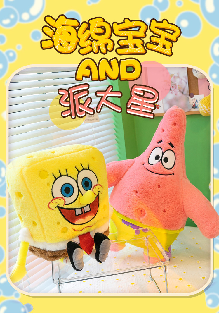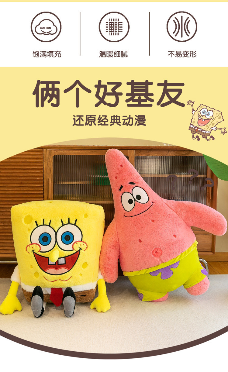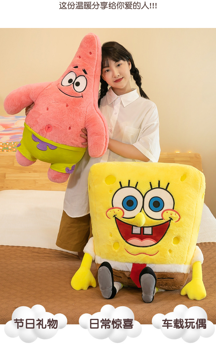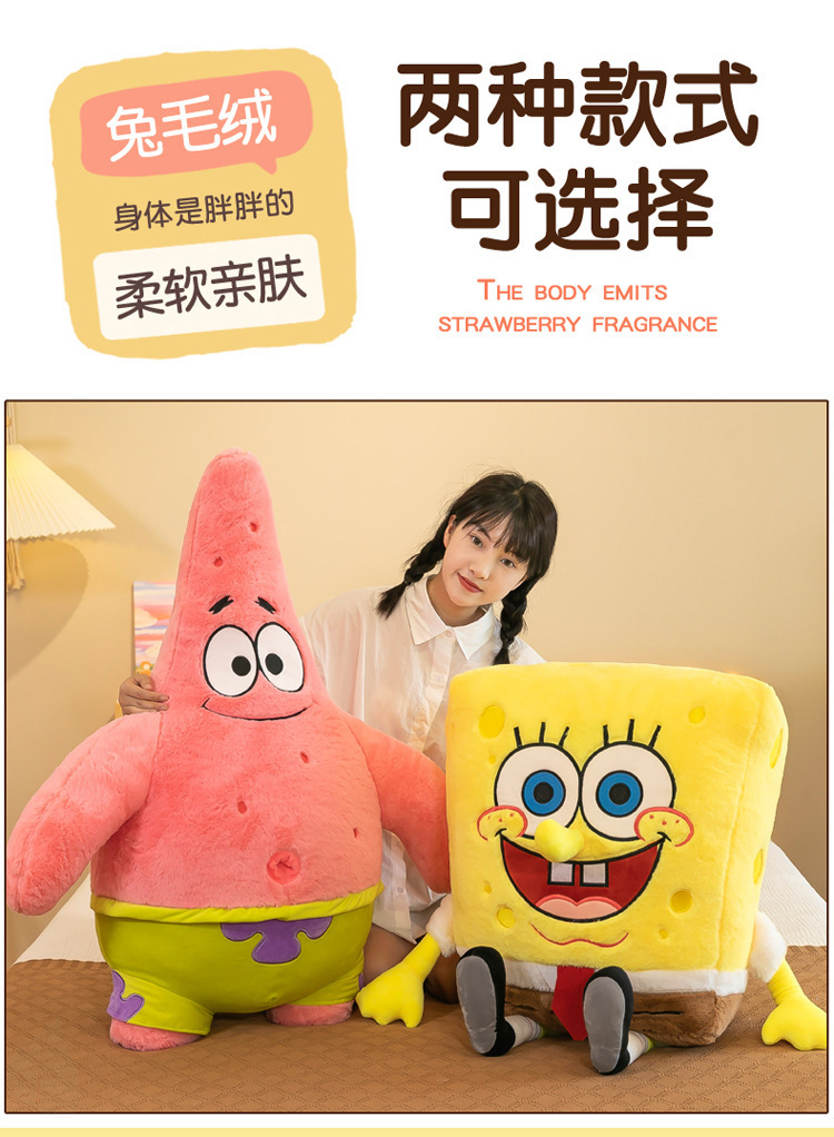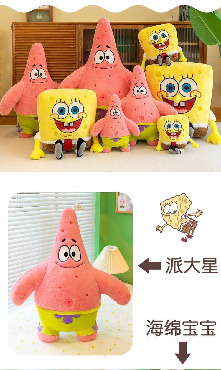 粉色海绵宝宝派大星公仔玩偶毛绒玩具床上布娃娃睡觉抱枕生日礼物