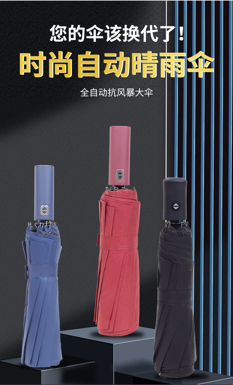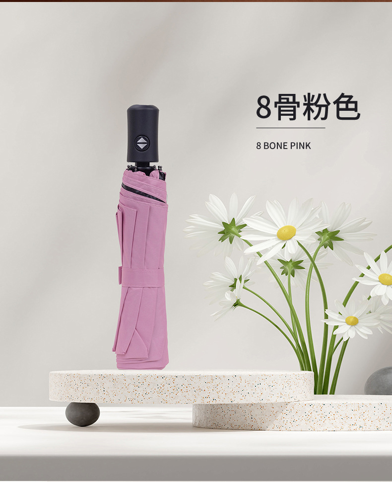 8 자동 우산 대형 태양 우산 태양 보호 햇빛 자외선 보호 블랙 고무 코팅 이중 사용 인쇄 가능한 로고