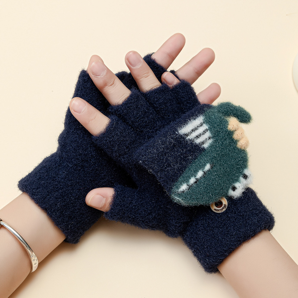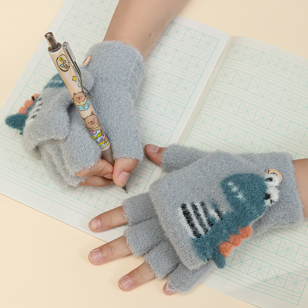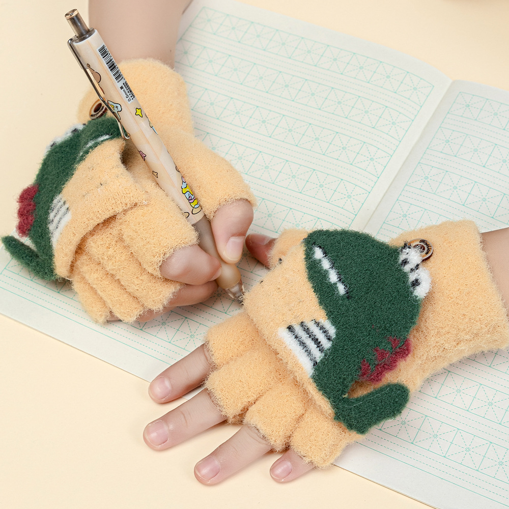 어린이 겨울 장갑 따뜻한 만화 공룡 반 손가락 오픈 손가락 플립 울 니트 남녀 학생 장갑 도매스토어 가기