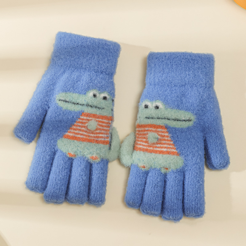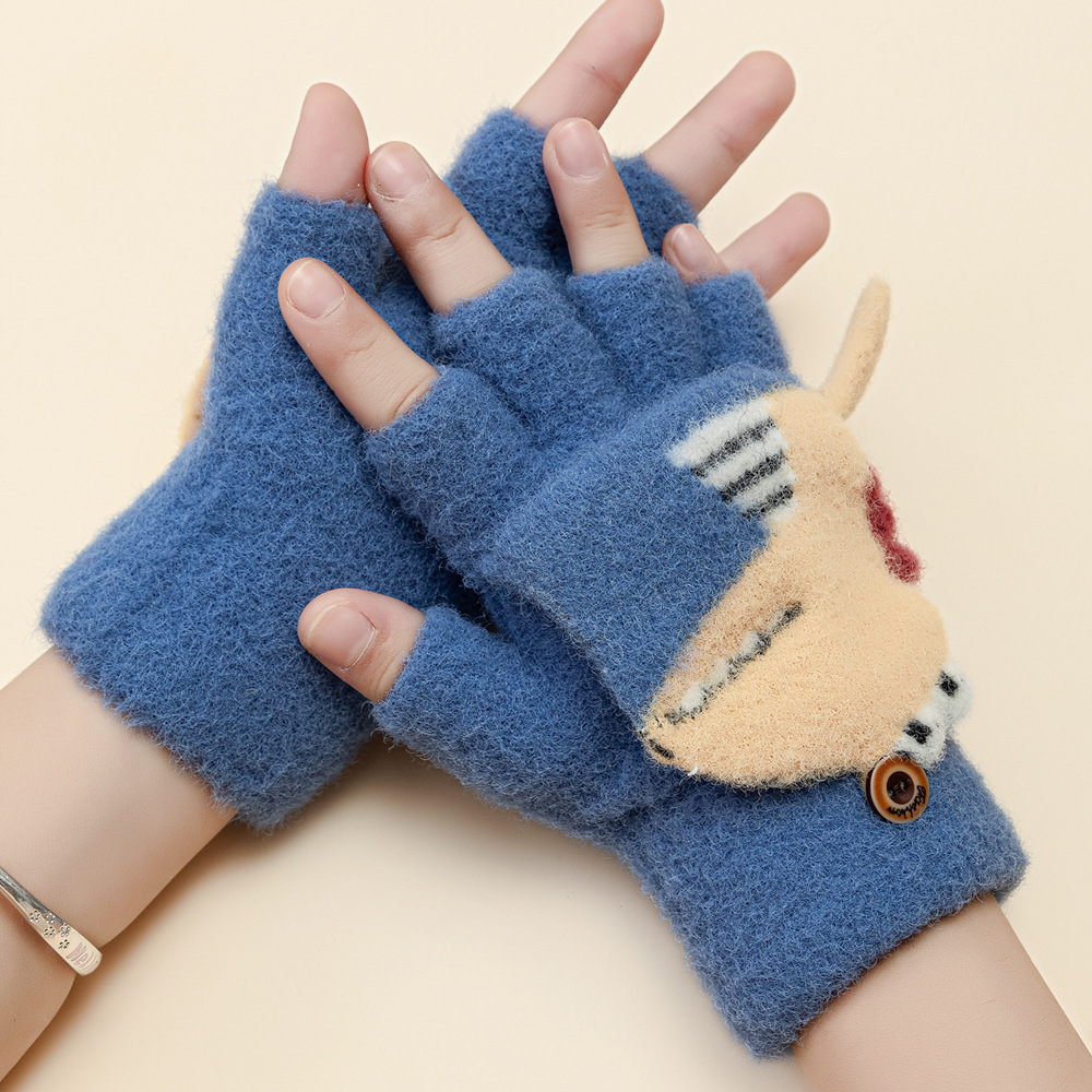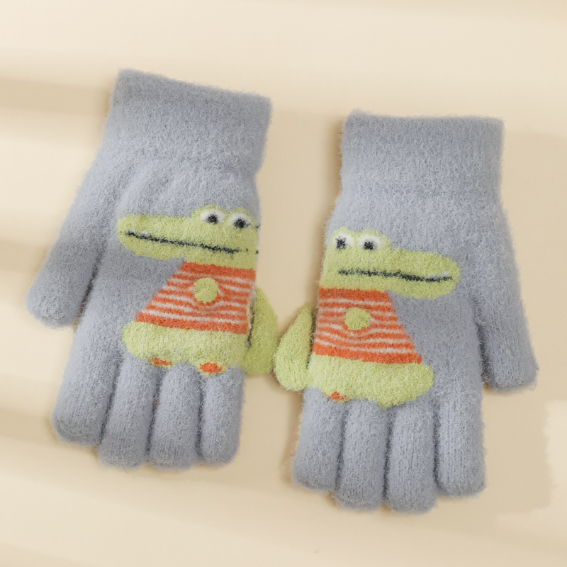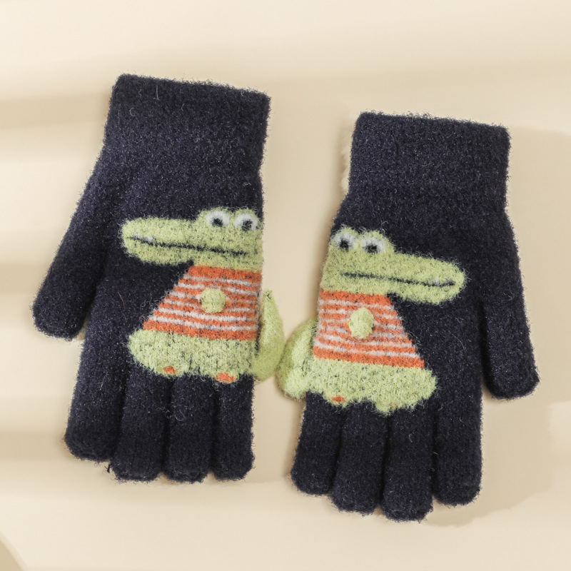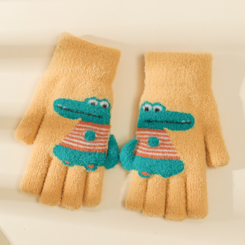 어린이 겨울 장갑 따뜻한 만화 공룡 반 손가락 오픈 손가락 플립 울 니트 남녀 학생 장갑 도매스토어 가기