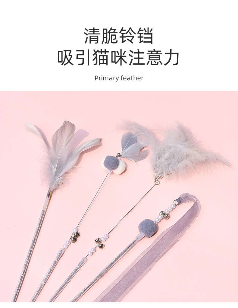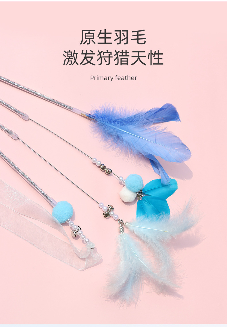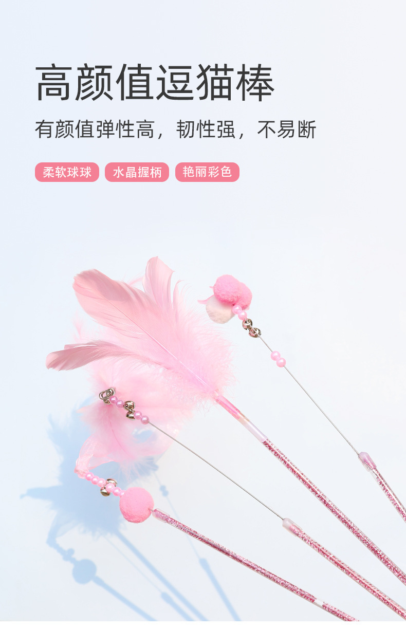 애완 동물 용품 고양이 장난감 고양이 테이 스틱 셀프 플레이 벨 요정 스틱 깃털 셀프 하이 바이트 저항하는 긴 막대 고양이 테이 스틱