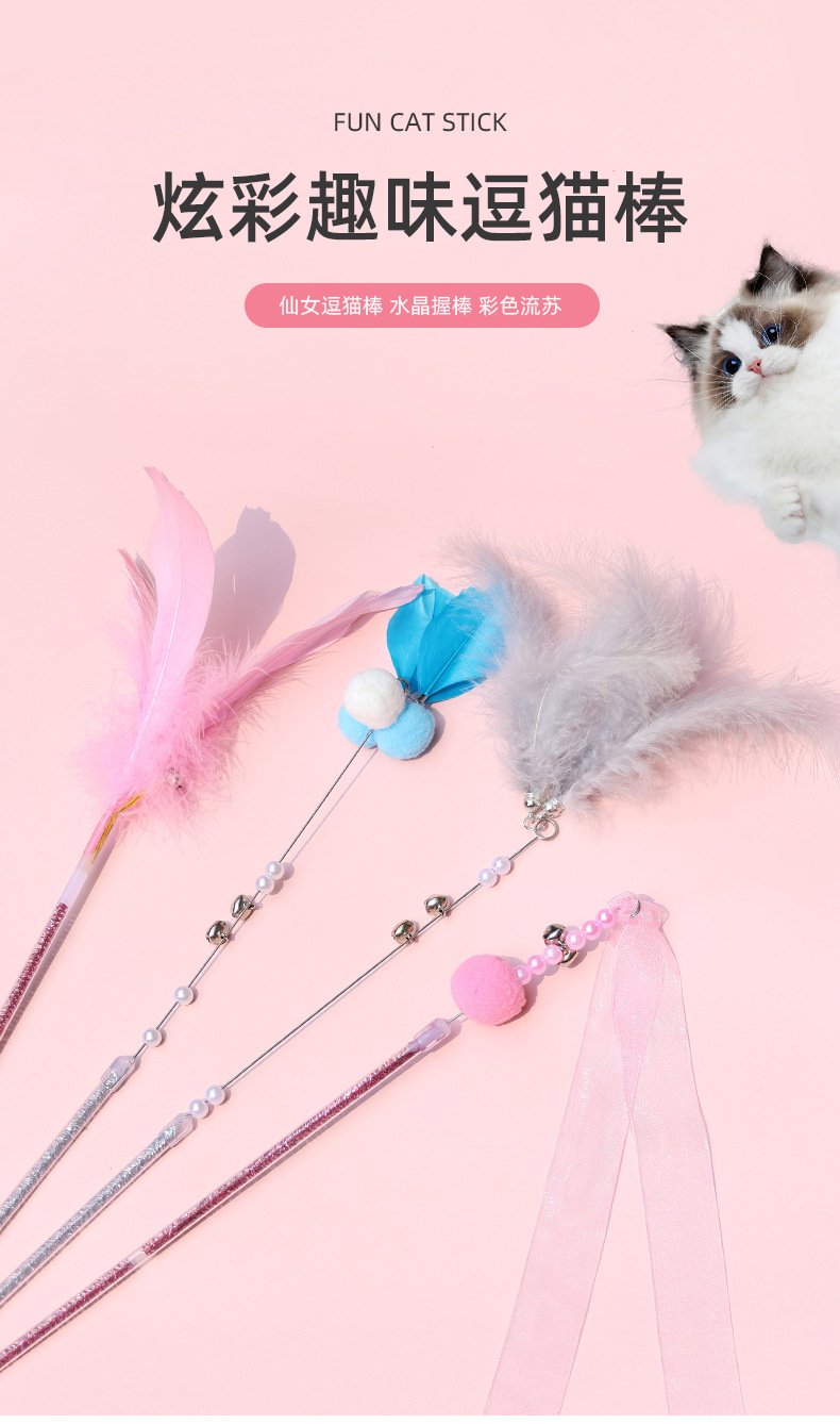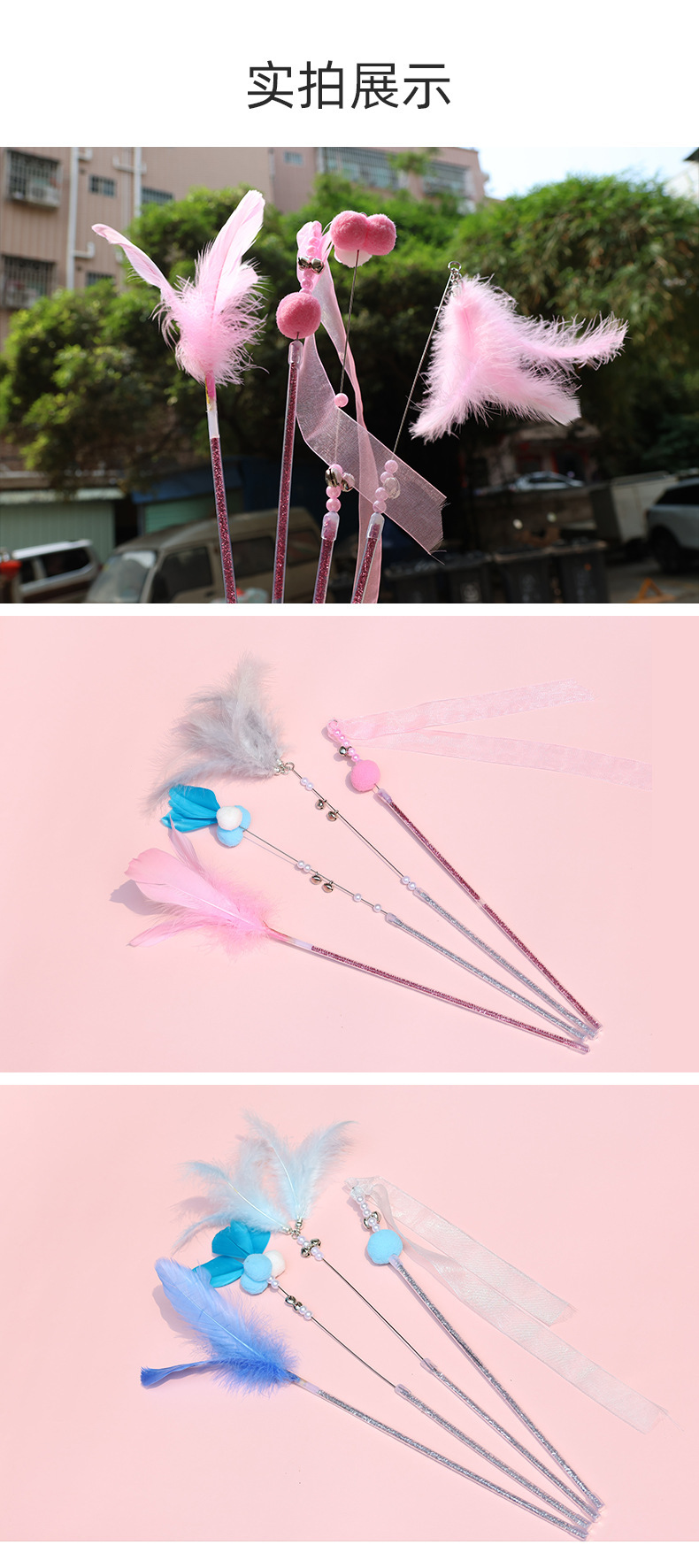 애완 동물 용품 고양이 장난감 고양이 테이 스틱 셀프 플레이 벨 요정 스틱 깃털 셀프 하이 바이트 저항하는 긴 막대 고양이 테이 스틱스토어 가기