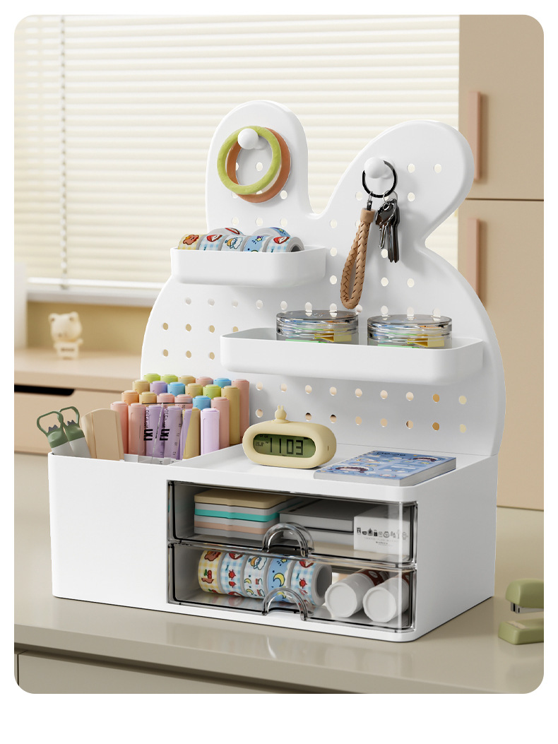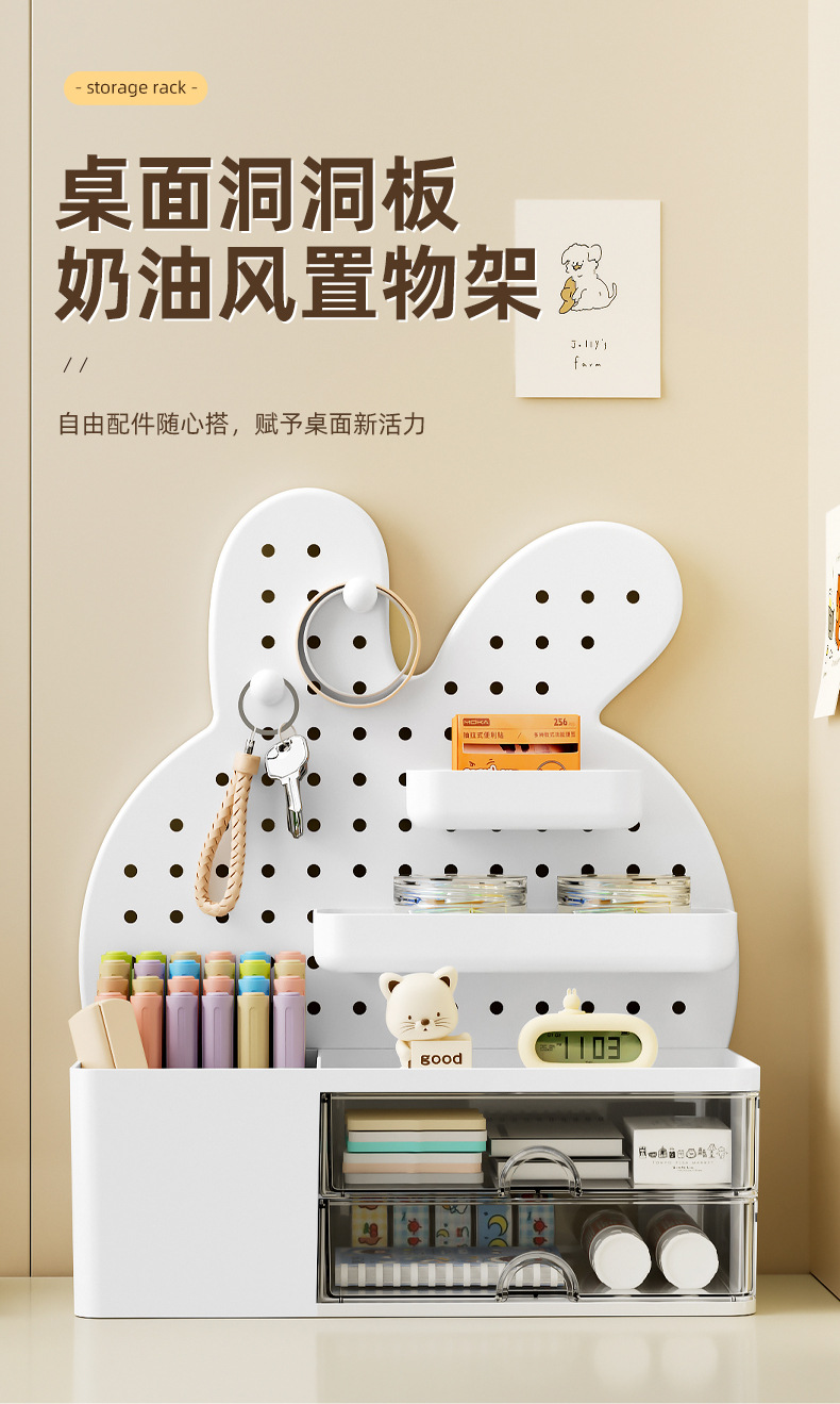 데스크탑 토끼 구멍 보드 저장 랙 스테이션 학생 기숙사 책상 펜 홀더 책상 서랍 보관 상자 배열 상자