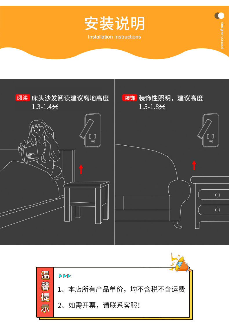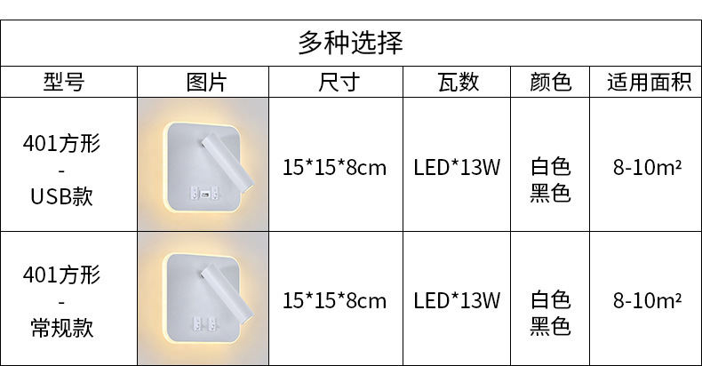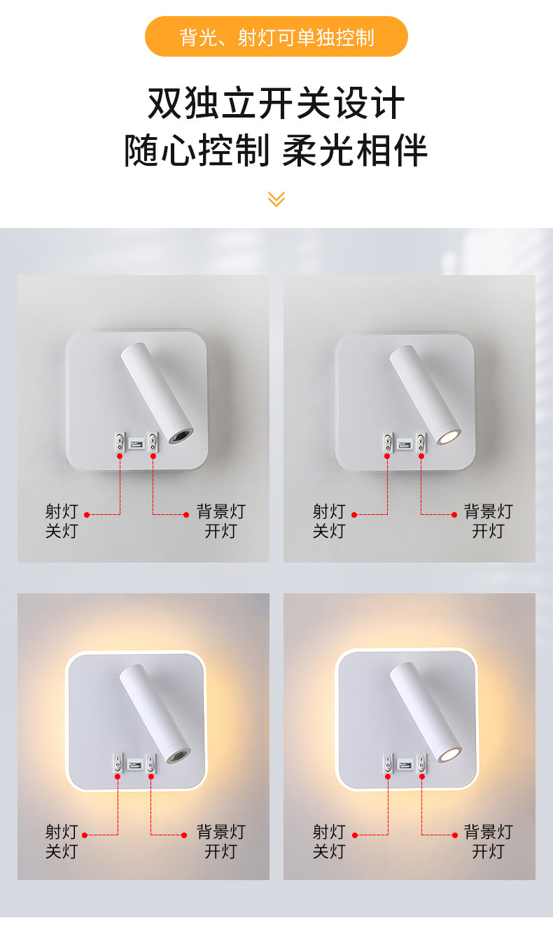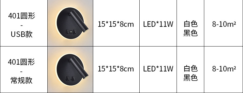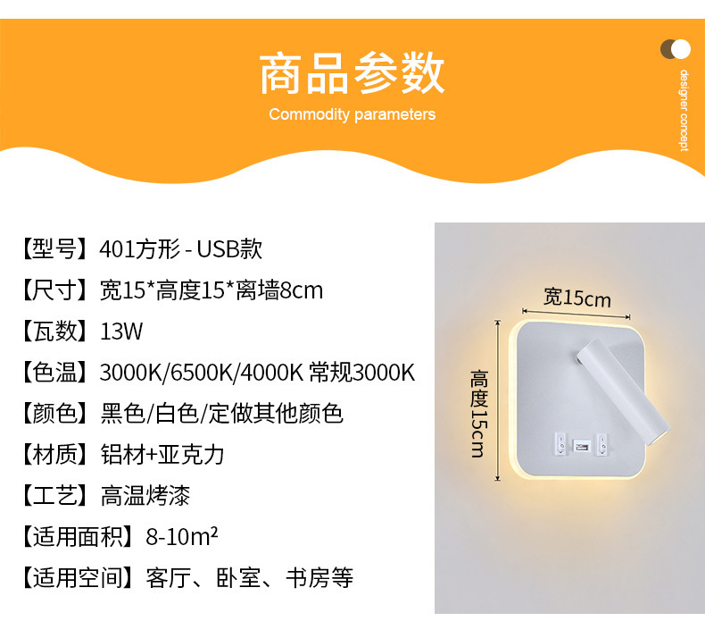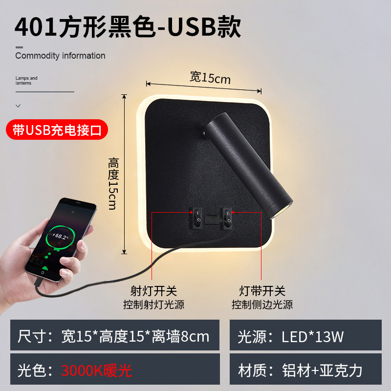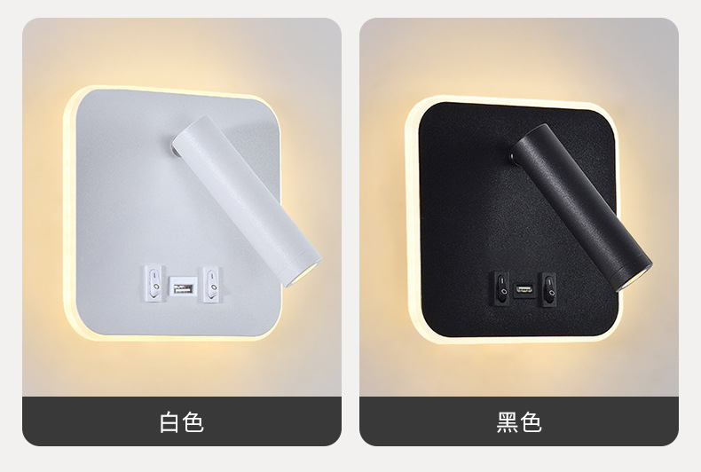 새로운 북유럽 스타일 간단한 호텔 실내 LED 독서 램프 알루미늄 복도 침실 USB 충전 침실 벽 램프