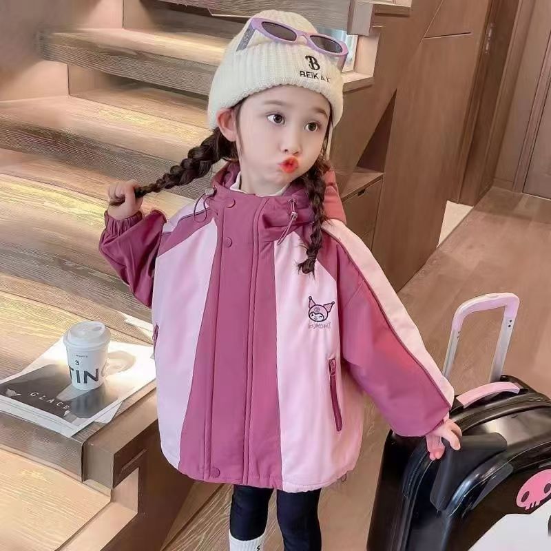 가을과 겨울 여성 아기 캐주얼 웨스턴 스타일 만화 후드 컬러 기모 코튼 아웃 방풍 재킷