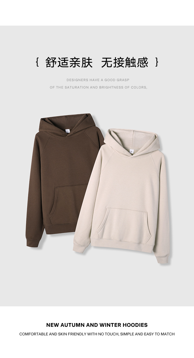 360g 헤비급 원피스 벨벳 기모 패딩 스웨터 남성 유럽과 미국의 후드 라글란 단색 커플 후드 세트 코트