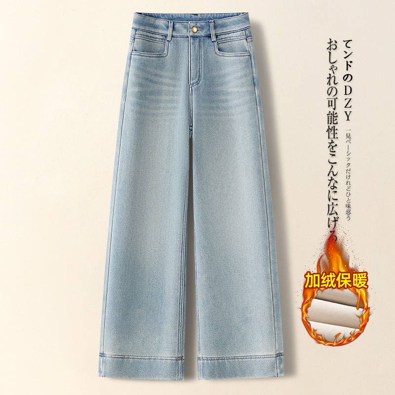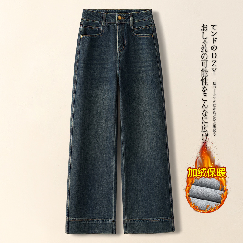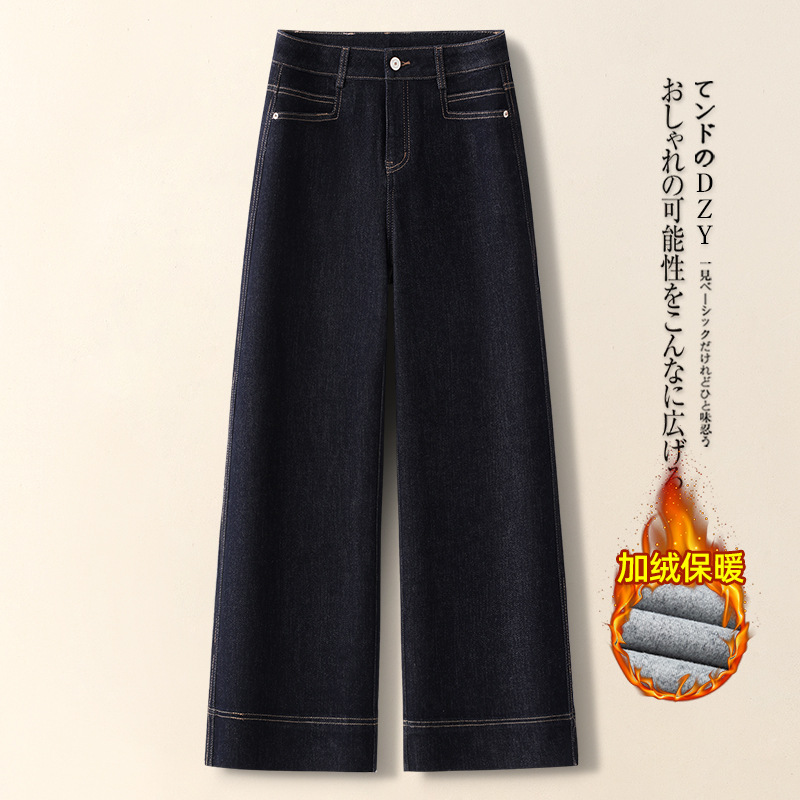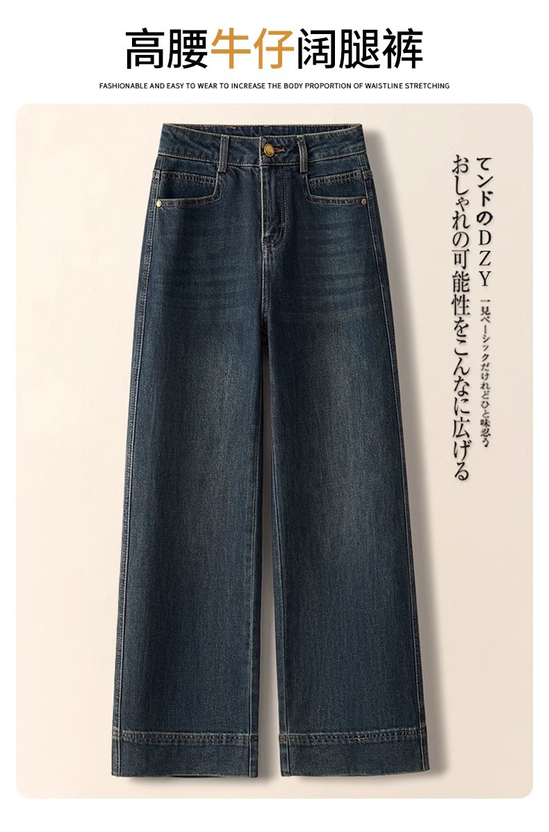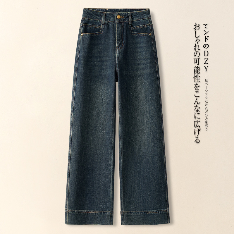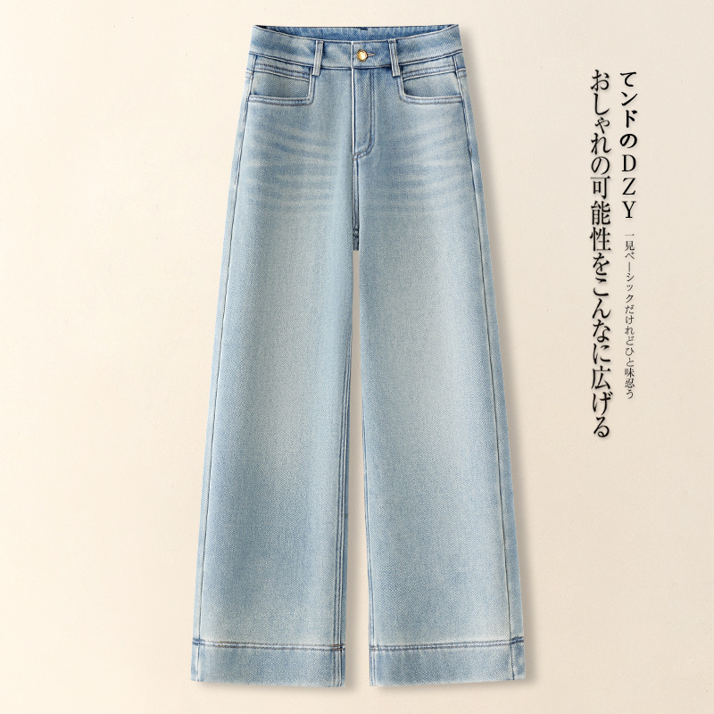 키 작은 여성용 와이드 레그 데님 팬츠, 가을 겨울 2025, 하이웨이스트, 루즈핏, 스트레이트 팬츠, 캐주얼하고 다용도스토어 가기