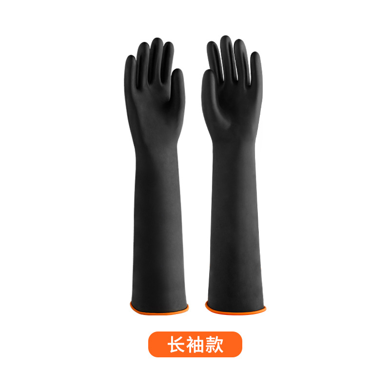 공장 도매 55cm 길쭉한 산 및 알칼리 저항성 라텍스 장갑 안티 화학 농축 내마모성 매끄러운 고무 검은 장갑스토어 가기