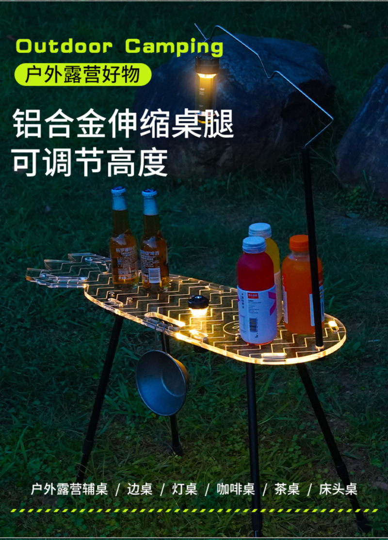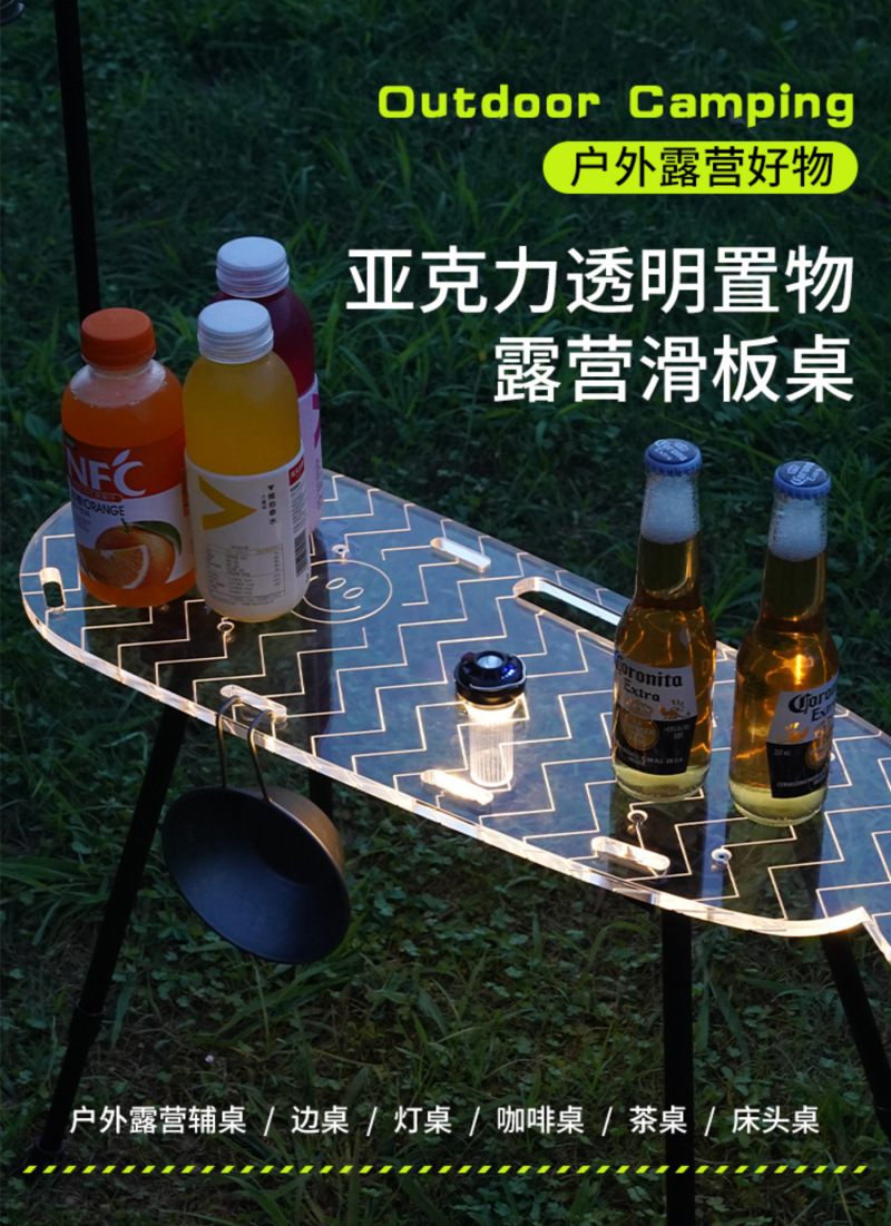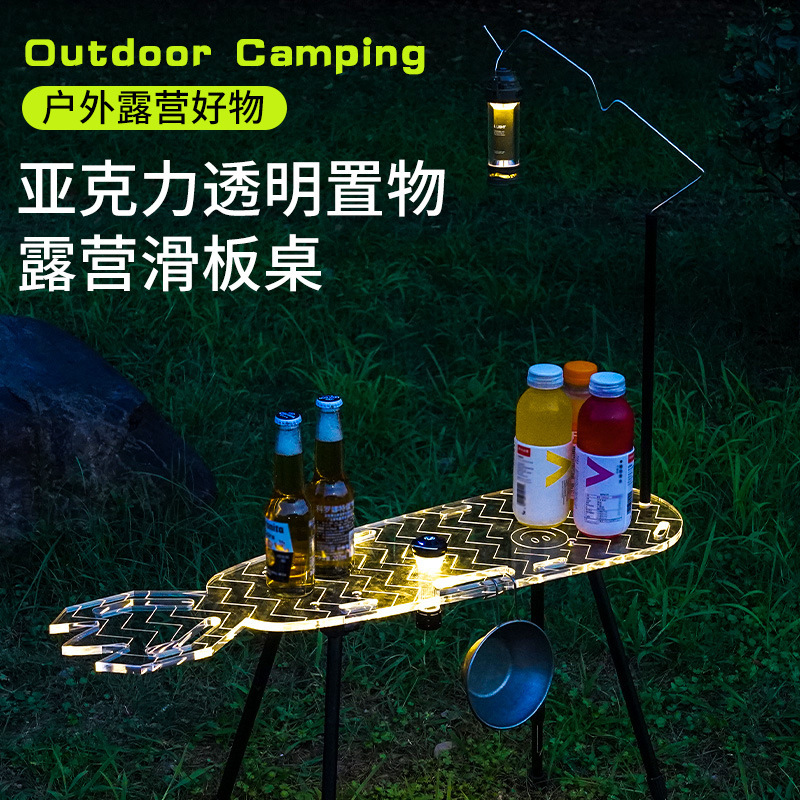 새로운 캠핑 테이블 패션 아크릴 테이블 휴대용 캠핑 다기능 단일 접이식 테이블 스케이트 보드 테이블 비행 물고기 테이블스토어 가기