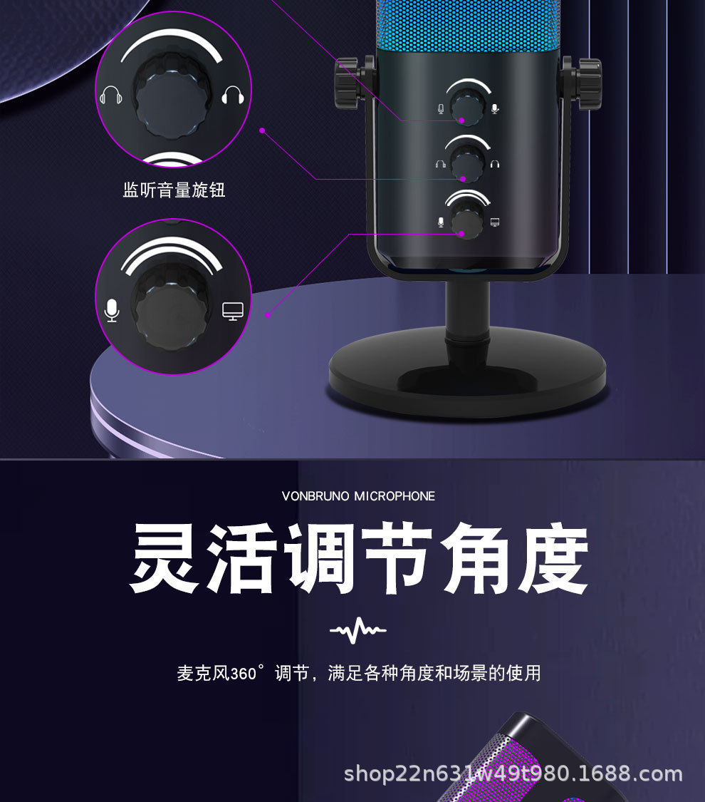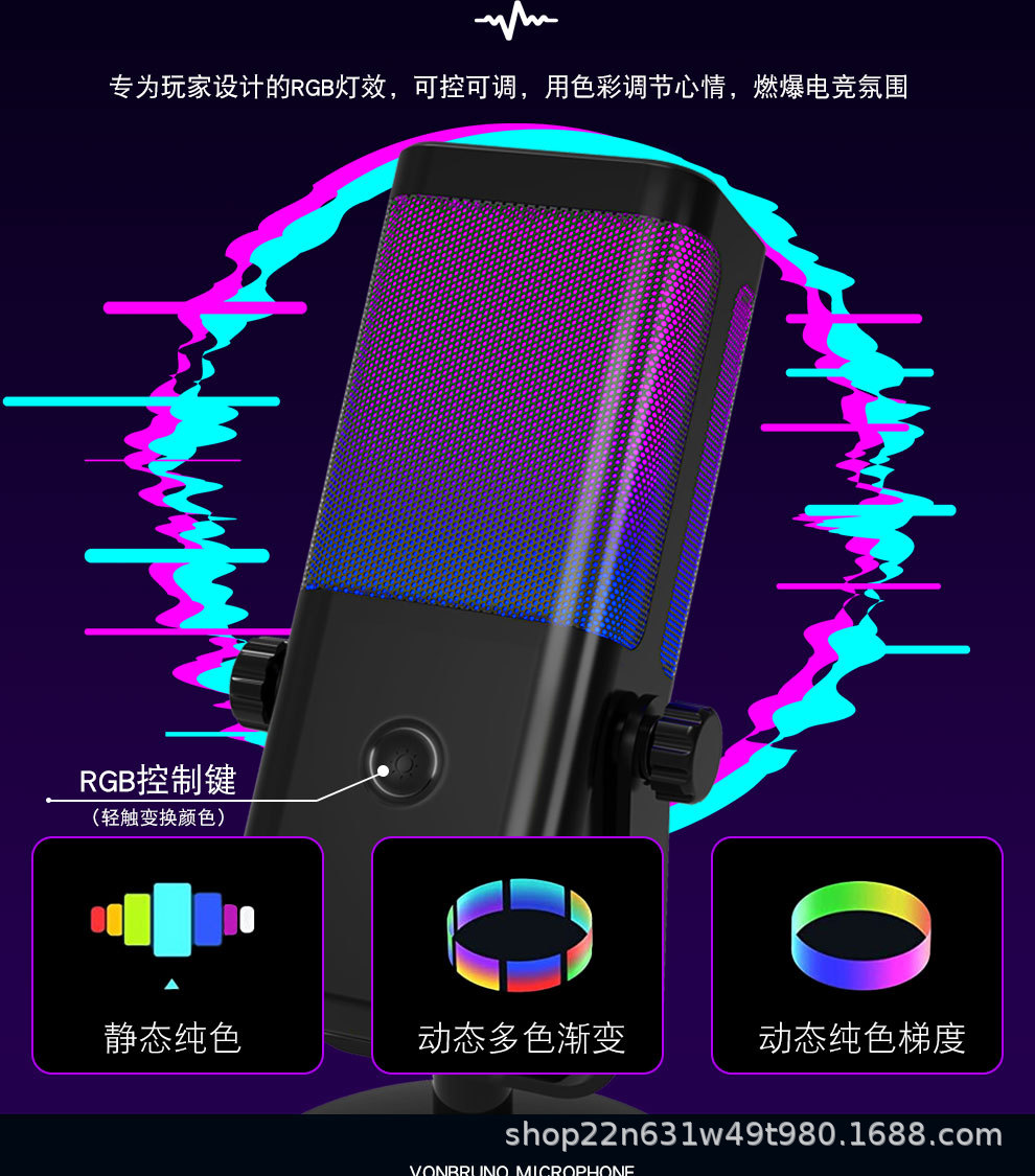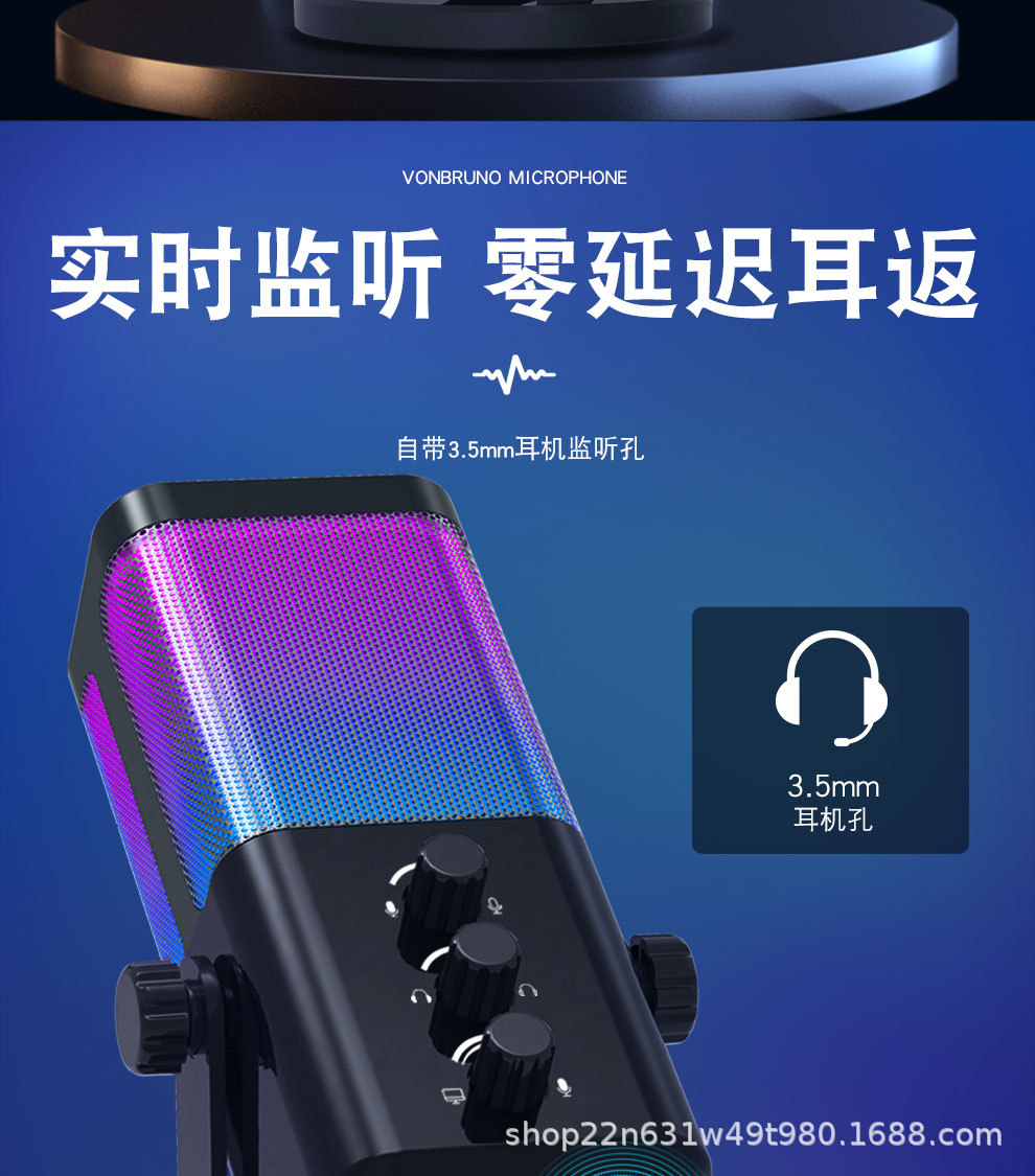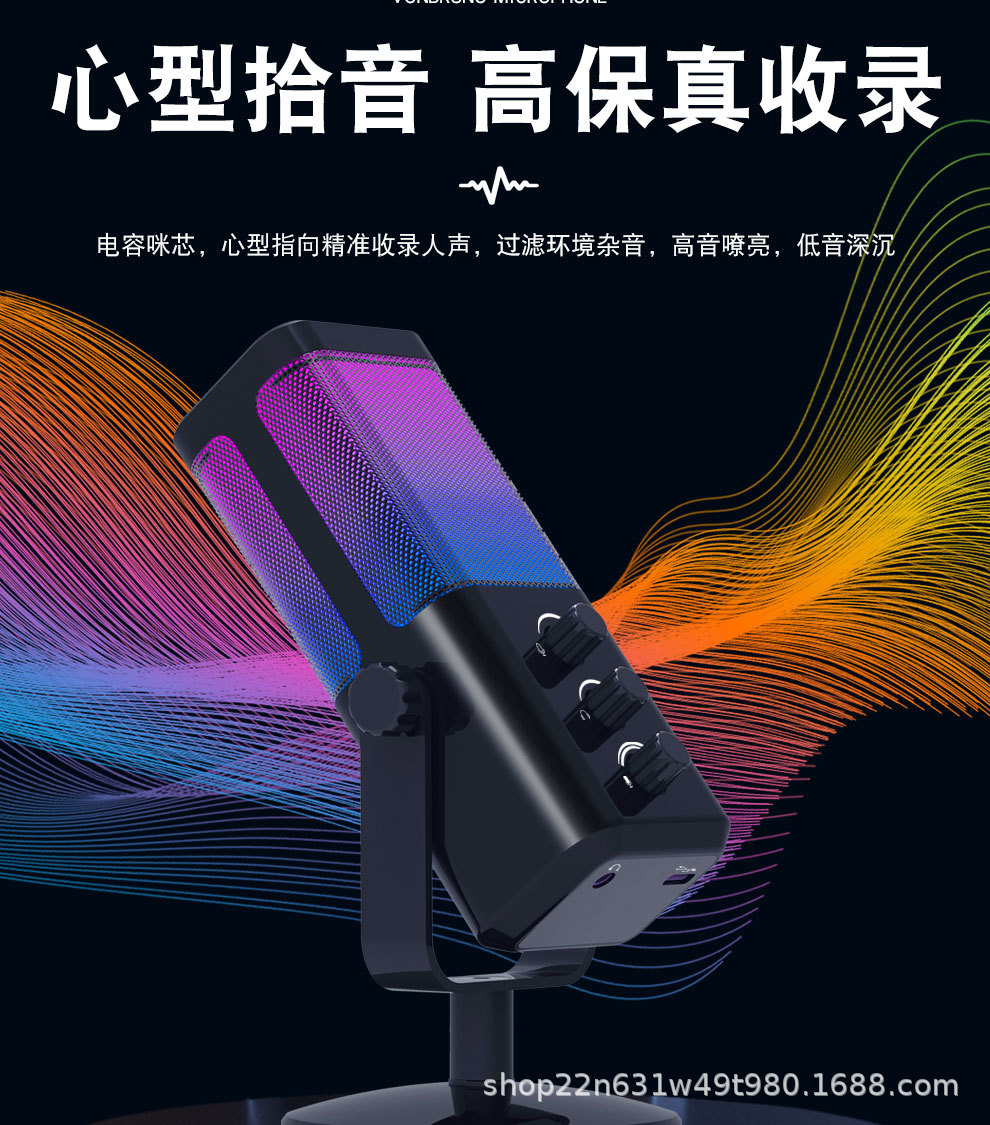 개인 모델 국경 RGB 마이크 게임 라이브 컴퓨터 오픈 블랙 음성 특별 소음 감소 데스크톱 마이크 컨퍼런스