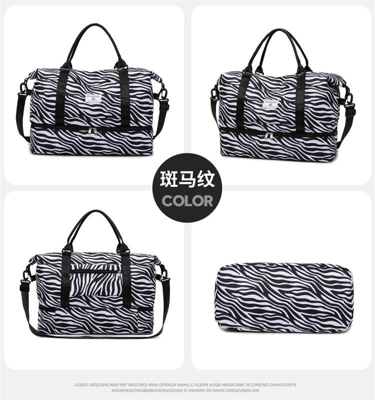 패션 레오파드 무늬 여행 가방 여성의 대용량 경량 별도의 신발 빈 수하물 가방 건조하고 젖은 별도의 스포츠 피트니스 가방