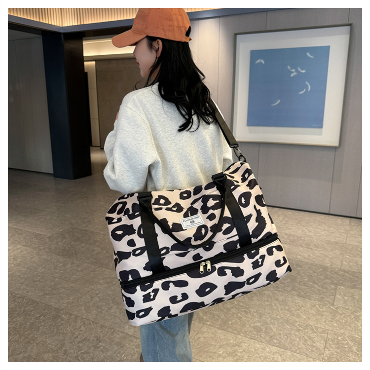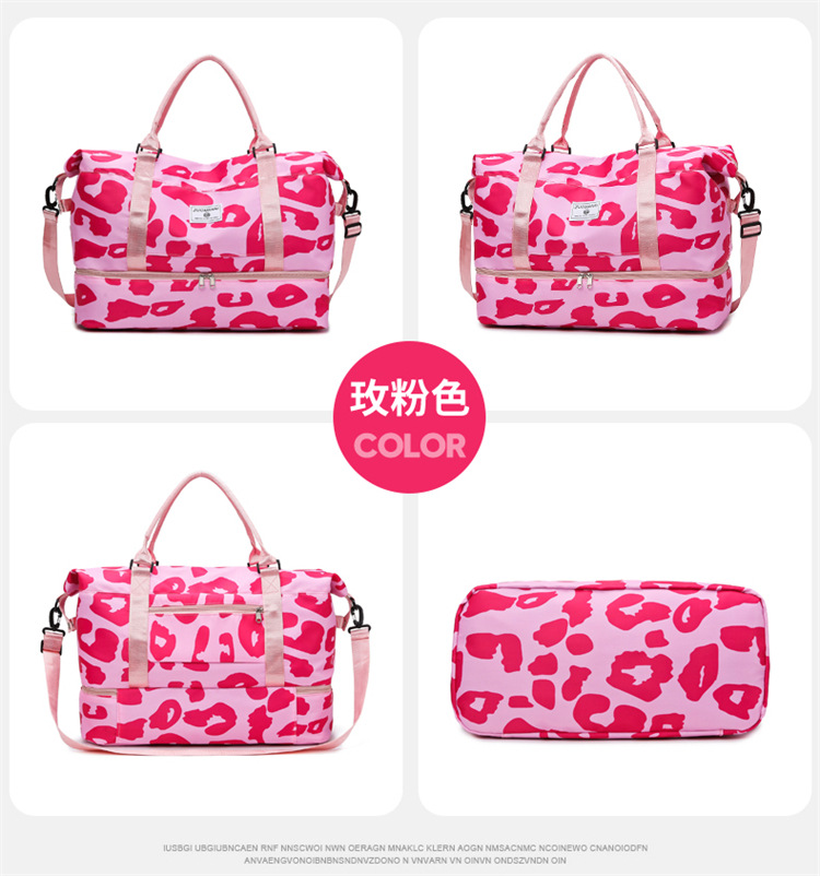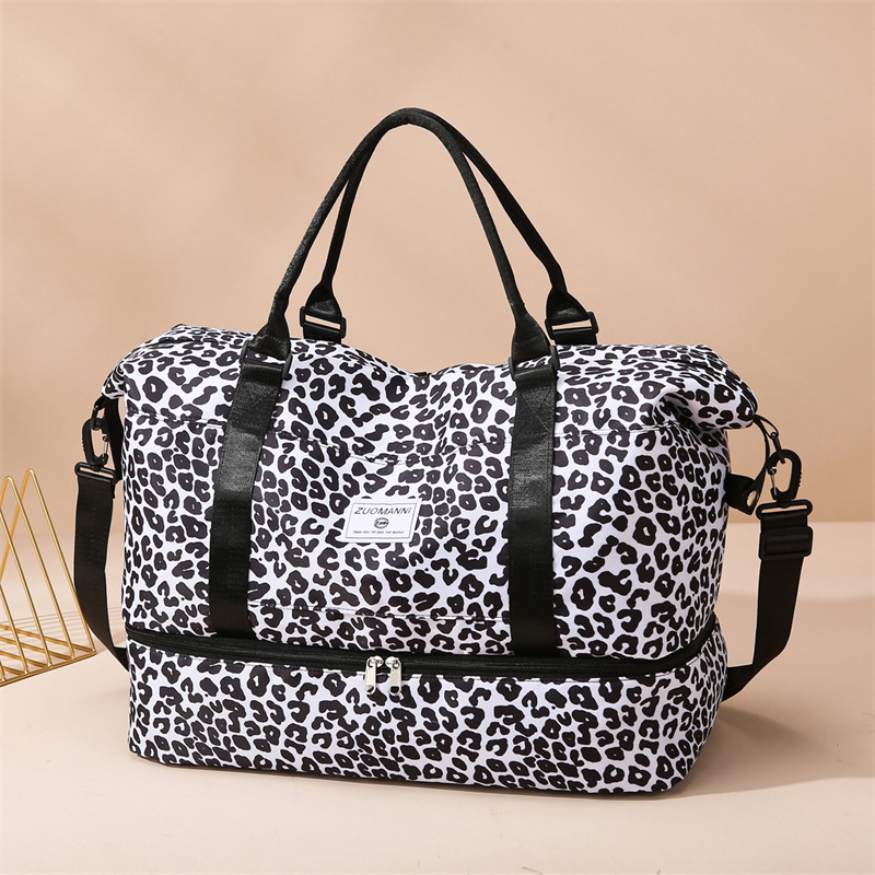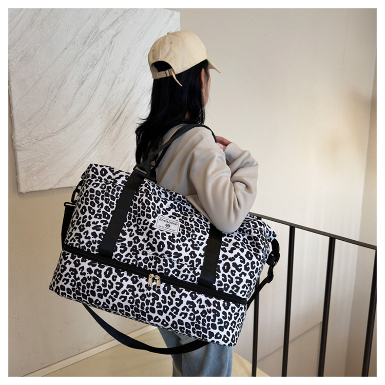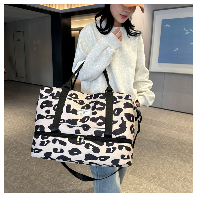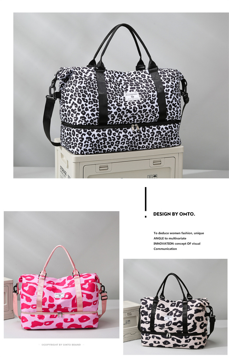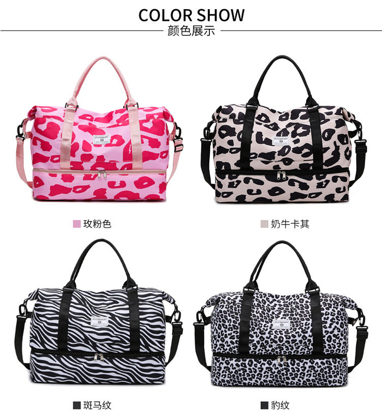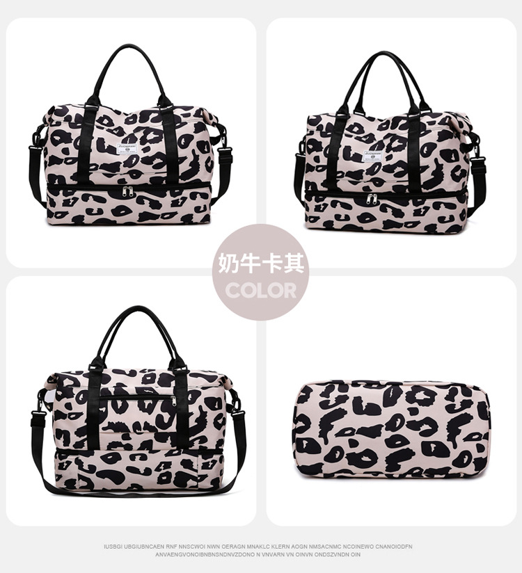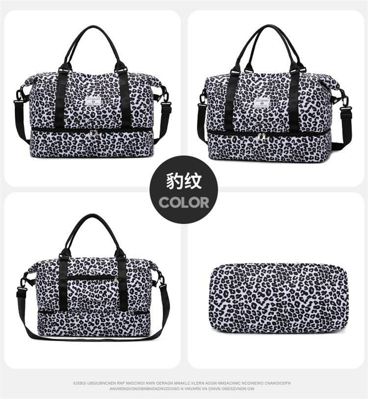 패션 레오파드 무늬 여행 가방 여성의 대용량 경량 별도의 신발 빈 수하물 가방 건조하고 젖은 별도의 스포츠 피트니스 가방스토어 가기