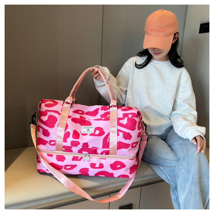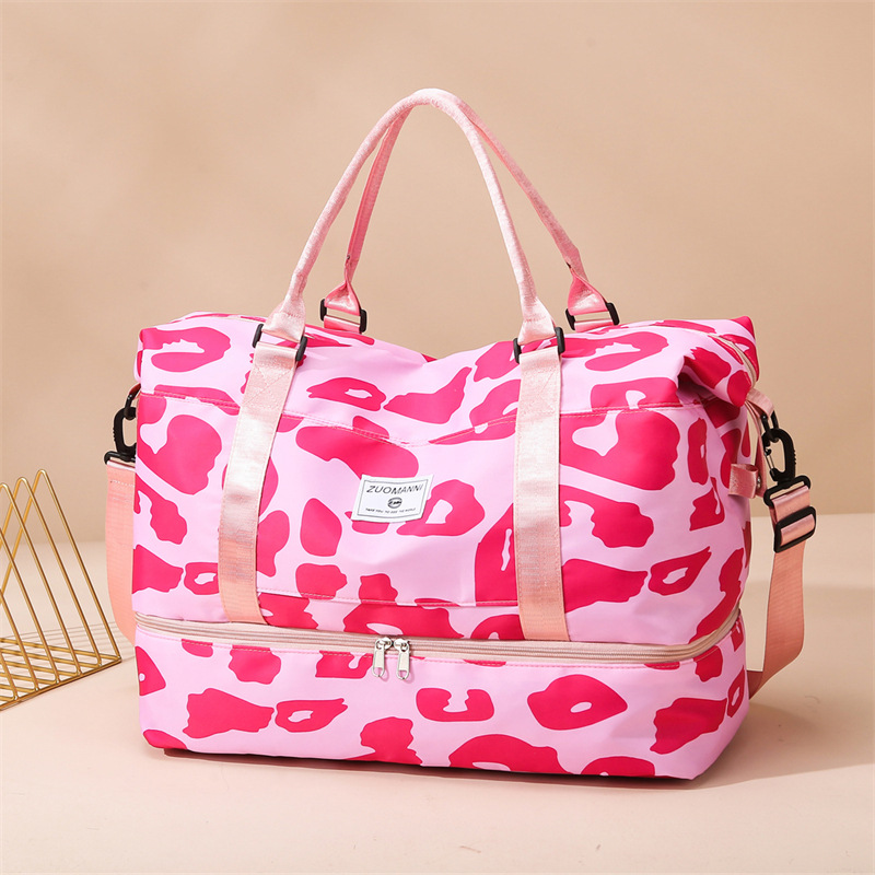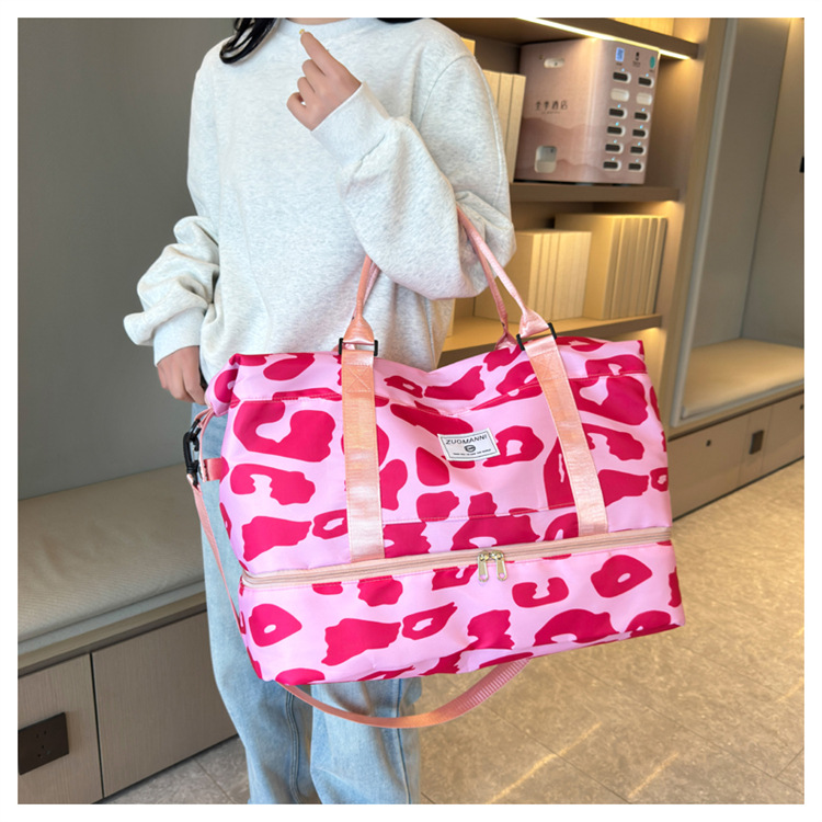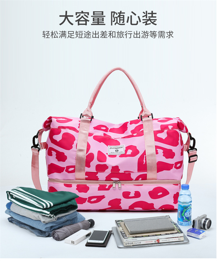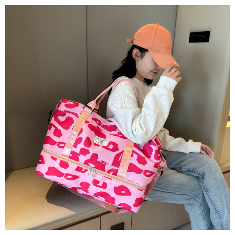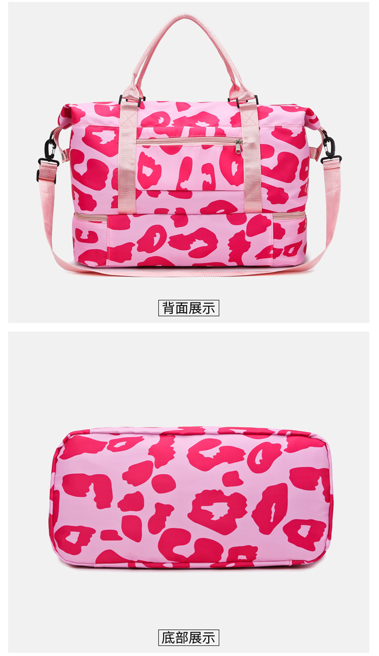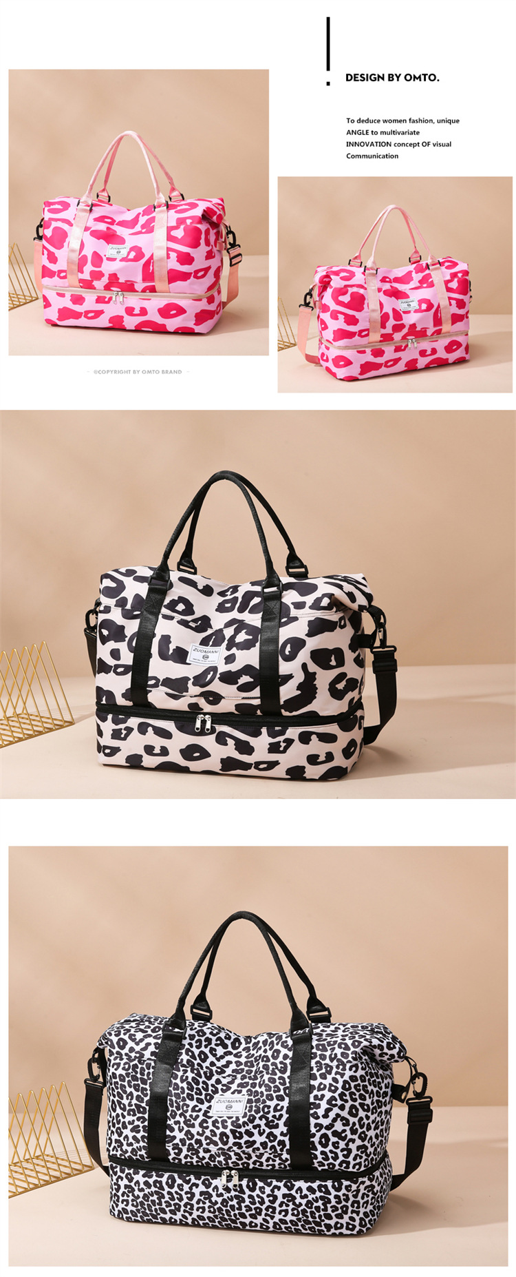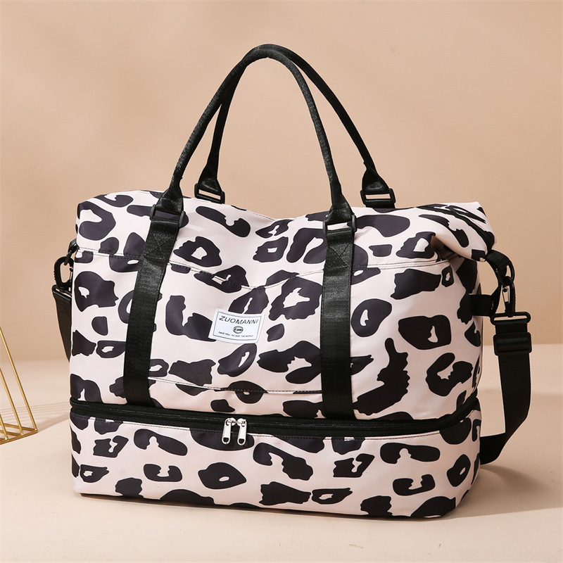 패션 레오파드 무늬 여행 가방 여성의 대용량 경량 별도의 신발 빈 수하물 가방 건조하고 젖은 별도의 스포츠 피트니스 가방스토어 가기