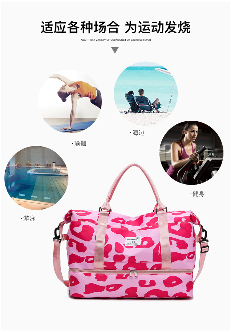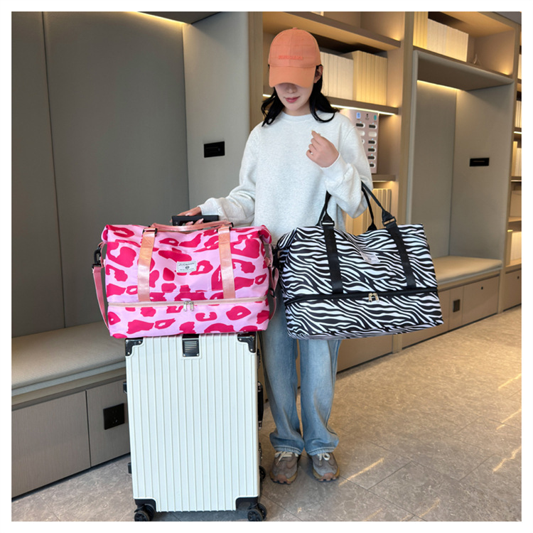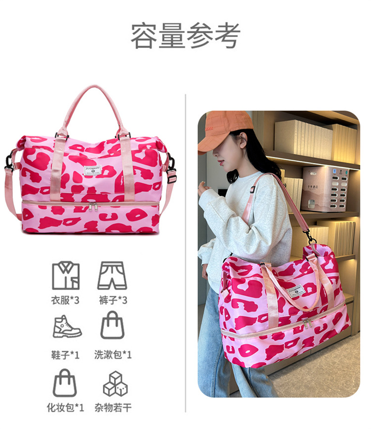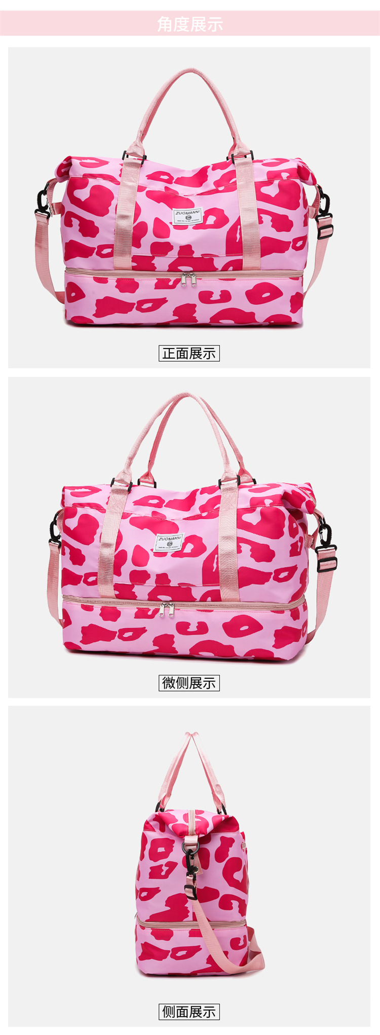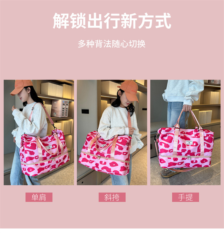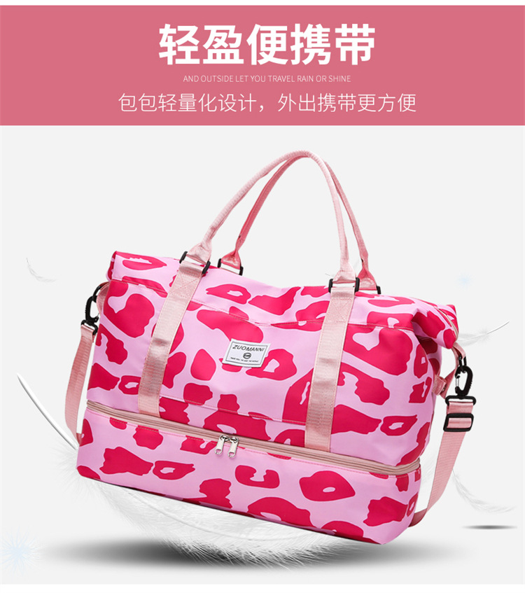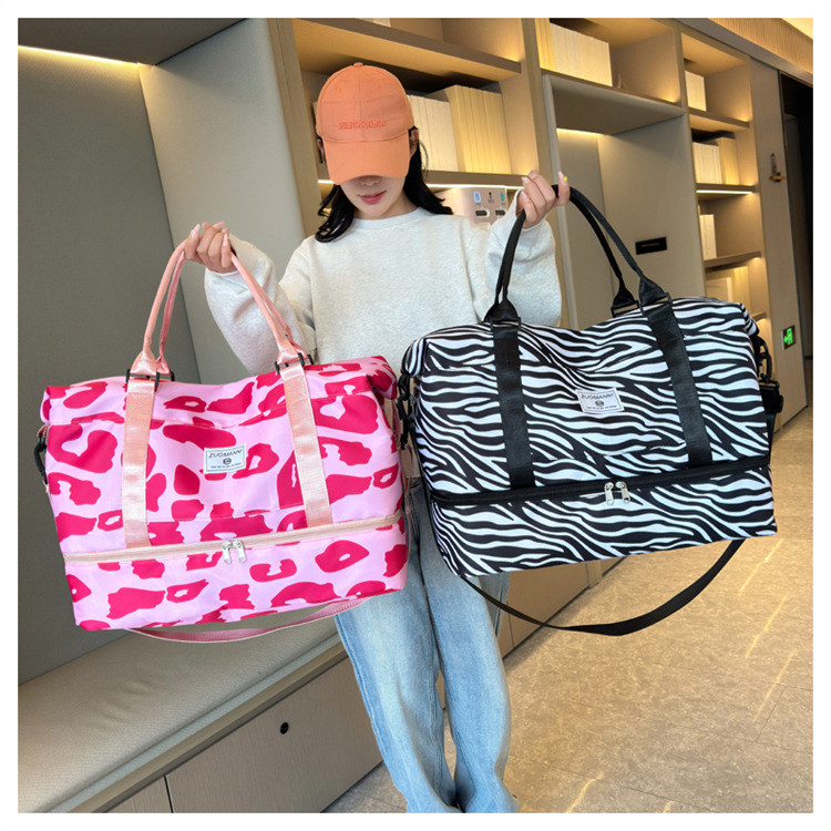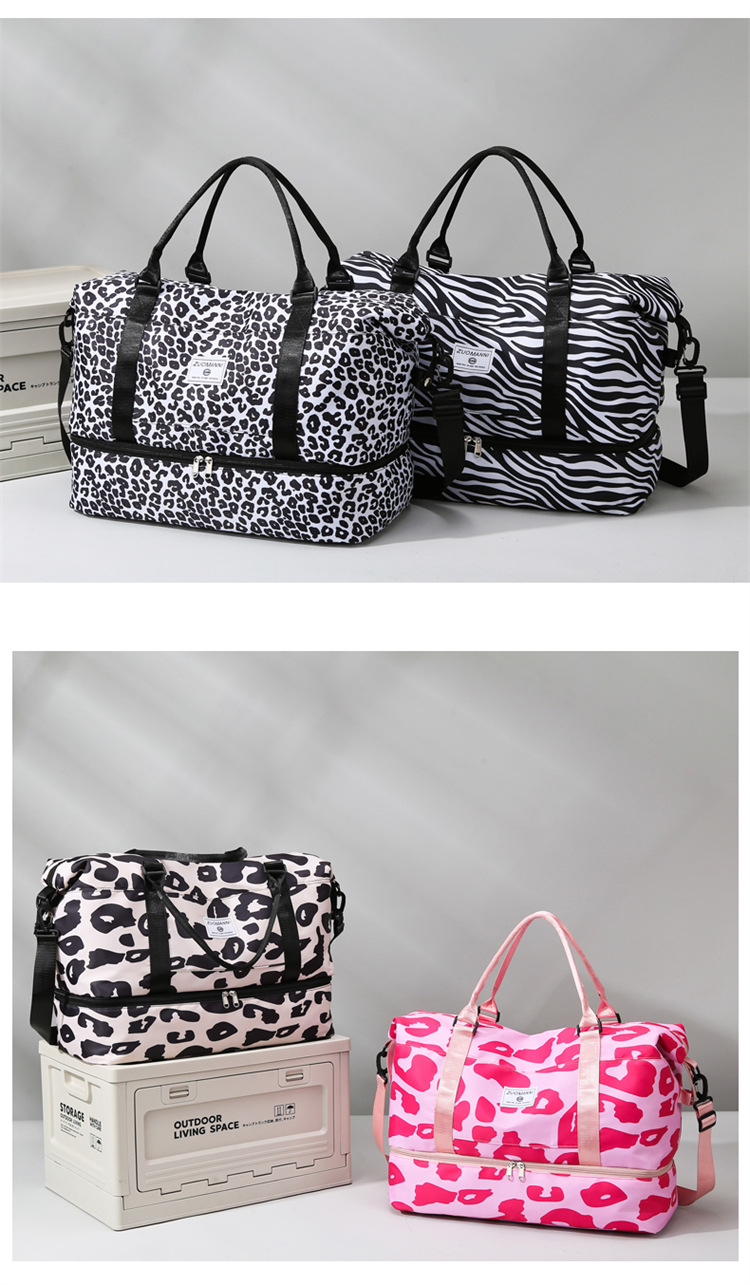 패션 레오파드 무늬 여행 가방 여성의 대용량 경량 별도의 신발 빈 수하물 가방 건조하고 젖은 별도의 스포츠 피트니스 가방스토어 가기