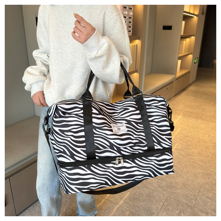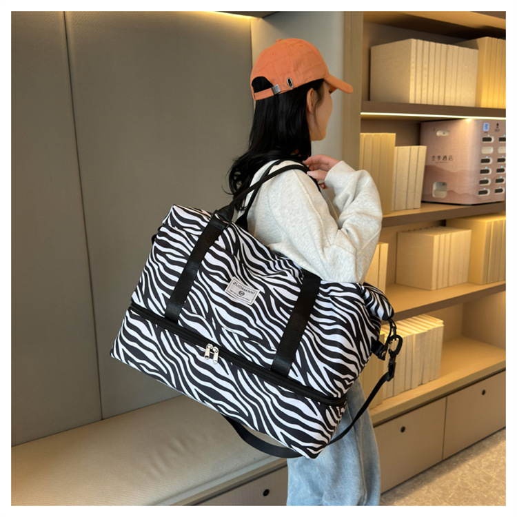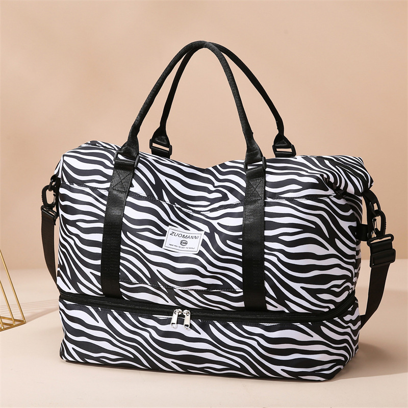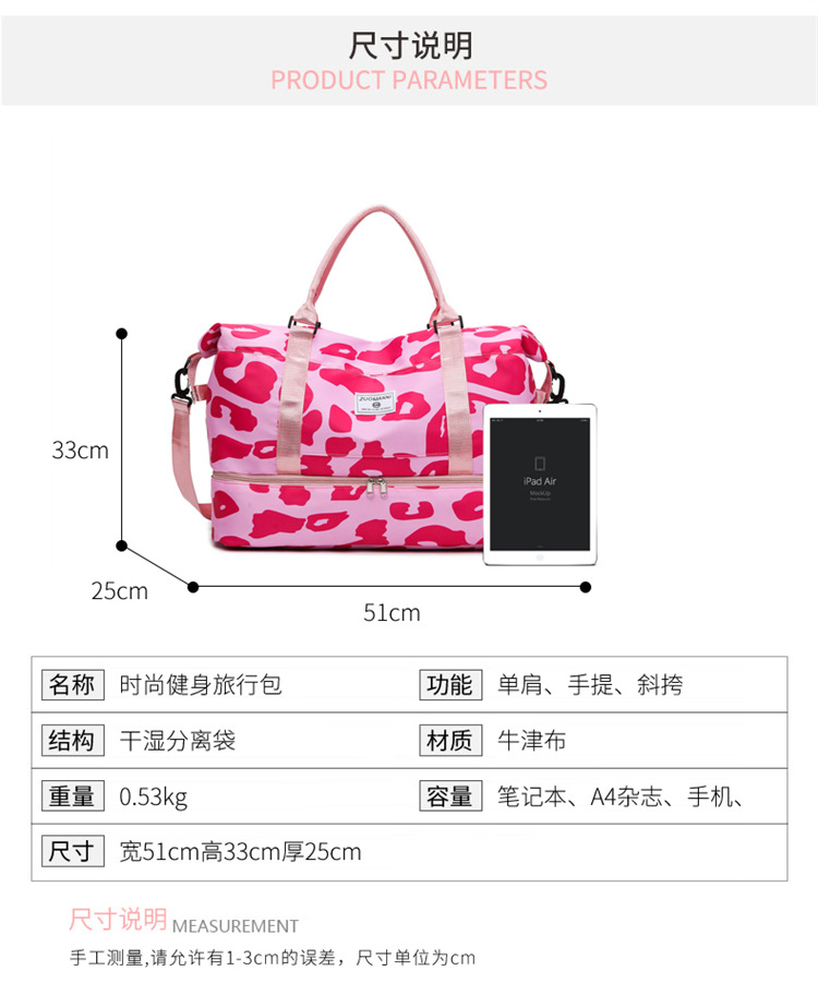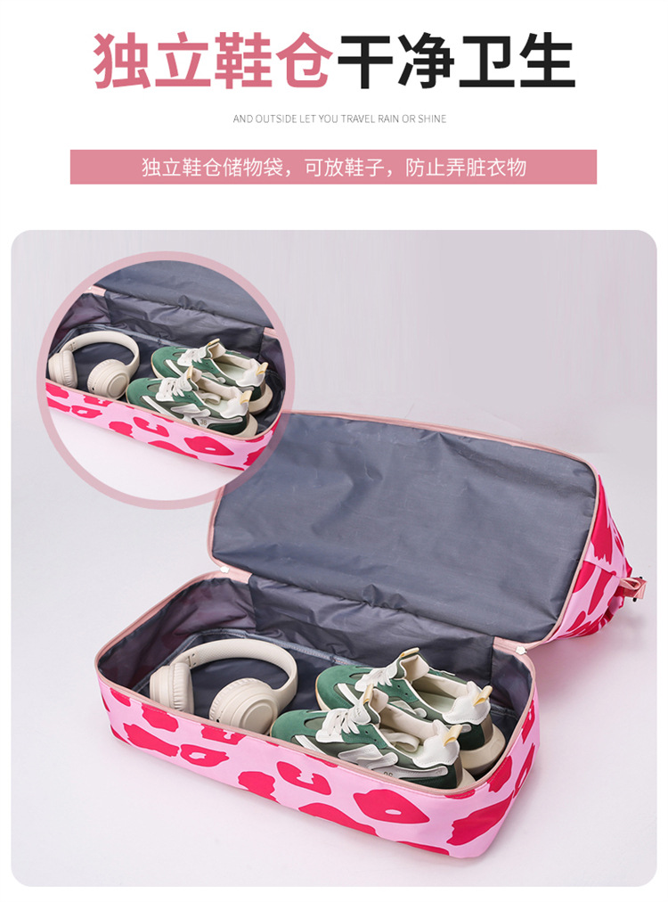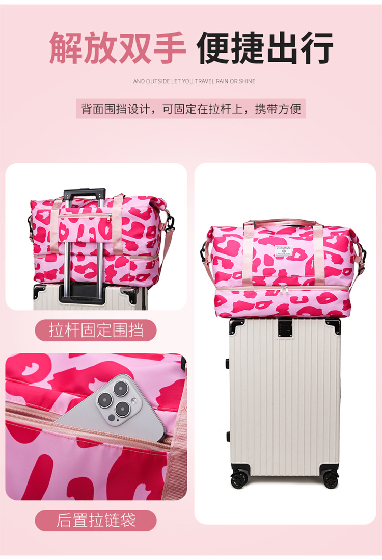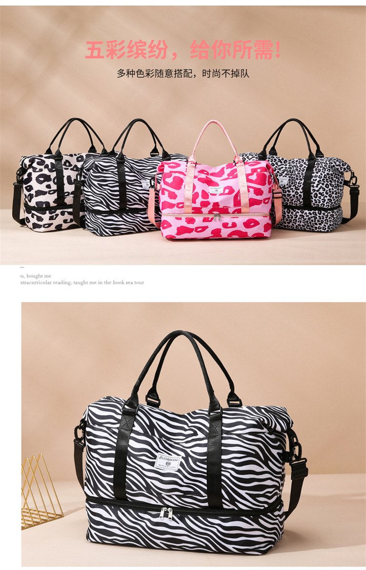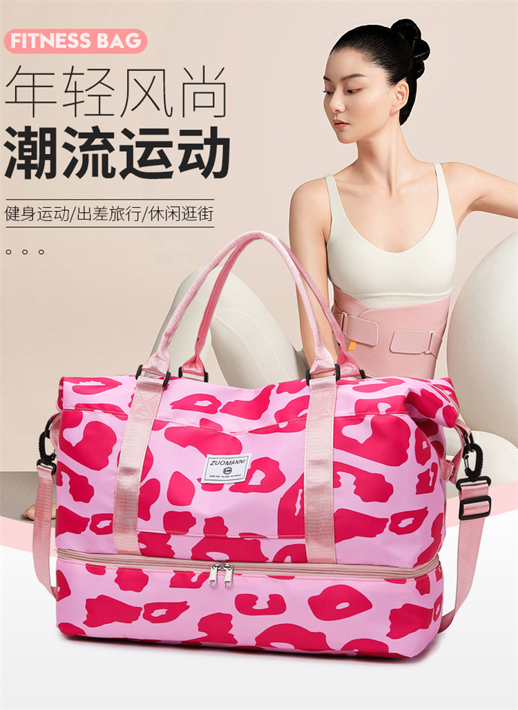 패션 레오파드 무늬 여행 가방 여성의 대용량 경량 별도의 신발 빈 수하물 가방 건조하고 젖은 별도의 스포츠 피트니스 가방스토어 가기