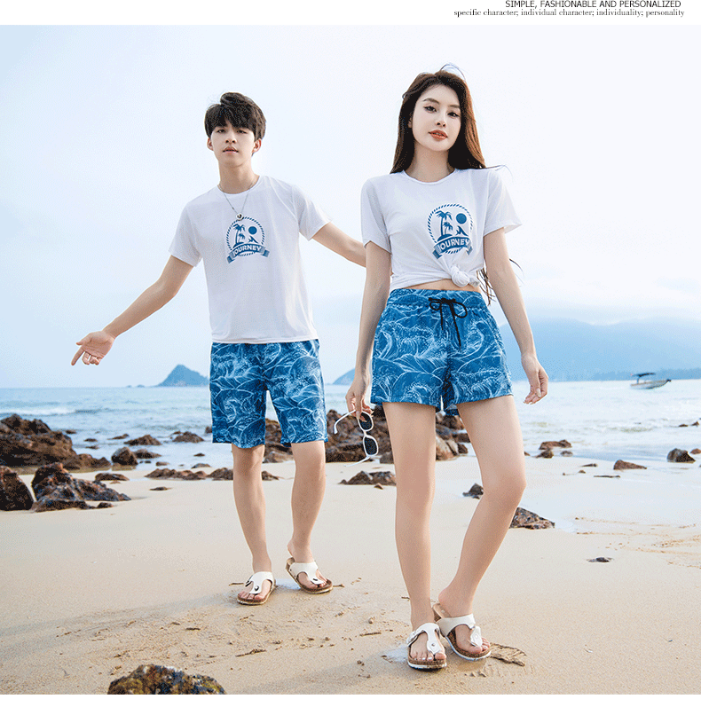 재고 커플의 빠른 건조 루즈 비치 바지 해변 수용성 5 점 홀리데이 스포츠 남자 반바지 캐주얼 5 점 바지